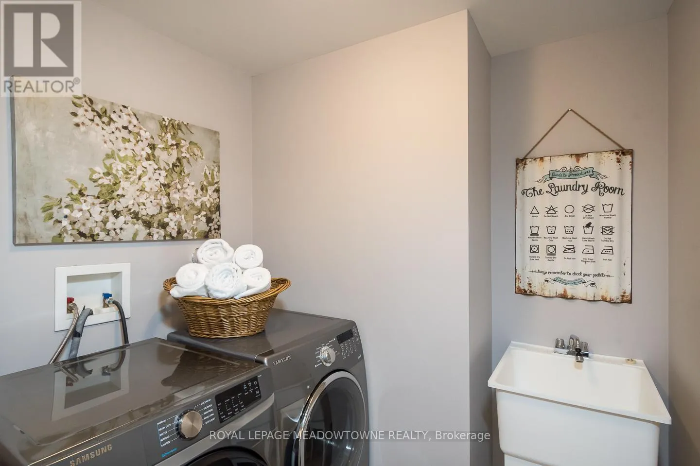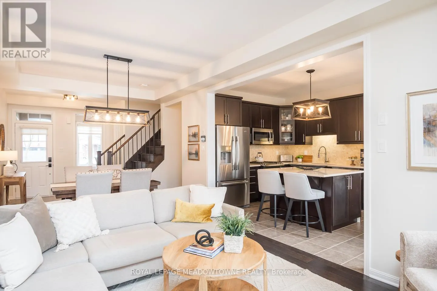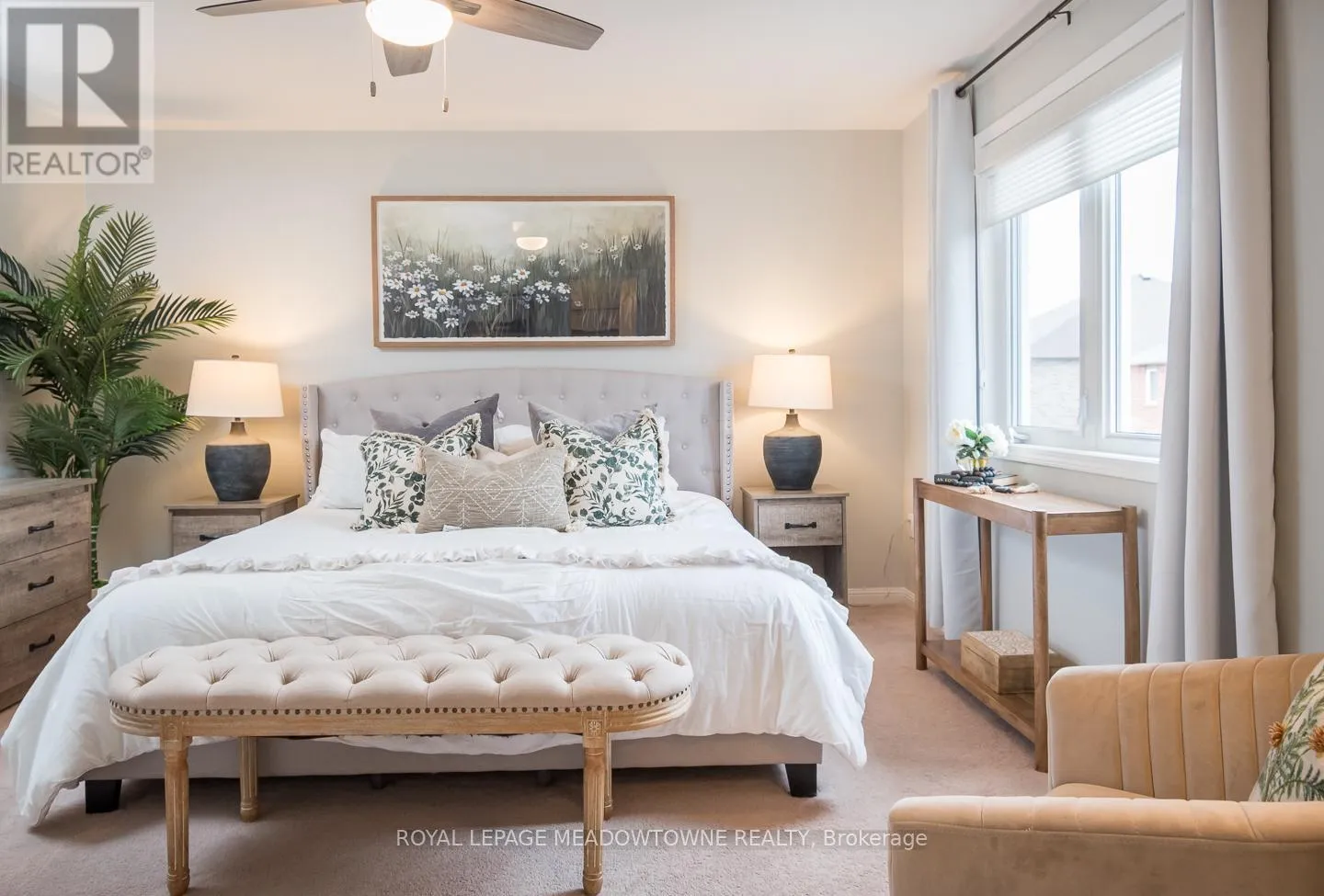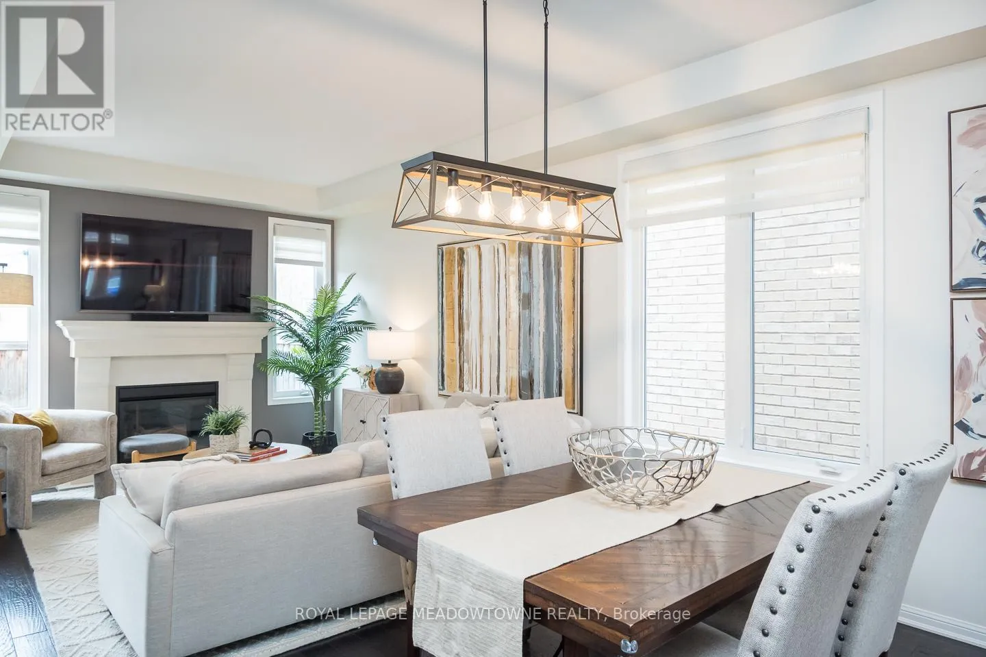 Louis St. Laurent Ave / Diefenbaker St. Welcome to this beautifully maintained 3-bedroom home in the sought-after Willmott neighbourhood, ideally located with quick access to parks, scenic trails, schools, shops, and just minutes from the popular Milton Community Park. Offering parking for three vehicles with a single-car garage and double driveway, this freshly painted home features stunning hardwood flooring throughout, a covered front porch, and convenient interior garage access. The modern kitchen is equipped with rich espresso cabinetry, quartz countertops, a stylish tile backsplash, and a breakfast bar island with a bright eat-in area and direct access to the private, zero-maintenance turf backyard and patio-perfect for entertaining. The open-concept living and dining space is anchored by a cozy gas fireplace, while a separate front room provides the ideal space for a home office or den. Upstairs, enjoy the convenience of second-floor laundry and a versatile storage nook, along with a spacious primary suite featuring a walk-in closet with custom built-ins and a 4-piece ensuite. Additional highlights include a second bedroom with a walk-in closet, two linen closets, and a full 4-piece main bath. The fully finished basement adds valuable living space with large windows, vinyl flooring, pot lights, a 3-piece bath, plus a cold cellar and ample storage. (id:27476)
