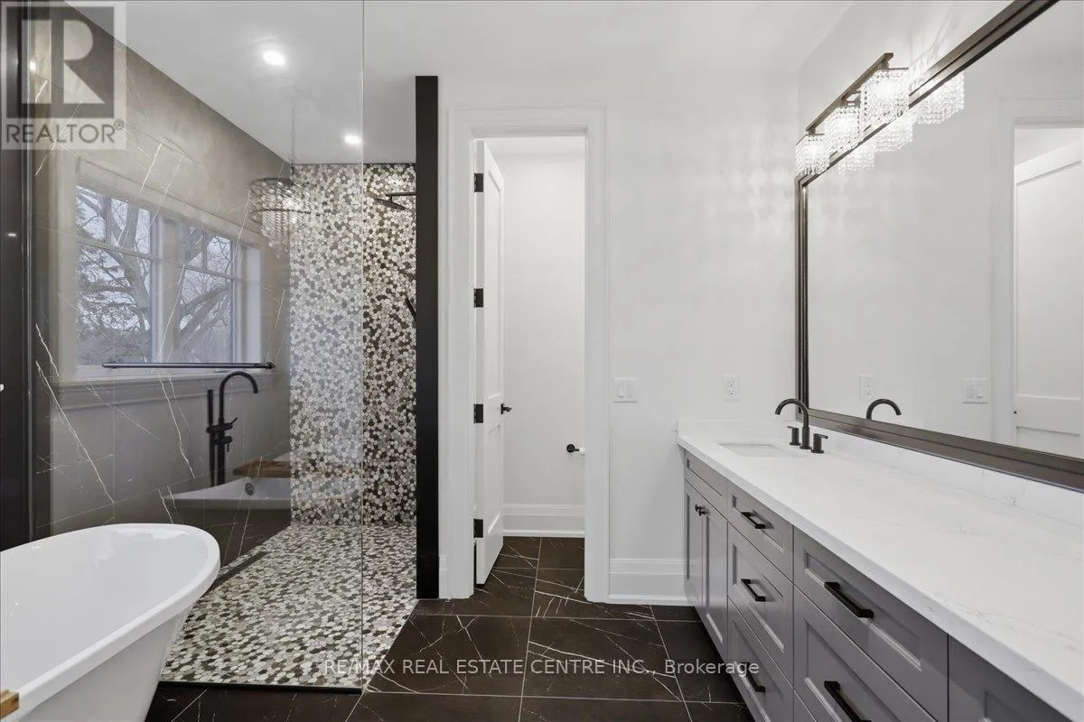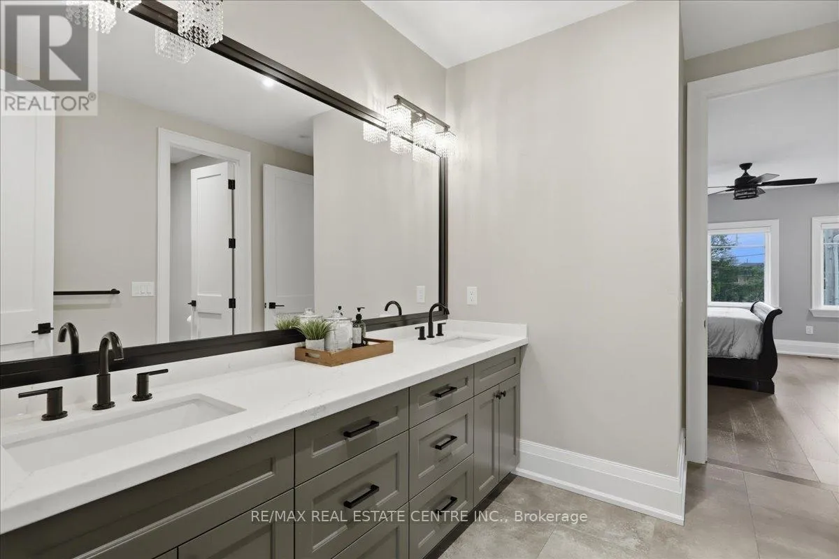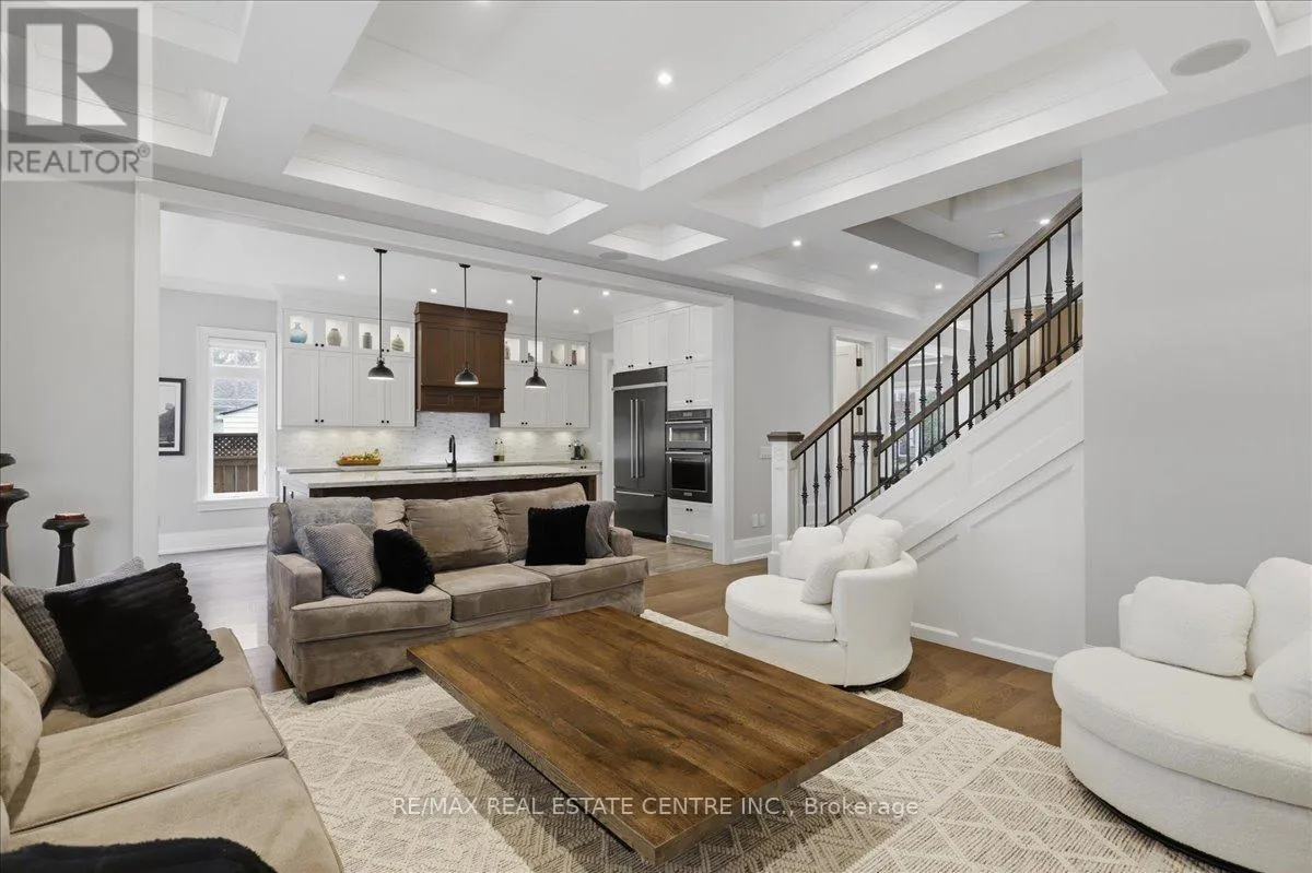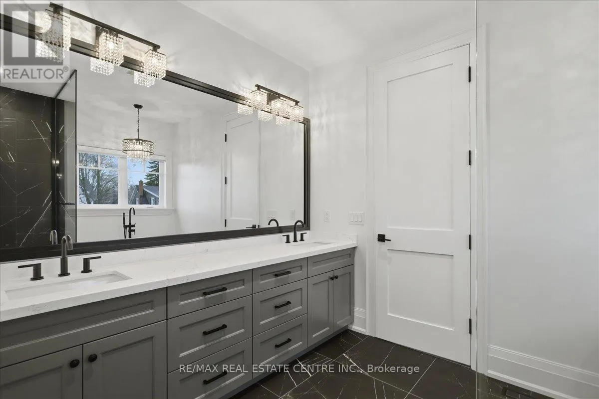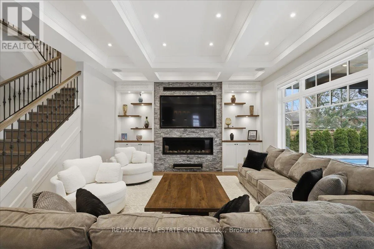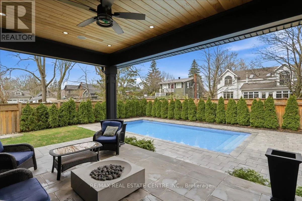 BELL ST AND MAIN ST Welcome to one of Old Milton's finest custom homes, totalling over 5000 sq ft, built in 2019 and impeccably maintained, just steps to Town Hall, the fairgrounds, and downtown. The exterior showcases historic reclaimed brick (replica), a durable metal roof with snow stops, a 22x42 cobblestone driveway for 4 cars, and maintenance-free Hardie board & batten siding. The fully landscaped backyard features a 16x32 saltwater pool with Aqualink automation (phone controlled), in-ground sprinkler system, 185 sq ft covered porch with fieldstone tile, and aseparate basement entrance ideal for multi-generational living.The double car garage is exceptionally equipped with epoxy floors, oversized 9x8 doors, a raredrive-through third door to the backyard, side-mount openers, and custom cabinetry with LED lighting, stainless counters, and a built-in beverage fridge. Inside, the main floor offers10ft ceilings, multiple coffered ceilings, and a bright open-concept layout. The chef's kitchen includes high-end appliances, induction cooktop, wall oven, and a butler's pantry. The living room features a fireplace with custom built-ins, while the staircase is highlighted byhand-carved posts. A heated mudroom floor and new cabinetry add everyday comfort.Upstairs offers 9ft ceilings, 4 bedrooms, 3 bathrooms, a laundry room, and 2 linen closets. The primary suite is large and bright with 2 walk-in closets, a carpenter gothic-style window, and a 5-piece ensuite with curbless shower, soaker tub, and heated floors. The basement features-9ft ceilings, in-floor radiant heat, gym space with rubber flooring, a wet bar with custom cabinetry (sink, mini fridge, dishwasher), and 2 large cold cellars. Elevator-ready framing,solid poplar trim (no MDF), 9" baseboards, 4.5" casings, 8ft solid doors with 4 ball-bearinghinges, 100+ LED pot lights, and full interior/exterior security system complete this exceptional home. (id:27476)