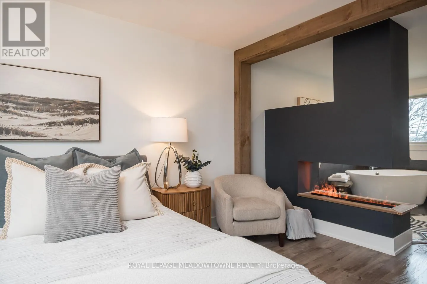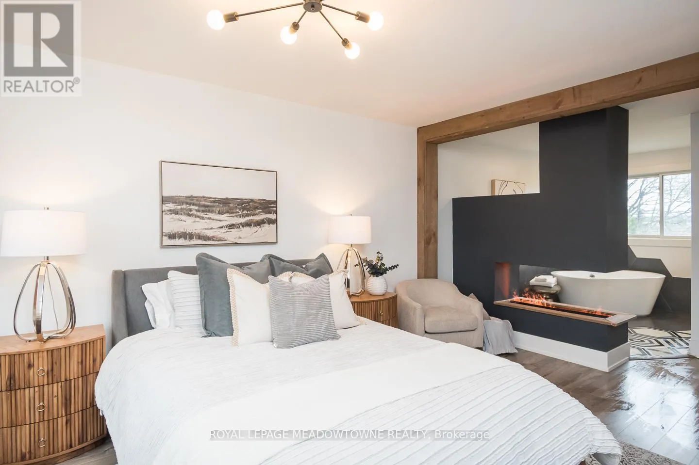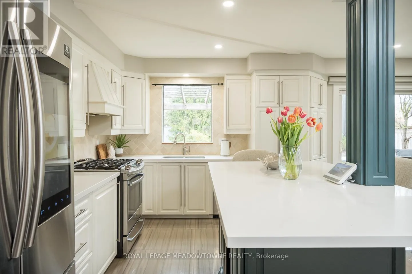 Ontario St / Childs Dr. Welcome to this beautifully renovated home in the sought-after Timberlea neighbourhood, offering an exceptional blend of style, space, and functionality. Situated on a premium 50x150 ft lot, this carpet-free property features 3 bedrooms and 2 full plus 2 half bathrooms, along with parking for up to 6 vehicles including a double garage. The bright, open-concept main floor is perfect for entertaining, highlighted by a stunning white kitchen with stone countertops, tile backsplash, stainless steel appliances, gas range, and direct access to your private backyard oasis complete with a heated inground pool, hot tub, and full fencing for ultimate privacy. The living and dining areas flow seamlessly into a cozy family room with a fireplace and hardwood flooring throughout. Upstairs, the spacious primary retreat (converted from two bedrooms) offers a walk-in closet and a spa-like ensuite with soaker tub, glass shower, double vanity, and fireplace, while two additional bedrooms share a beautifully updated main bath. The fully finished basement adds even more living space with a modern wet bar, rec room, fireplace, gym area, pantry/cold cellar, and a 2-piece bath. With a side entrance, main floor laundry, sprinkler system, and unbeatable proximity to parks, schools, amenities, highways, and the GO station, this home is the complete package for families and commuters alike. Ages: Hot tub: 2019 and pool pump: 2019, pool liner: 2021, roof: 2017, furnace: 2020, AC: 2017 (id:27476)