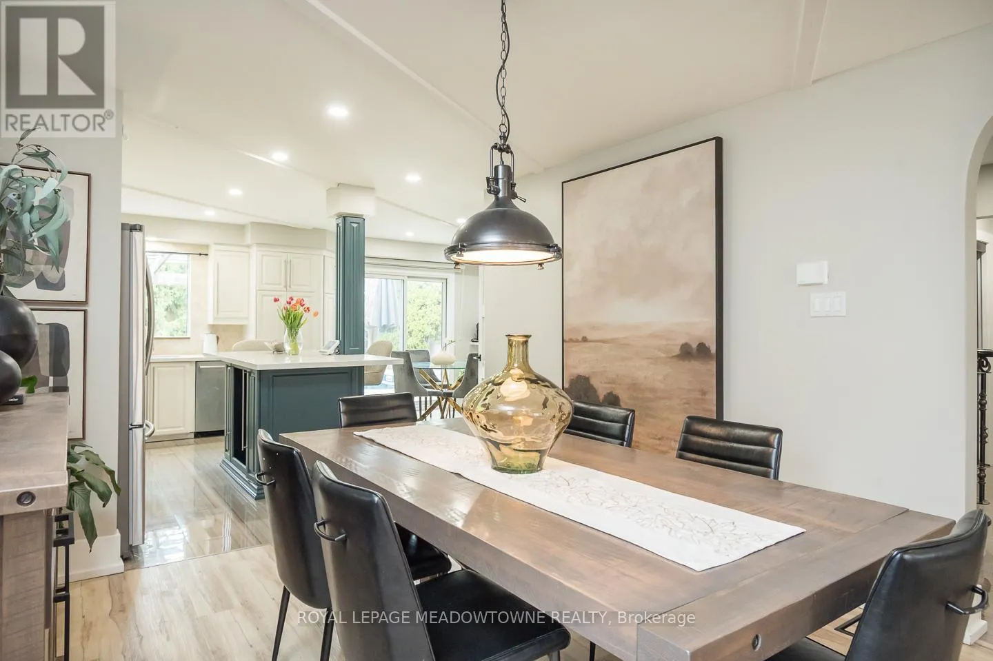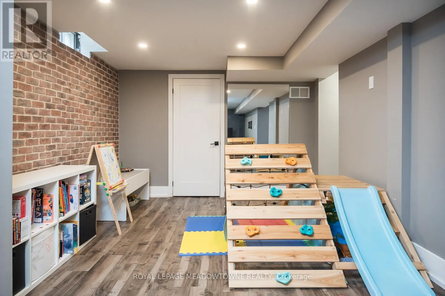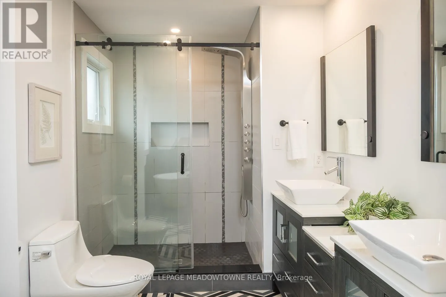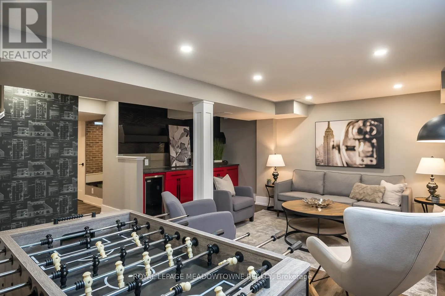Ontario St / Childs Dr. Welcome to this beautifully renovated home in the sought-after Timberlea neighbourhood, offering an exceptional blend of style, space, and functionality. Situated on a premium 50x150 ft lot, this carpet-free property features 3 bedrooms and 2 full plus 2 half bathrooms, along with parking for up to 6 vehicles including a double garage. The bright, open-concept main floor is perfect for entertaining, highlighted by a stunning white kitchen with stone countertops, tile backsplash, stainless steel appliances, gas range, and direct access to your private backyard oasis complete with a heated inground pool, hot tub, and full fencing for ultimate privacy. The living and dining areas flow seamlessly into a cozy family room with a fireplace and hardwood flooring throughout. Upstairs, the spacious primary retreat (converted from two bedrooms) offers a walk-in closet and a spa-like ensuite with soaker tub, glass shower, double vanity, and fireplace, while two additional bedrooms share a beautifully updated main bath. The fully finished basement adds even more living space with a modern wet bar, rec room, fireplace, gym area, pantry/cold cellar, and a 2-piece bath. With a side entrance, main floor laundry, sprinkler system, and unbeatable proximity to parks, schools, amenities, highways, and the GO station, this home is the complete package for families and commuters alike. Ages: Hot tub: 2019 and pool pump: 2019, pool liner: 2021, roof: 2017, furnace: 2020, AC: 2017 (id:27476)