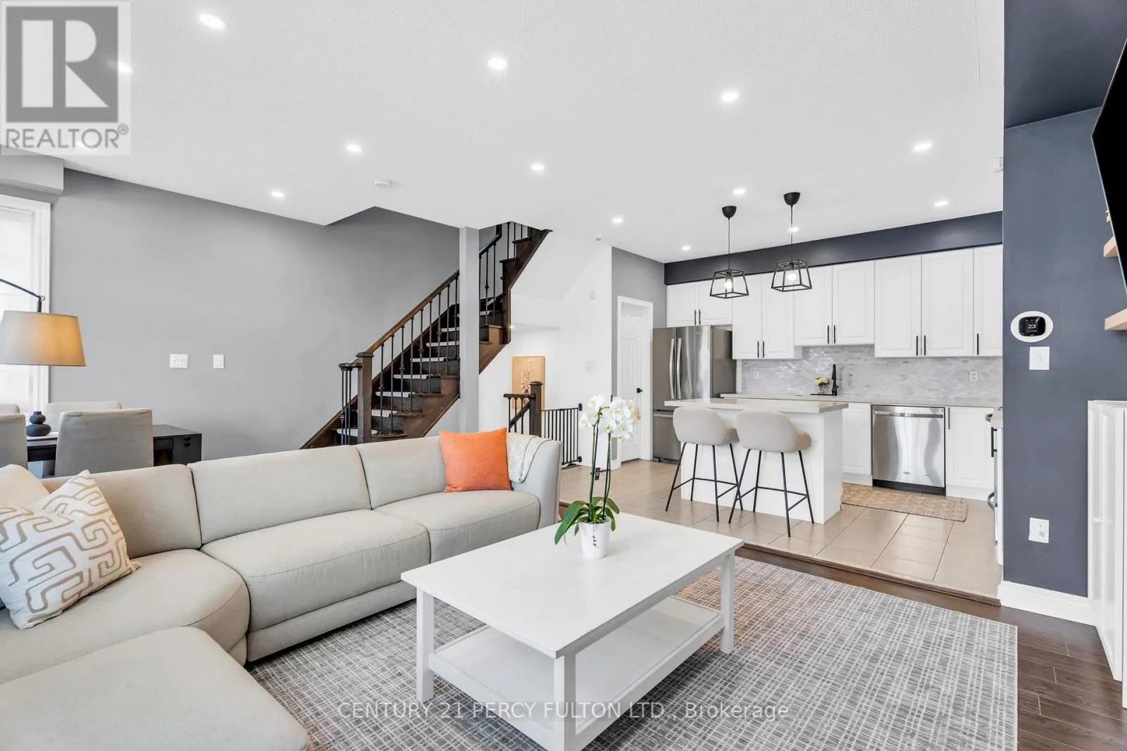 Savoline and Louis St. Laurent Welcome to 1110 Durno - a rare freehold corner unit offering over 1,300 sq. ft. of thoughtfully designed living space, complemented by a private 50+ sq. ft. balcony - perfect for relaxing or entertaining.Step inside to a bright, carpet-free main living area with 9 Ft Ceilings, with newly upgraded vinyl flooring on the upper level (completed last year). The modern kitchen has been tastefully updated with quartz countertops and a stylish backsplash, creating a clean and contemporary feel.This home features a fully renovated guest bathroom, along with upgraded primary and powder bathrooms, delivering both comfort and a cohesive, modern finish throughout.Enjoy elevated living with a custom built-in media wall and electric fireplace - a perfect focal point for cozy nights in.The exterior has also seen impressive upgrades, including newly completed aggregate work (2024), sleek glass railings, and a garage door with automatic opener for added convenience and curb appeal.Ideally located just minutes from major amenities - including grocery stores, pharmacies, and restaurants - and bordering the future Milton Education Village on Tremaine, which is set to include a university campus and over 100,000 sq. ft. of planned retail space. A prime location poised for strong future growth and value. (id:27476)