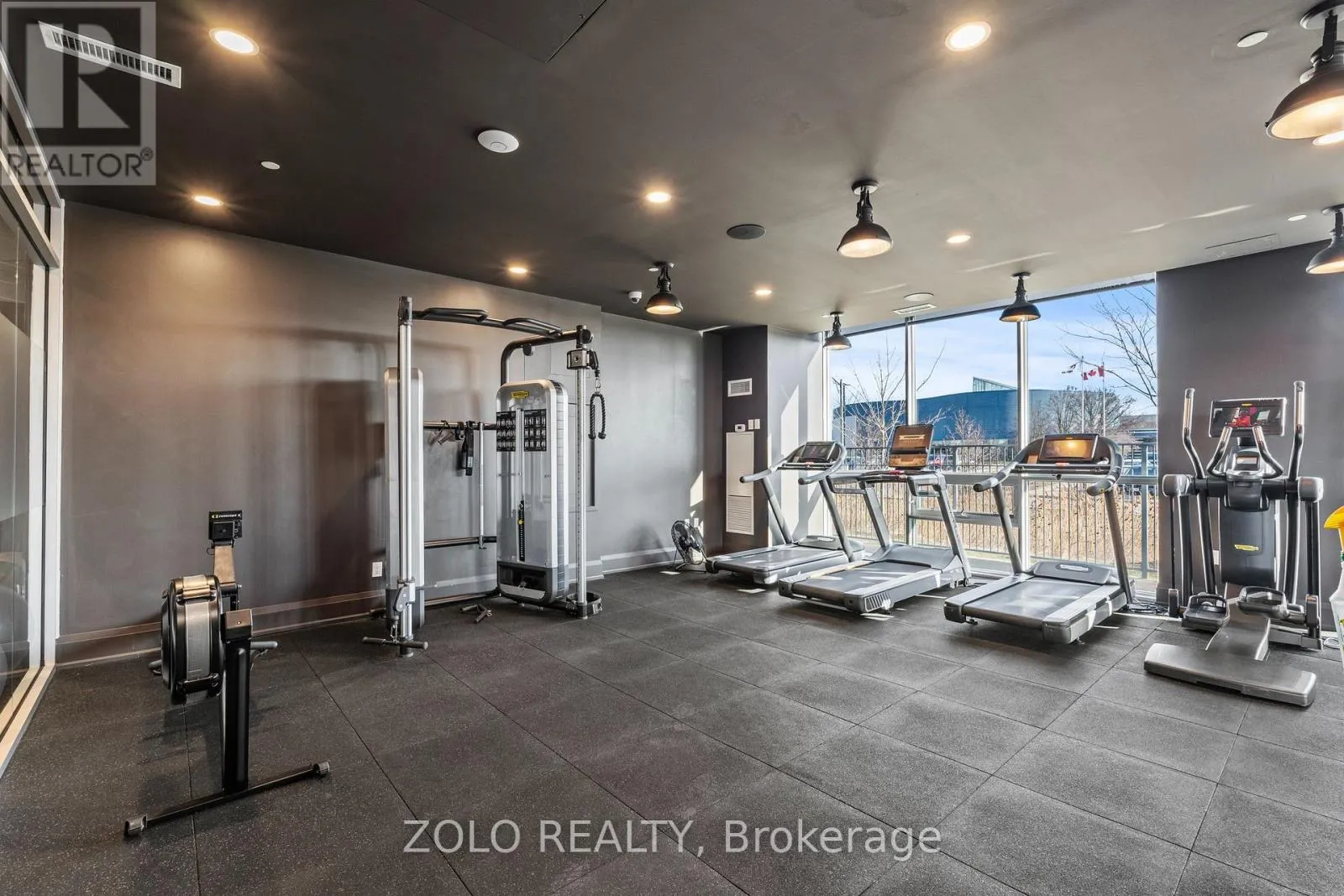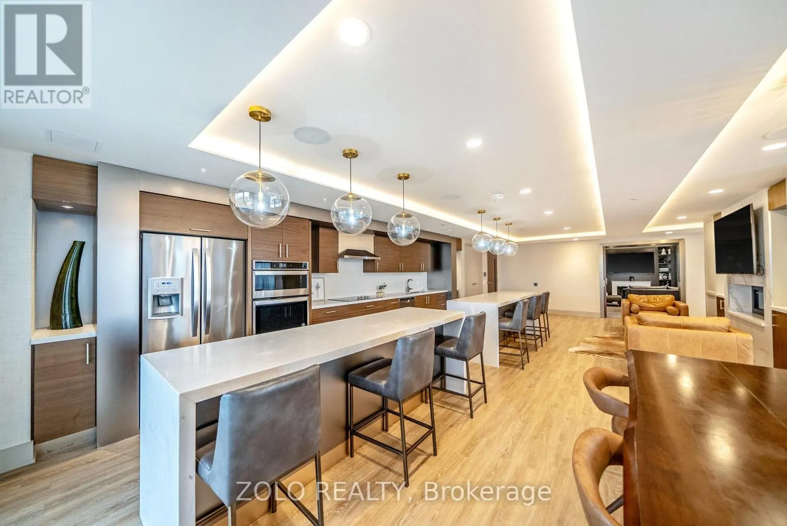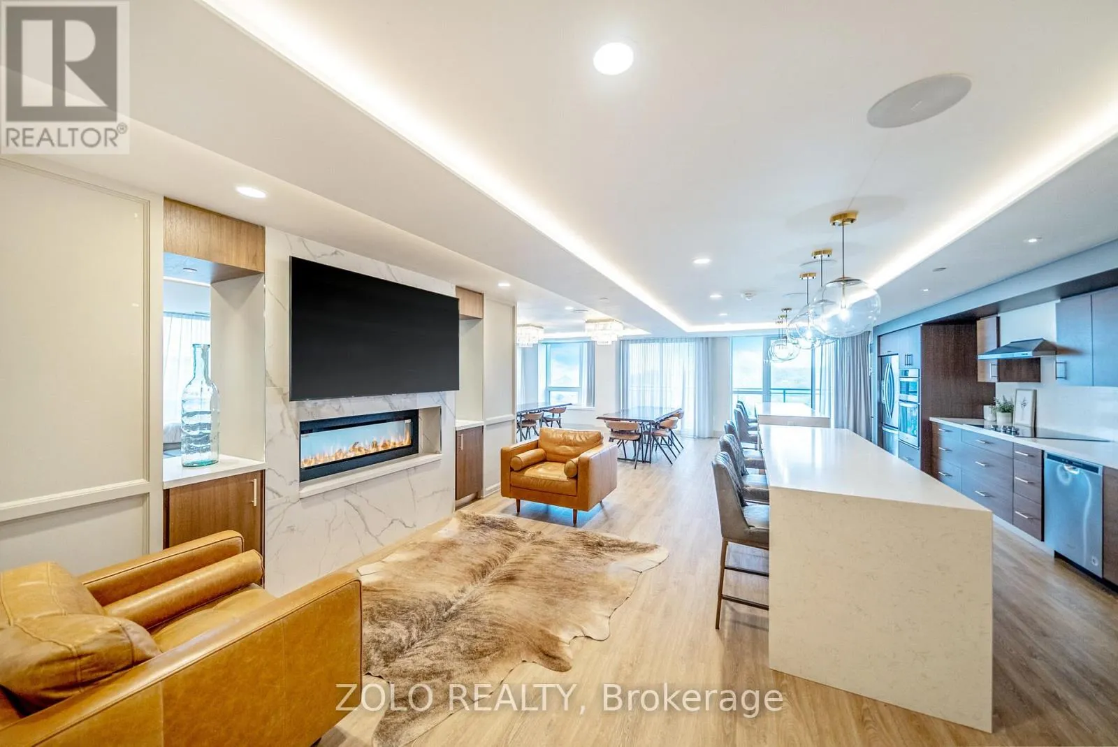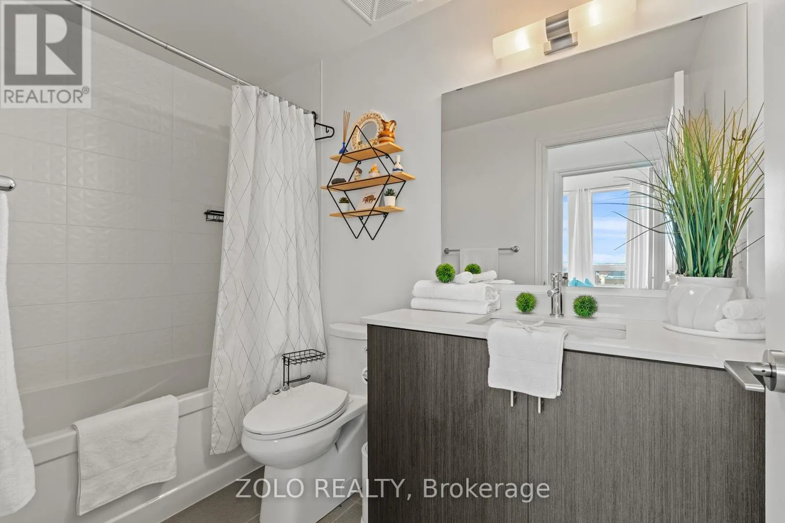 Main St and Thompson Rd Welcome to Art on Main - one of Milton's most sought-after boutique condo buildings by Fernbrook Homes. This beautifully appointed 2-bedroom + den suite offers 920+ sq ft of thoughtfully designed living space with soaring 10-ft ceilings and a bright open-concept layout that immediately impresses. Perched on the 6th floor with south-east exposure, enjoy views overlooking Lions Sports Park and the Leisure Centre from your private balcony. The den features sliding doors and generous proportions, ideal as a third bedroom, home office, or guest space. A rare bonus: storage locker conveniently located on the same floor. Also includes underground parking and in-suite laundry. Building amenities include outdoor pool, rooftop deck, gym, party room, guest suites and concierge. Steps to Milton Commons, Leisure Centre, Library, Lions Sports Park and Bishop Reding. GO Station under 1km away. Some balcony images virtually staged. (id:27476)