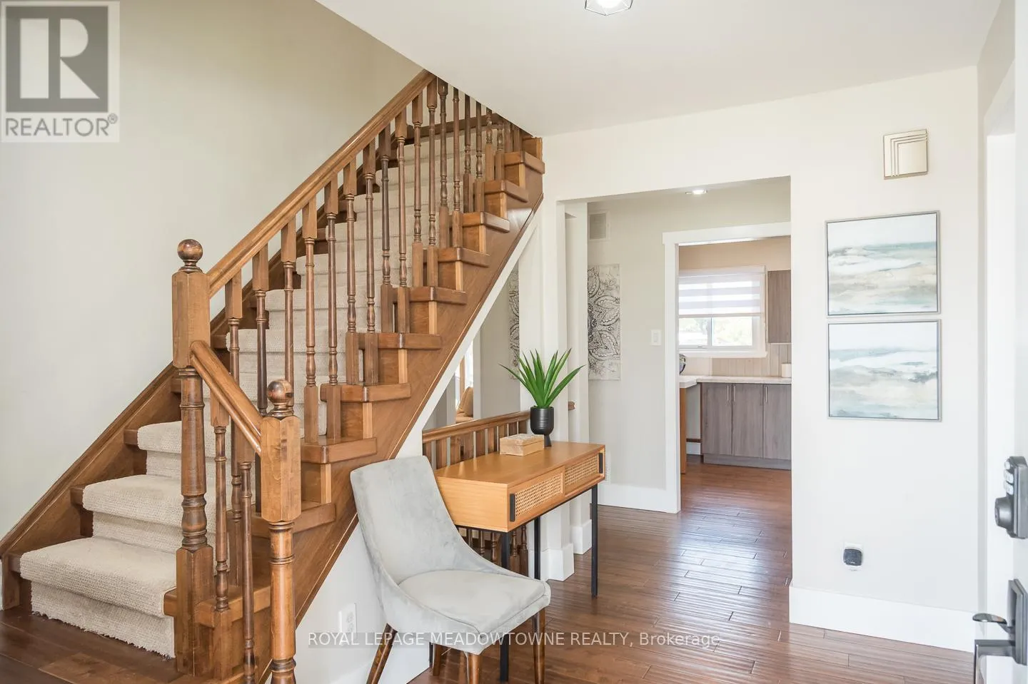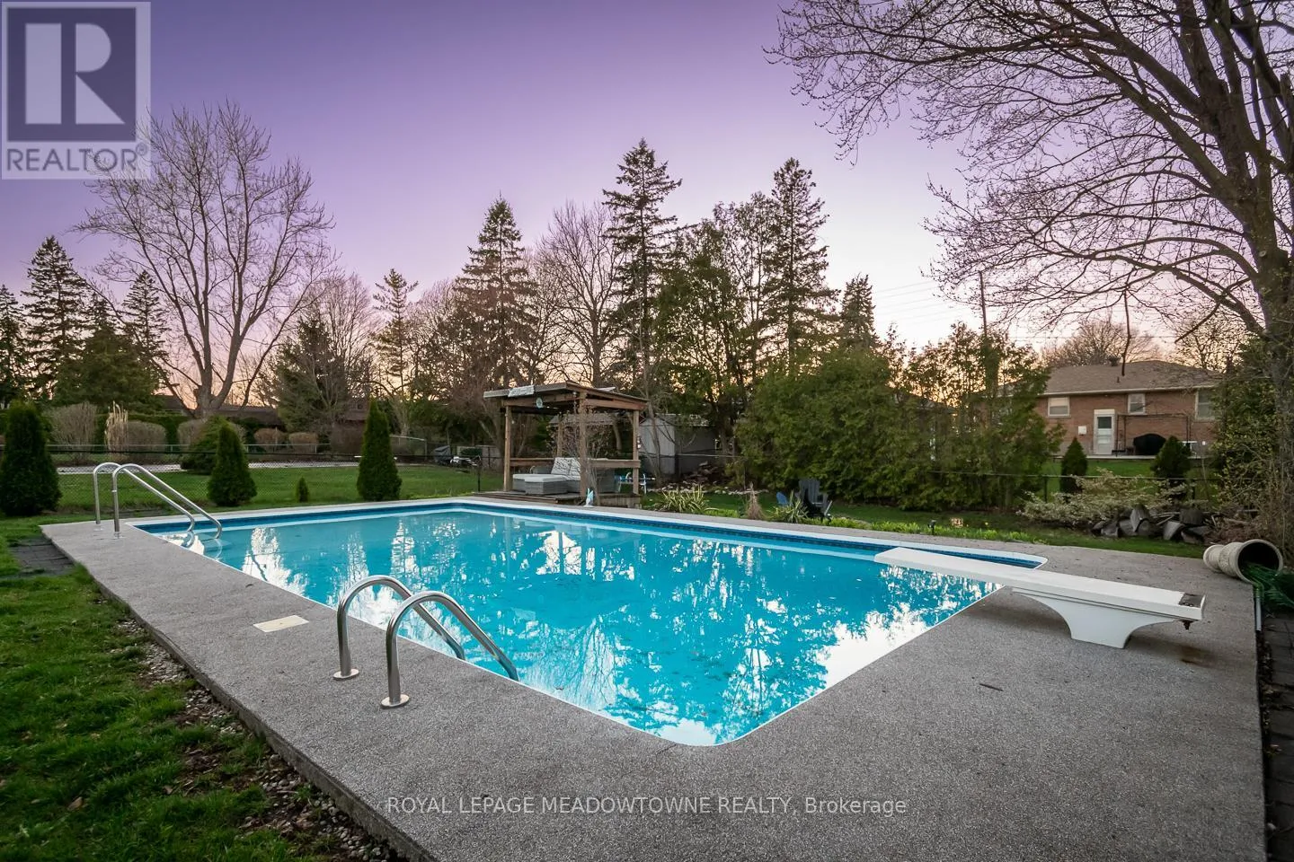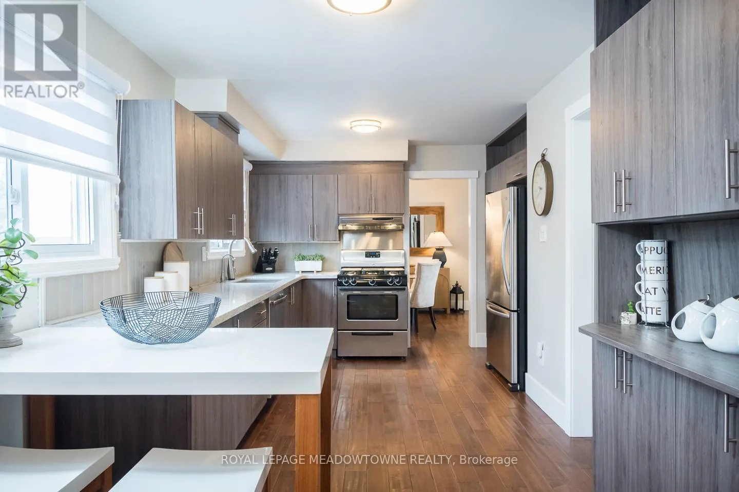 Laurier Ave. / Commercial St. Welcome to 289 Parkway Dr W, a beautifully maintained family home in the sought-after Bronte Meadows neighbourhood, perfectly positioned on a premium and very rare 62 x 162 ft lot facing Brian Best Park with unobstructed views, short walk to downtown Milton, farmers market, and Fairgrounds. Offering 3+2 bedrooms and 3.5 bathrooms, this spacious home features hardwood flooring throughout, a functional layout, and a separate side entrance-ideal for extended family living. The bright and open kitchen is equipped with stainless steel appliances, a gas range, and granite countertops, seamlessly flowing into the dining area and cozy family room with walkout to a large deck. Upstairs, you'll find three generously sized bedrooms, including a stunning primary retreat with a recently renovated ensuite and walk-in closet. The fully finished, carpet-free basement adds incredible versatility with two additional bedrooms, a full bath, and ample storage. Step outside to your private backyard oasis featuring a gas-heated in-ground pool with Rubaroc surround, fire pit, irrigation system, and two sheds-perfect for entertaining. With parking for six vehicles, interior garage access, main floor laundry, and smart exterior pot lights in the front and back, smooth ceilings throughout and custom shutters, this home combines comfort, style, and convenience in an unbeatable location. (id:27476)