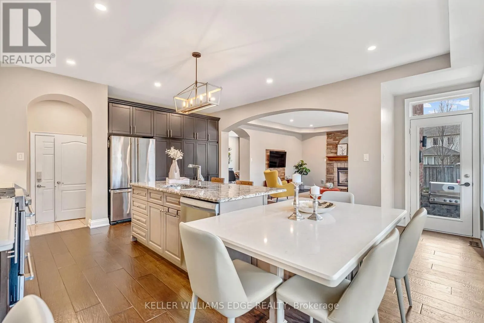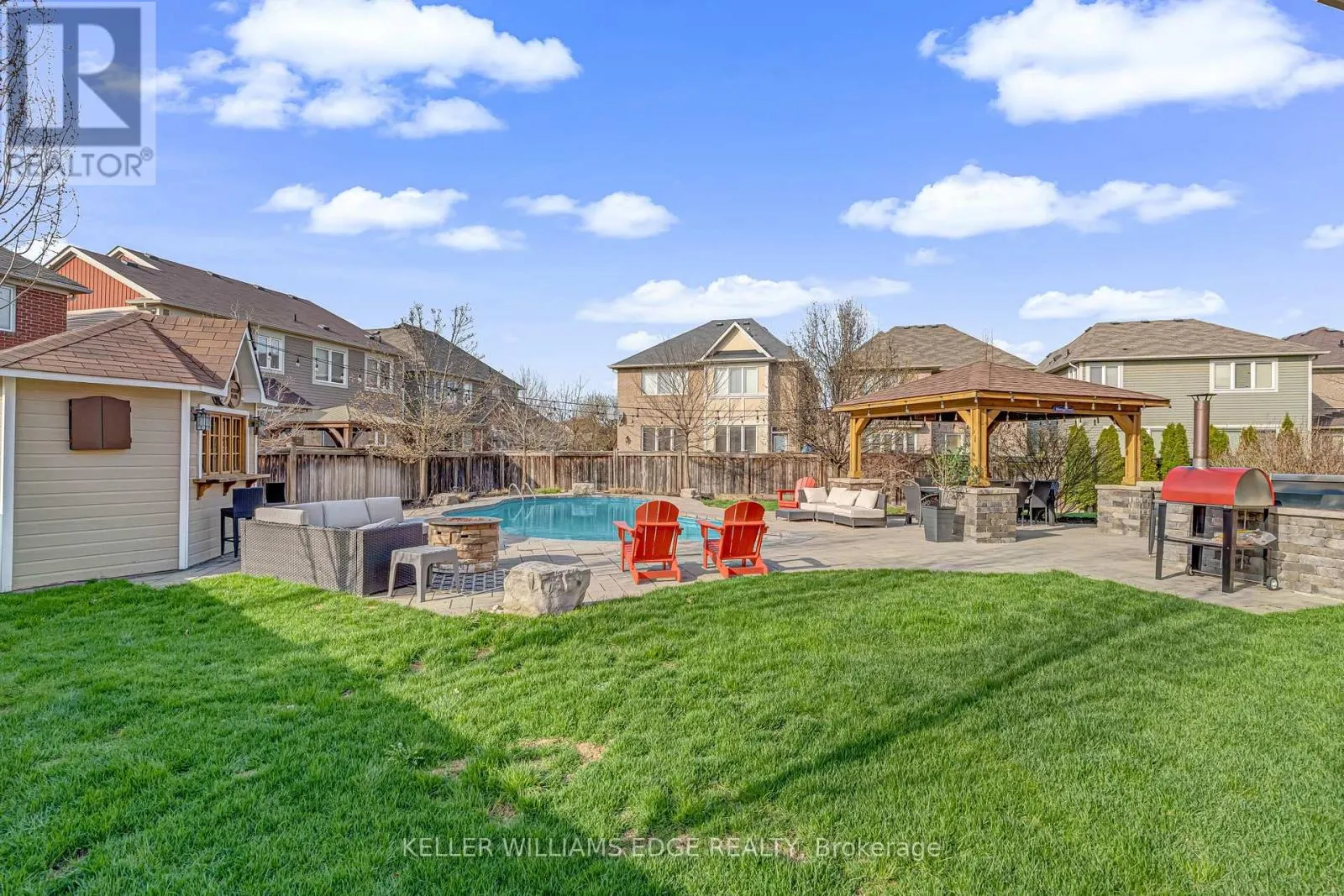 Cross Streets: Magurn Gate. ** Directions: North on Tremaine Road, take a right on Louis St-Laurent Ave, left on Savoline Blvd, right on Schreyer Cres, left on Gastle Way and right on Goutouski Cres. Welcome to this exceptional family home sitting on a premium pie-shaped lot in a quiet, family-friendly crescent, offering the perfect blend of luxury, space, and outdoor living. The backyard is truly an entertainer's dream, featuring a saltwater pool, charming gazebo, shed with bar, a cooking centre with built-in BBQ & bar fridge, and a sprinkler system, all while still providing ample green space for kids and pets to enjoy. With parking for 6 vehicles, including a double car garage and 4-car driveway, convenience is never compromised. Inside, the thoughtfully designed main floor boasts a private den/office ideal for working from home, a separate dining room perfect for hosting elegant dinner parties, and a spacious open-concept kitchen with abundant cabinetry and storage for everyday living. Upstairs, you'll find the ultimate in functionality with a convenient laundry room, 4 generously sized bedrooms, including 2 connected by a 5-piece Jack & Jill bathroom, one bedroom with its own 4-piece ensuite, and a luxurious primary retreat complete with a 5-piece ensuite and two walk-in closets. The finished basement adds even more versatility with an additional bedroom and a full 4-piece bathroom - perfect for guests or extended family. A unique and impressive feature is the set of 4 sport lockers/closets with ventilation, ideal for active families. Additional highlights include a 200 AMP electrical panel, offering enhanced capacity for modern living. Ideally located close to top-rated schools, parks, and scenic trails, this home offers exceptional convenience for families. Enjoy easy access to everyday essentials with nearby grocery stores, dining, and shopping, along with quick connections to major highways and the Milton GO Station - making commuting a breeze. Surrounded by a vibrant, family-friendly community with rec. centres incl. Mattamy National Cycling Centre, and Milton District Hospital just mins. away, this location truly delivers on lifestyle and convenience! (id:27476)