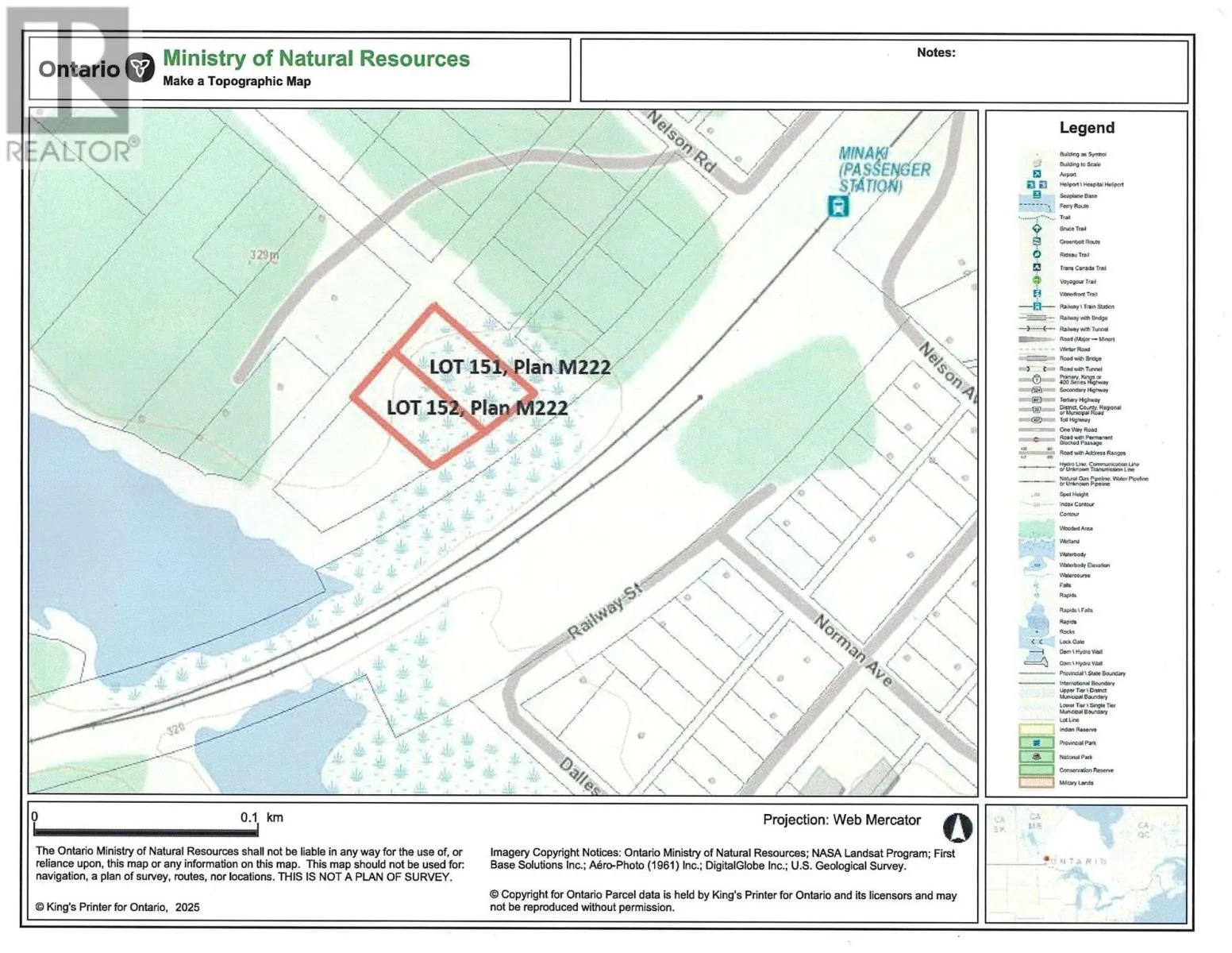 From the Kenora by-pass, travel Hwy 596 north approx. 45-kms to Minaki. Continue driving until you see the CNR station on your left. Cross the tracks and turn left onto Front Street. Follow to Nelson Avenue, then left onto Road 14. The road is not currently developed right to this property. Vacant treed lot on titled land located in the Minaki townsite. Suitable for camper or RV. .84 of an acre with 134' south facing frontage. There are marinas for boat docking, a convenience store, Community Centre and a seasonal restaurant. The road is not currently developed right to this site and therefore further development will be required for access. Hydro is available nearby. There is no time line for development. This area is unorganized and taxes are currently $117.00 annually. 13% HST and Ontario Land Transfer tax ($100.00 based on $20k)) applies to the purchase price. (id:27476)