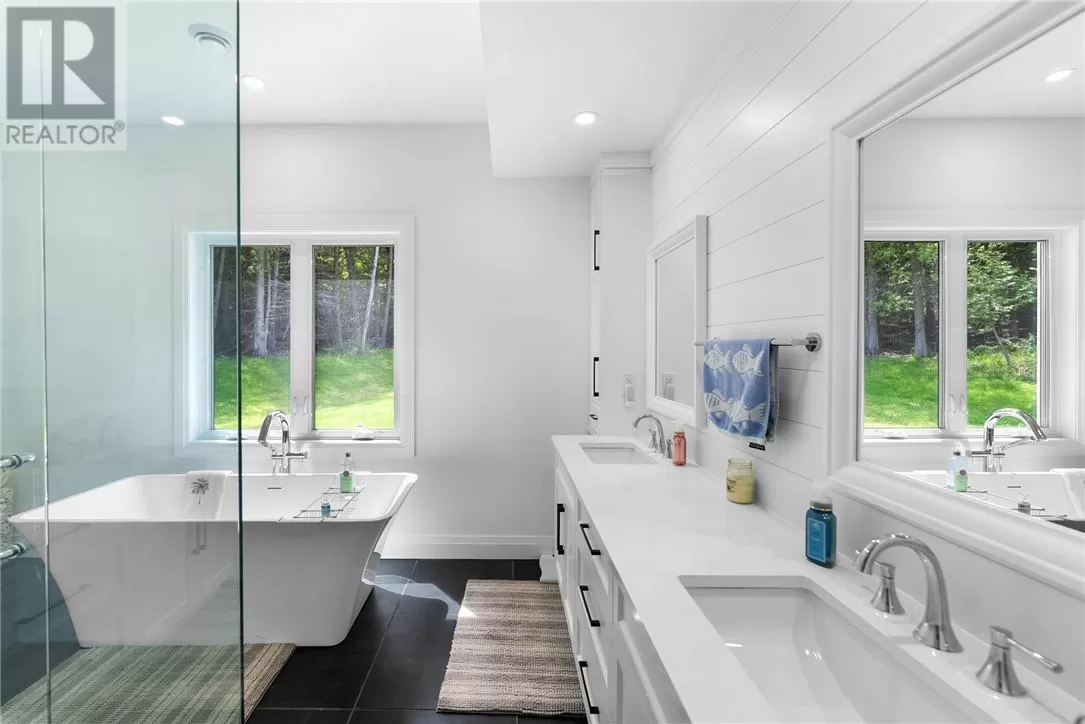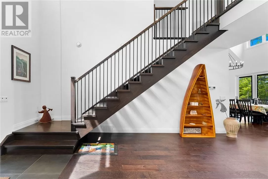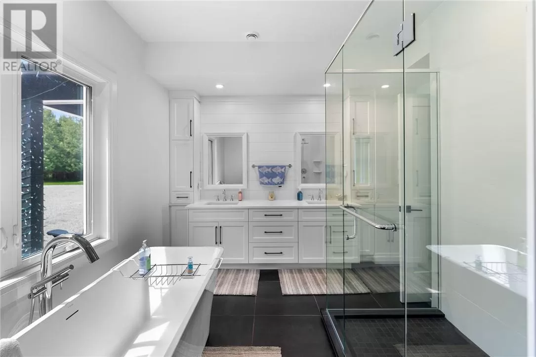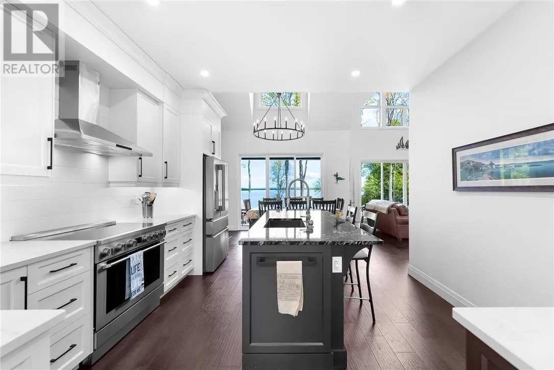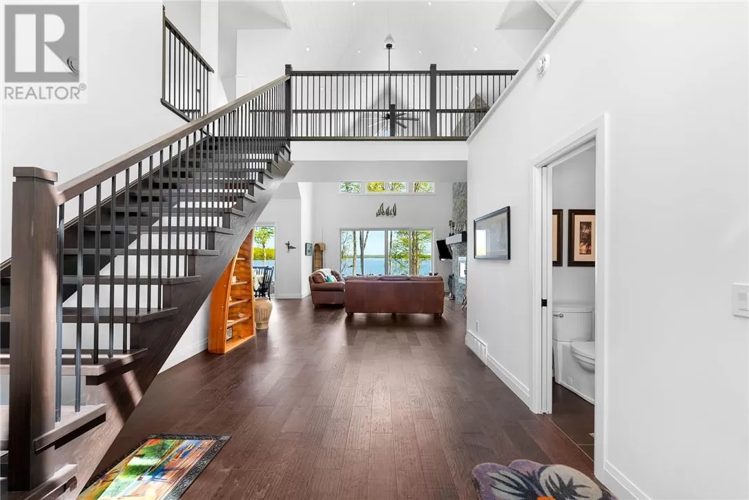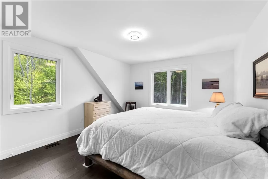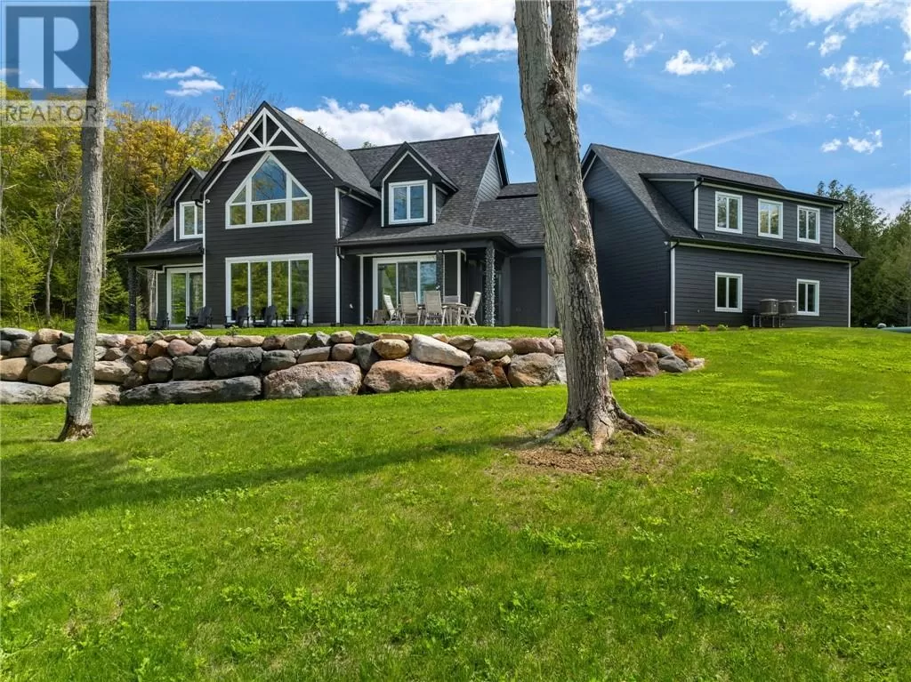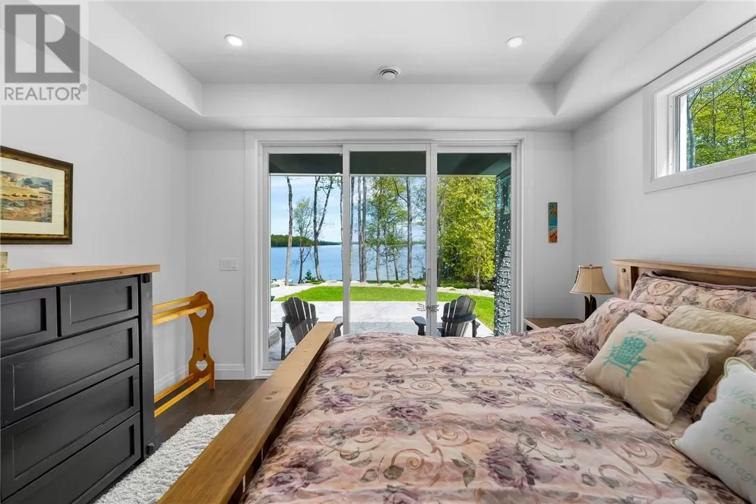 Stunning Custom-Built Lakefront Retreat on Lake Manitou - Welcome to 76 Johnston Road, a breathtaking custom-built lakefront home completed in 2022. Nestled on 5 private acres, this luxurious retreat offers a perfect blend of modern elegance and natural beauty, featuring a landscaped yard, stone walkways, and a picturesque shoreline fire pit area. Enjoy sunrise and sunset views over Lake Manitou from your 40-foot dock with a spacious sitting area, making this the ultimate waterfront escape. This architecturally designed home showcases cathedral ceilings with shiplap finishes, engineered hardwood floors, and expansive windows that flood the space with natural light. The open-concept main floor boasts a living room with a stunning stone fireplace, a bright kitchen with a large island, granite countertops, and a sunroom off the dining area. A convenient laundry room leads to the heated triple-car garage. The primary suite is a true sanctuary, featuring a spectacular water view, a spacious walk-in closet, and a spa-like ensuite with double sinks, a large walk-in shower, a soaker tub, and tile flooring. A grand foyer with a 2-piece bath completes the main level. An open staircase leads to the second floor, where a walkway overlooks the main living area. Here, you'll find two generous bedrooms, a 4-piece bath, and a versatile third bedroom, perfect for use as a family or games room. Designed for year-round living, this private retreat is equipped with a security system, modern conveniences, and exceptional craftsmanship. Whether you seek a peaceful getaway or a luxurious home, this property is a rare find on pristine Lake Manitou. A must-see property â book your private viewing today! (id:27476)