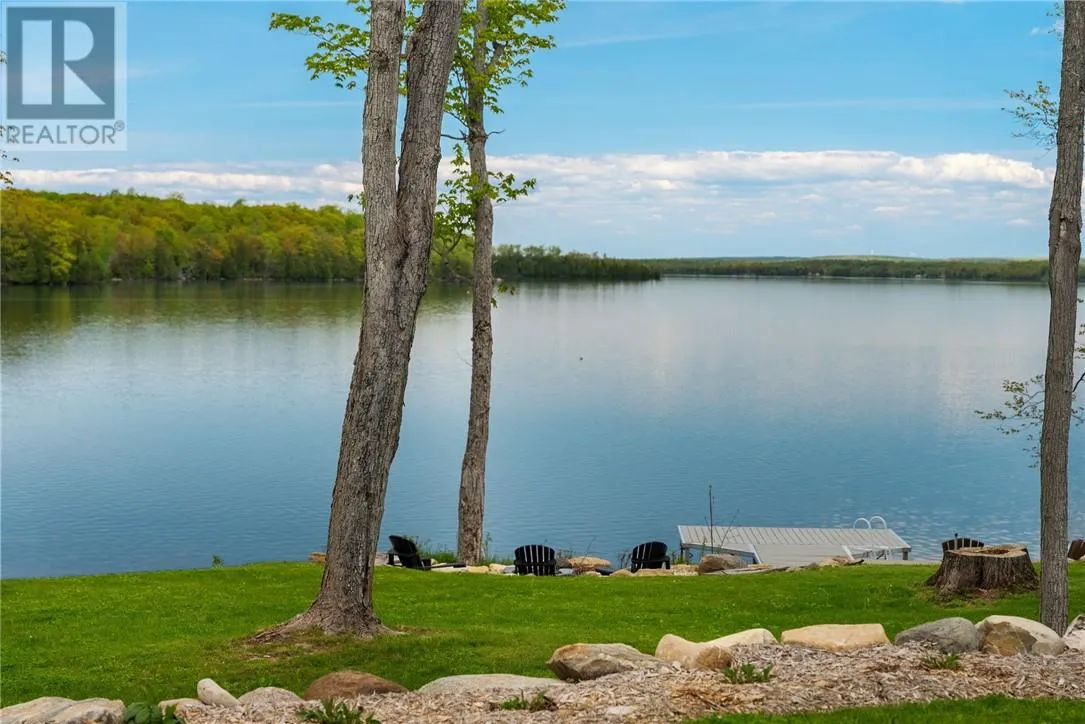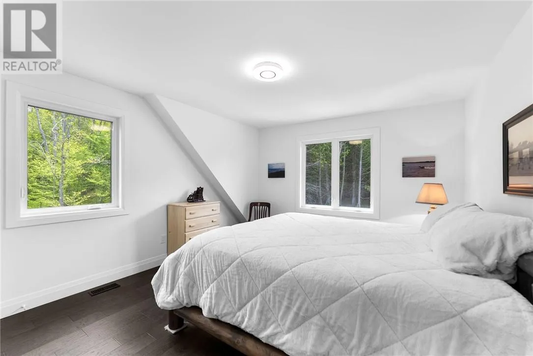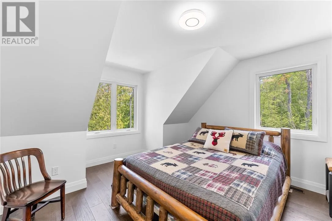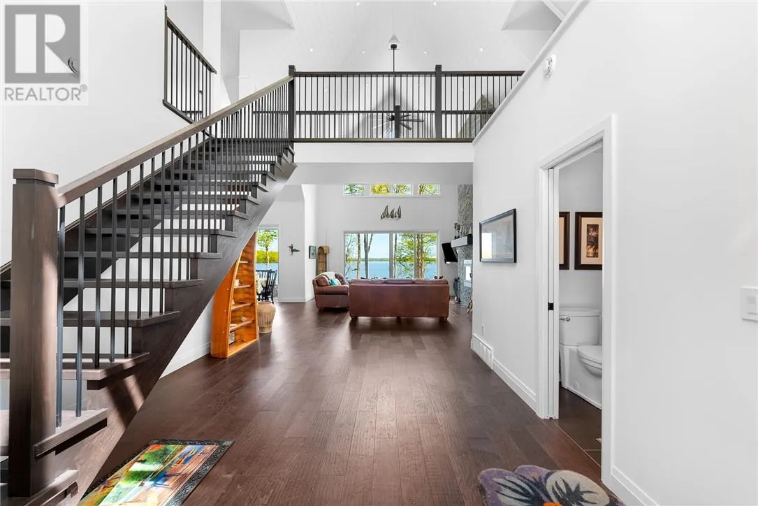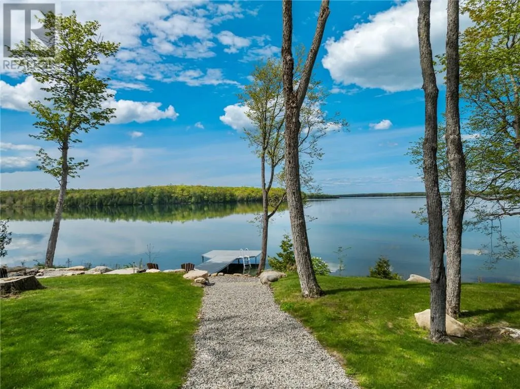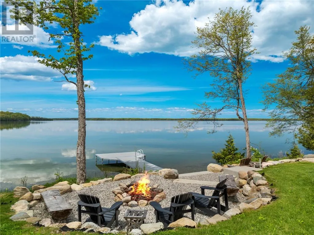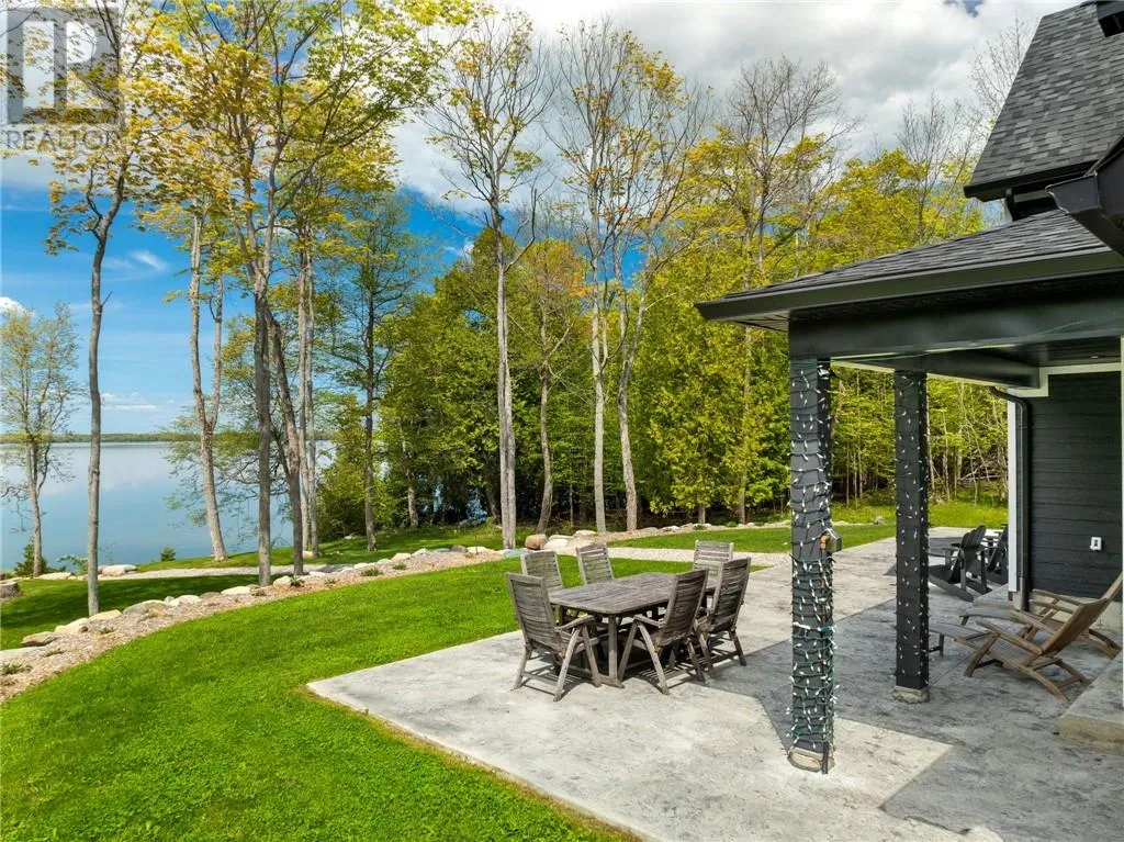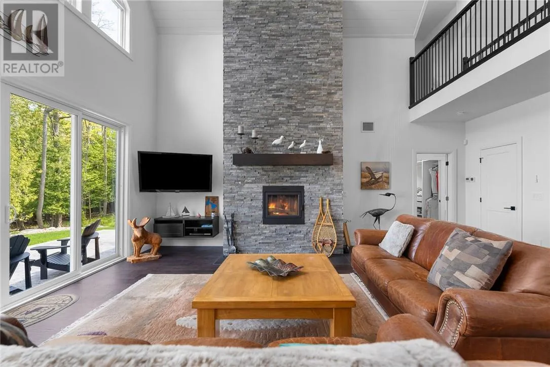 Welcome to 76B Johnston Road, a striking custom-built lakefront residence completed in 2022, where refined craftsmanship meets unparalleled privacy. Set on 5 secluded acres with manicured landscaping, stone walkways, and a shoreline fire pit, this property offers an extraordinary waterfront lifestyle in a serene setting. Soak in breathtaking views over Lake Manitou from your 40-foot dock with expansive sitting areaâperfect to unwind, entertain, or take in the beauty of one of Manitoulin Islandâs most coveted lakes. Inside, this home showcases meticulous attention to detail, featuring cathedral ceilings with shiplap accents, engineered hardwood floors, and floor-to-ceiling windows that frame the lake and flood the home with natural light. The open-concept main level is both elegant and inviting, anchored by a stunning stone fireplace in the living room. The kitchen is a chefâs dream with granite countertops, a large island, and seamless flow into the dining area and sunroomâideal for hosting or quiet mornings overlooking the water. The primary suite is a private sanctuary, offering spectacular lake views, a spacious walk-in closet, and a spa-inspired ensuite complete with double vanities, a luxurious walk-in shower, a deep soaker tub, and beautifully finished tile flooring. A grand foyer with a powder room, main-floor laundry, and access to the heated triple-car garage complete the main level. An open staircase leads to the second floor, where a dramatic walkway overlooks the living space below. This level offers two generous bedrooms, a full bath, and a versatile third bedroom currently suited as a family or games roomâperfect for guests or extended family. Designed for year-round living, this exceptional retreat features modern conveniences, a security system, and superior construction throughout. Whether youâre seeking a refined waterfront escape or a permanent luxury residence, this is a rare offering on Lake Manitou. Schedule your exclusive viewing today. (id:27476)
