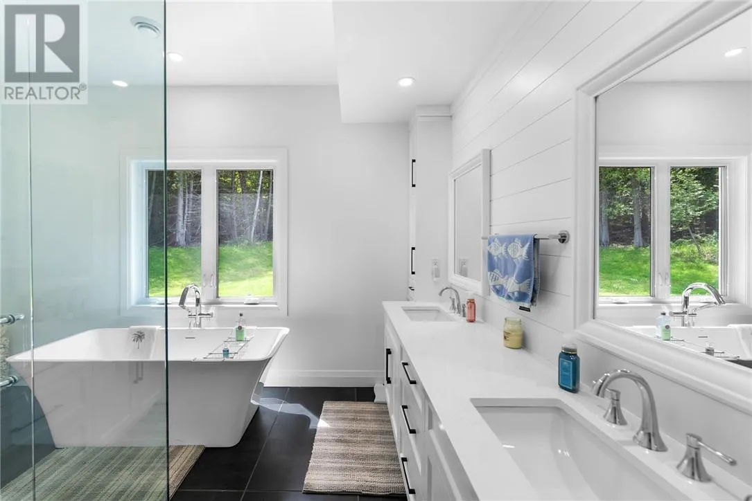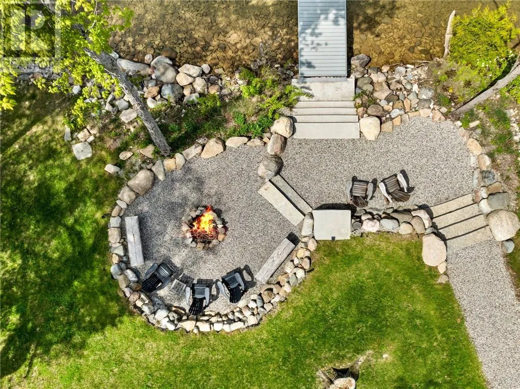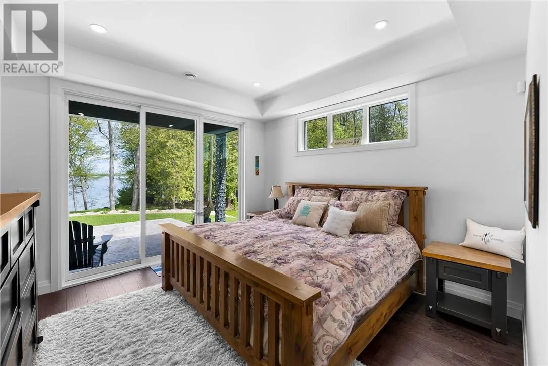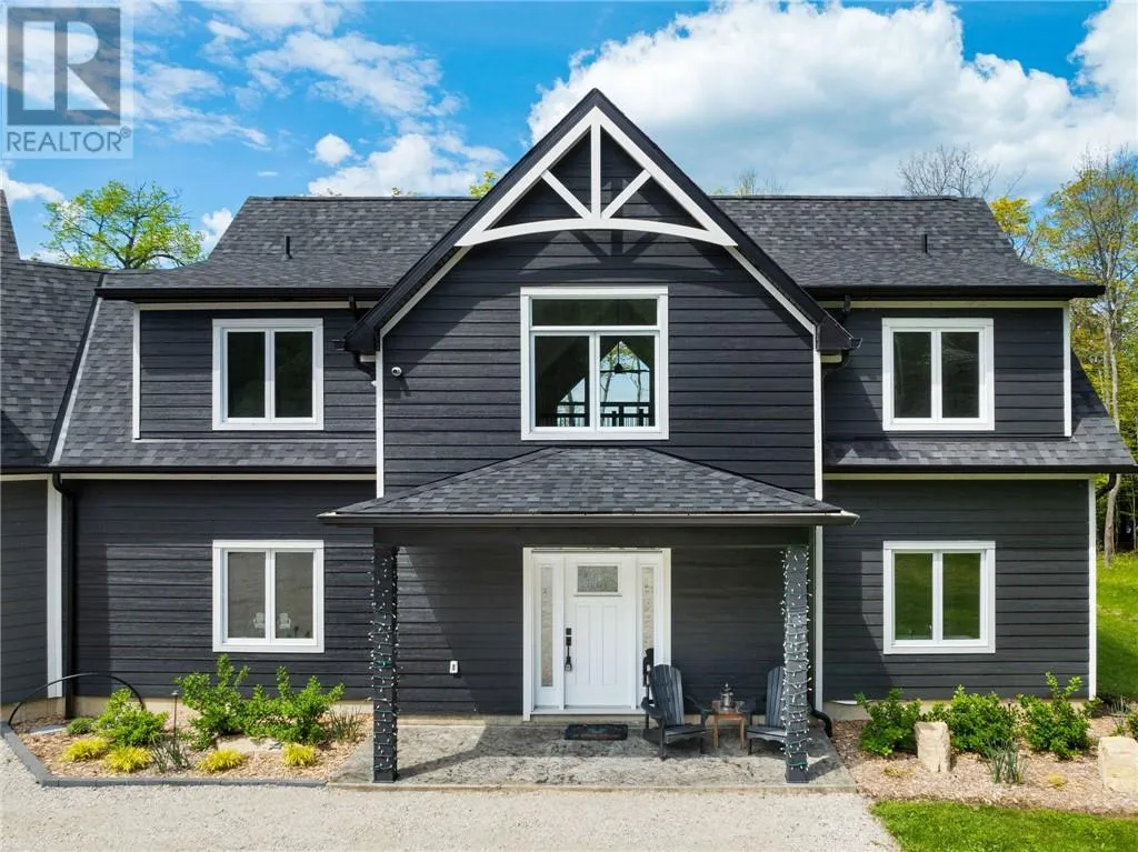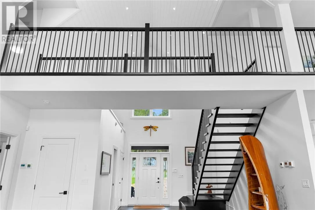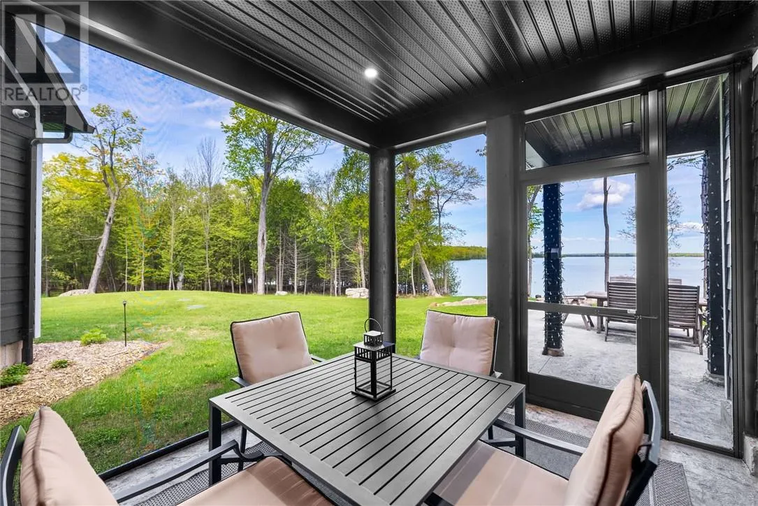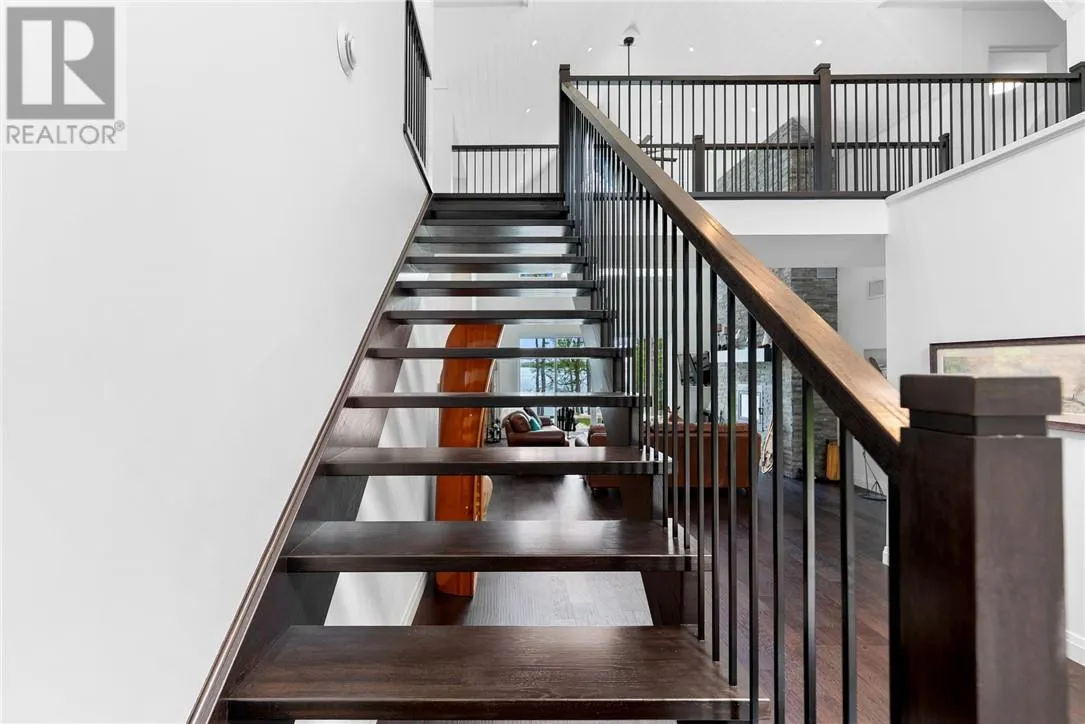 Welcome to 76B Johnston Road, a striking custom-built lakefront residence completed in 2022, where refined craftsmanship meets unparalleled privacy. Set on 5 secluded acres with manicured landscaping, stone walkways, and a shoreline fire pit, this property offers an extraordinary waterfront lifestyle in a serene setting. Soak in breathtaking views over Lake Manitou from your 40-foot dock with expansive sitting areaâperfect to unwind, entertain, or take in the beauty of one of Manitoulin Islandâs most coveted lakes. Inside, this home showcases meticulous attention to detail, featuring cathedral ceilings with shiplap accents, engineered hardwood floors, and floor-to-ceiling windows that frame the lake and flood the home with natural light. The open-concept main level is both elegant and inviting, anchored by a stunning stone fireplace in the living room. The kitchen is a chefâs dream with granite countertops, a large island, and seamless flow into the dining area and sunroomâideal for hosting or quiet mornings overlooking the water. The primary suite is a private sanctuary, offering spectacular lake views, a spacious walk-in closet, and a spa-inspired ensuite complete with double vanities, a luxurious walk-in shower, a deep soaker tub, and beautifully finished tile flooring. A grand foyer with a powder room, main-floor laundry, and access to the heated triple-car garage complete the main level. An open staircase leads to the second floor, where a dramatic walkway overlooks the living space below. This level offers two generous bedrooms, a full bath, and a versatile third bedroom currently suited as a family or games roomâperfect for guests or extended family. Designed for year-round living, this exceptional retreat features modern conveniences, a security system, and superior construction throughout. Whether youâre seeking a refined waterfront escape or a permanent luxury residence, this is a rare offering on Lake Manitou. Schedule your exclusive viewing today. (id:27476)