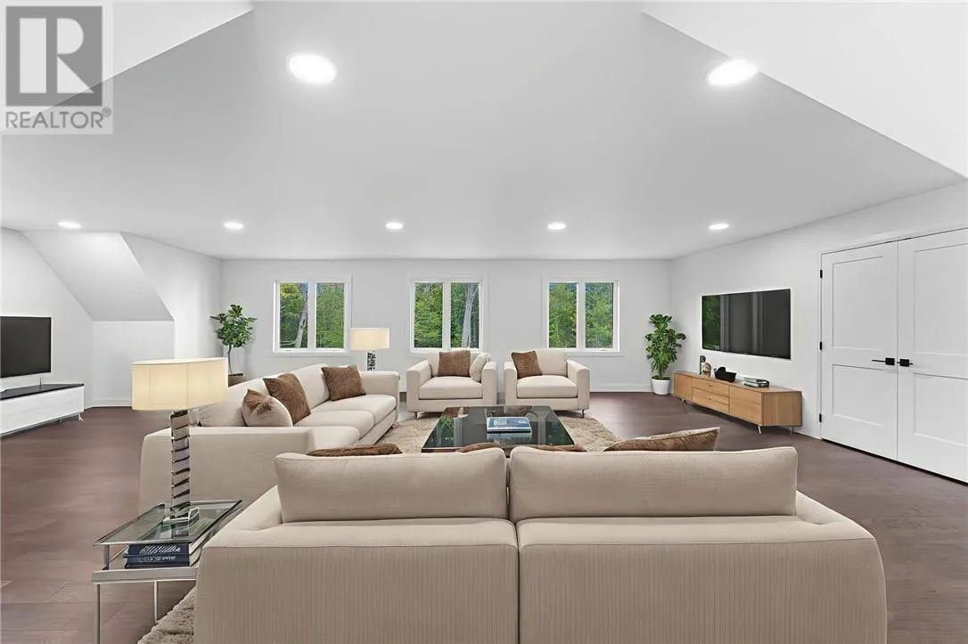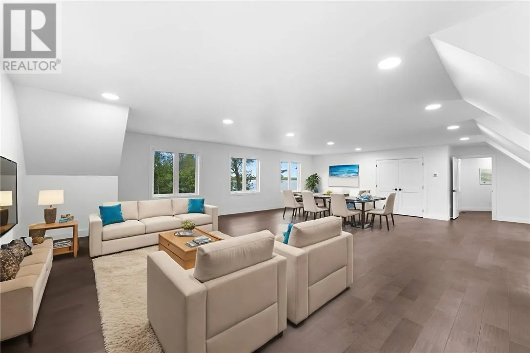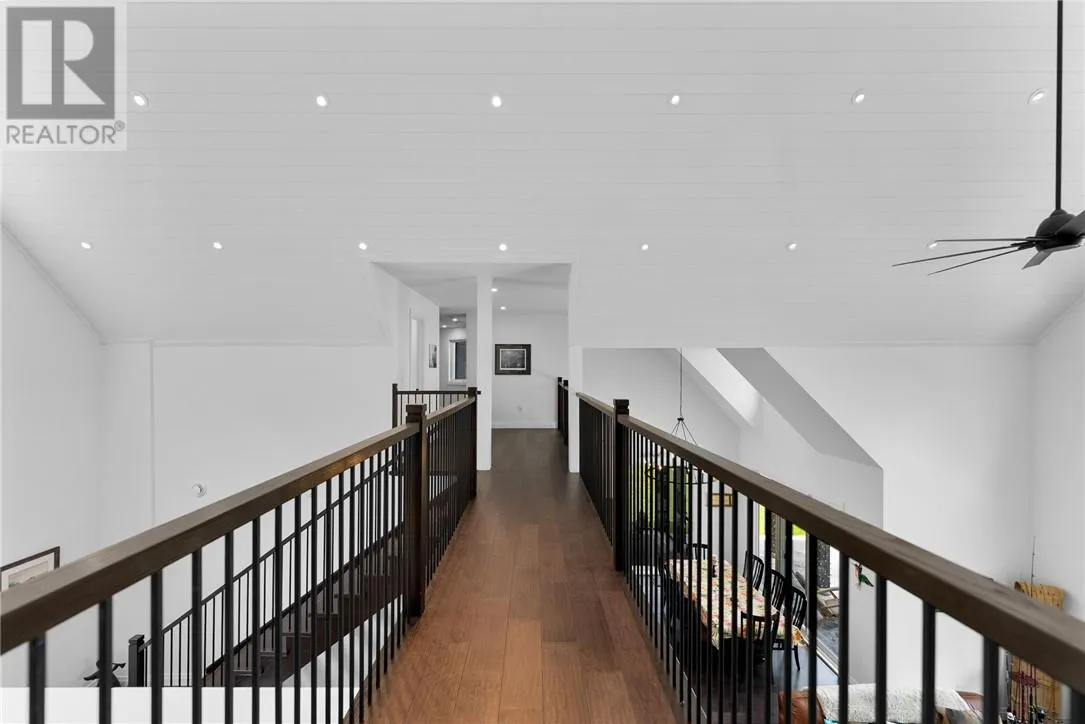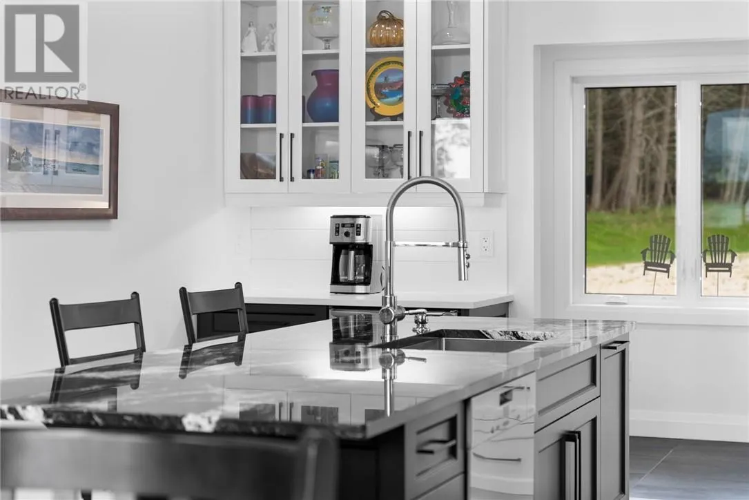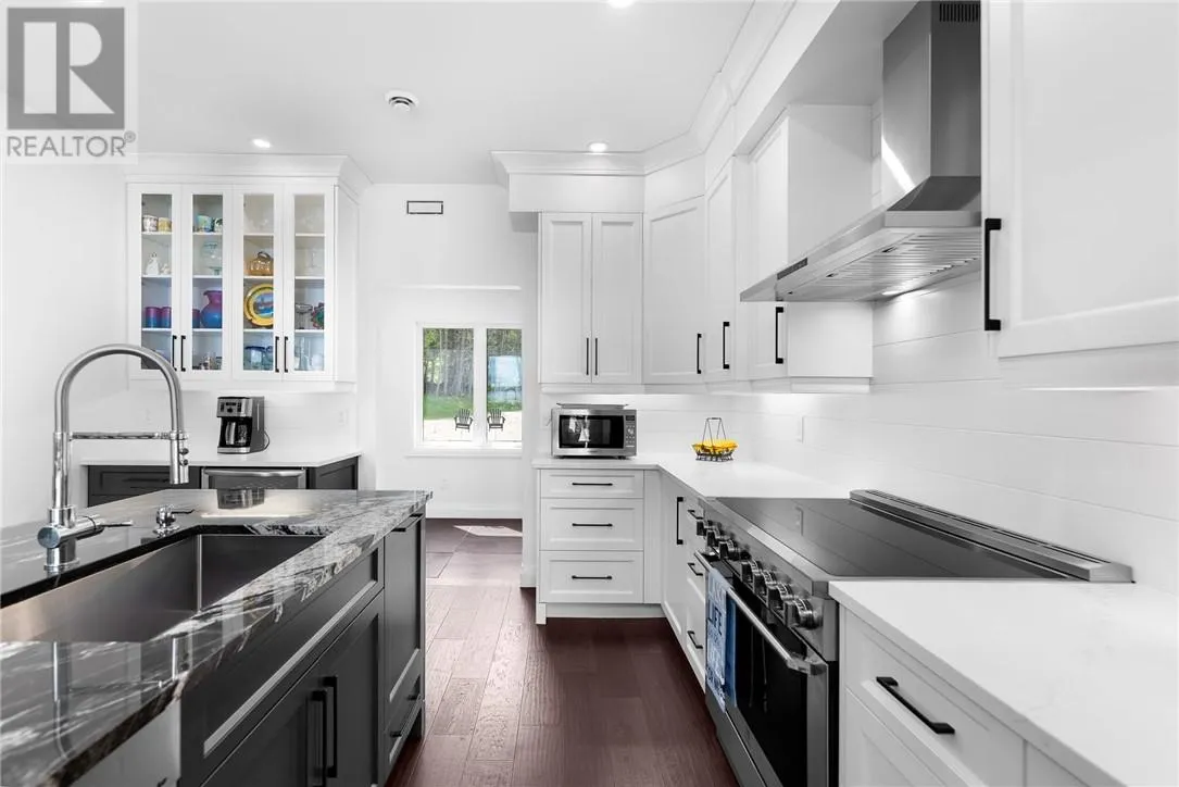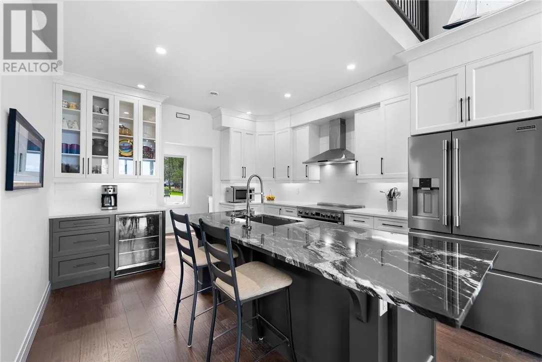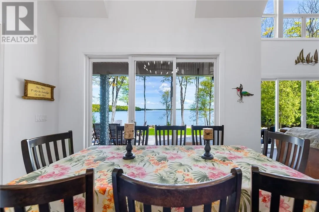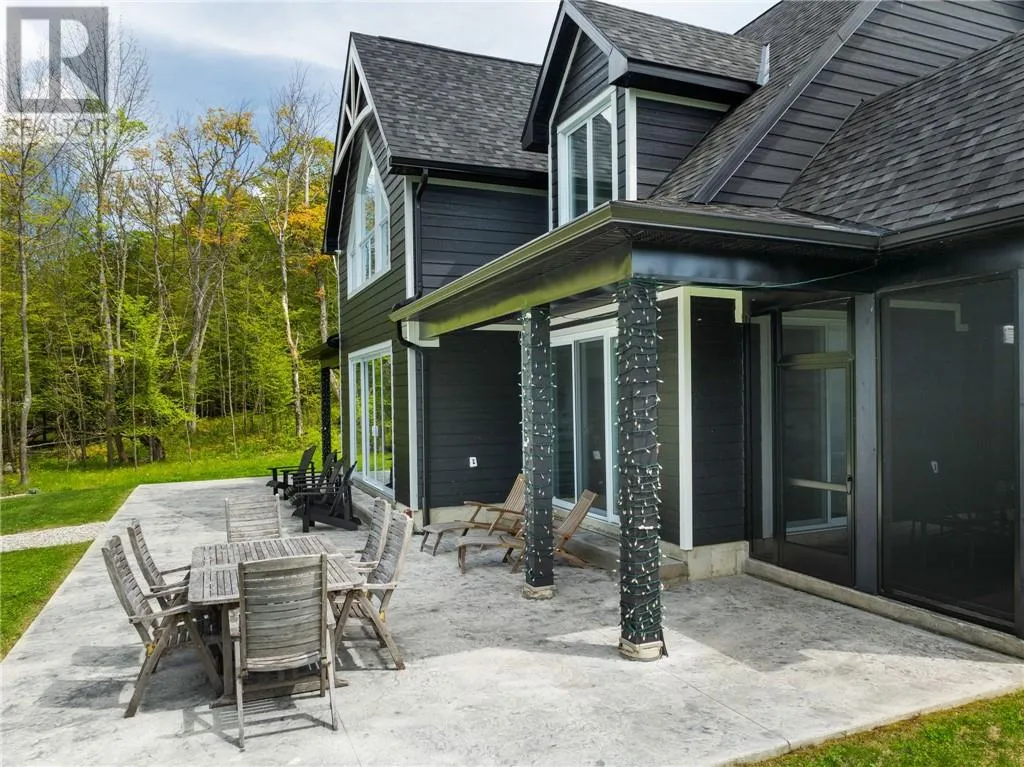 Welcome to 76B Johnston Road, a striking custom-built lakefront residence completed in 2022, where refined craftsmanship meets unparalleled privacy. Set on 5 secluded acres with manicured landscaping, stone walkways, and a shoreline fire pit, this property offers an extraordinary waterfront lifestyle in a serene setting. Soak in breathtaking views over Lake Manitou from your 40-foot dock with expansive sitting areaâperfect to unwind, entertain, or take in the beauty of one of Manitoulin Islandâs most coveted lakes. Inside, this home showcases meticulous attention to detail, featuring cathedral ceilings with shiplap accents, engineered hardwood floors, and floor-to-ceiling windows that frame the lake and flood the home with natural light. The open-concept main level is both elegant and inviting, anchored by a stunning stone fireplace in the living room. The kitchen is a chefâs dream with granite countertops, a large island, and seamless flow into the dining area and sunroomâideal for hosting or quiet mornings overlooking the water. The primary suite is a private sanctuary, offering spectacular lake views, a spacious walk-in closet, and a spa-inspired ensuite complete with double vanities, a luxurious walk-in shower, a deep soaker tub, and beautifully finished tile flooring. A grand foyer with a powder room, main-floor laundry, and access to the heated triple-car garage complete the main level. An open staircase leads to the second floor, where a dramatic walkway overlooks the living space below. This level offers two generous bedrooms, a full bath, and a versatile third bedroom currently suited as a family or games roomâperfect for guests or extended family. Designed for year-round living, this exceptional retreat features modern conveniences, a security system, and superior construction throughout. Whether youâre seeking a refined waterfront escape or a permanent luxury residence, this is a rare offering on Lake Manitou. Schedule your exclusive viewing today. (id:27476)