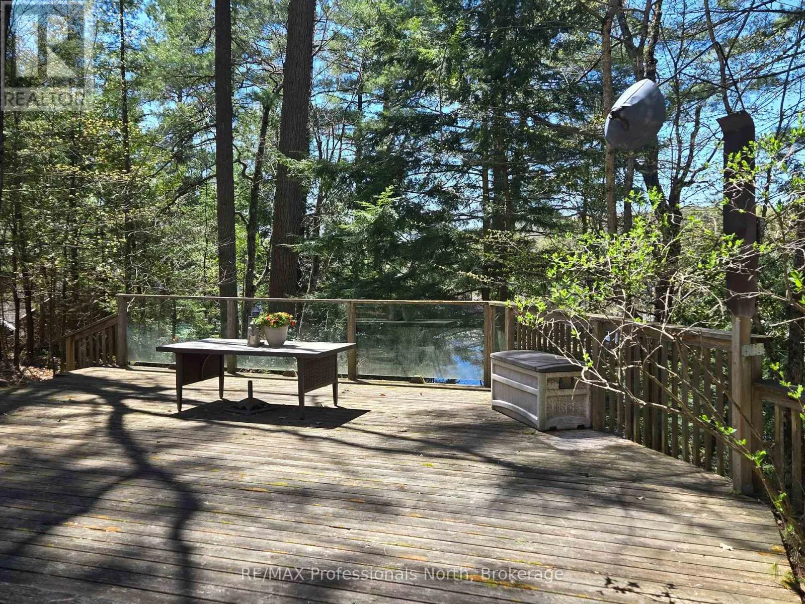 Cross Streets: Hwy 35. ** Directions: Hwy 35 to Parallel Falls Lane. Step into this unique year-round home or cottage with a Mexican flare. From the beautiful tile work, plaster walls, vaulted ceiling, and warm colours - it is the perfect vacation spot in the Highlands. The home offers large bedrooms - 1 on the main level & 2 upstairs, a bathroom on each floor, an open concept kitchen, dining, and living space that has multiple walkouts the the deck, and a fabulous 3-season Haliburton Room. The large kitchen Island faces the living room for additional entertaining. You will love the soaring ceiling in the living room and all the windows letting the sunshine into every corner of the house. The upstairs has an open loft area overlooking the living room and wait until you see the hand-created mosaic tile shower in the upstairs washroom. An expansive deck for exterior entertaining comes with quite a view overlooking the lake and sunsets. There is even a hot tub. The uniquely shaped screened-in Haliburton room is the perfect hangout space - a fresh-air breakfast, quiet naps during the day, and Cards at night! An amazing bonus to the property is the 610 sq. ft. Studio with loft. The studio comes with a 3 pce bath and kitchenette space. Let your imagination run with the many uses of this beautiful building. Fantastic spot for the kids to hang out, to craft your hobby, turn into a library/office, or even an exercise room. Below is a 395 sq ft workshop/storage space! The building is fully insulated, heated, and has hydro and water. The landscaping and paths throughout the property give a real cottage feel among the treetops. No lawn to cut. Walk down the meandering steps along a beautiful rock outcropping to the level waterfront. There is a shed that has power near the water. Entry is sandy and shallow but deep to park a boat off the dock. Look down and see all of Mountain Lake which is a 2-lake chain with Horseshoe Lake for endless exploration - boating, islands, cliff jumping and more. (id:27476)