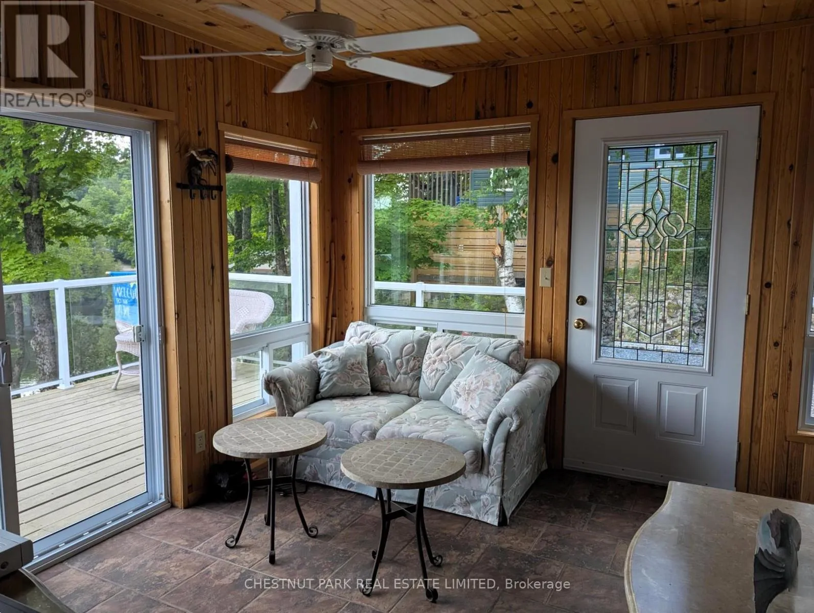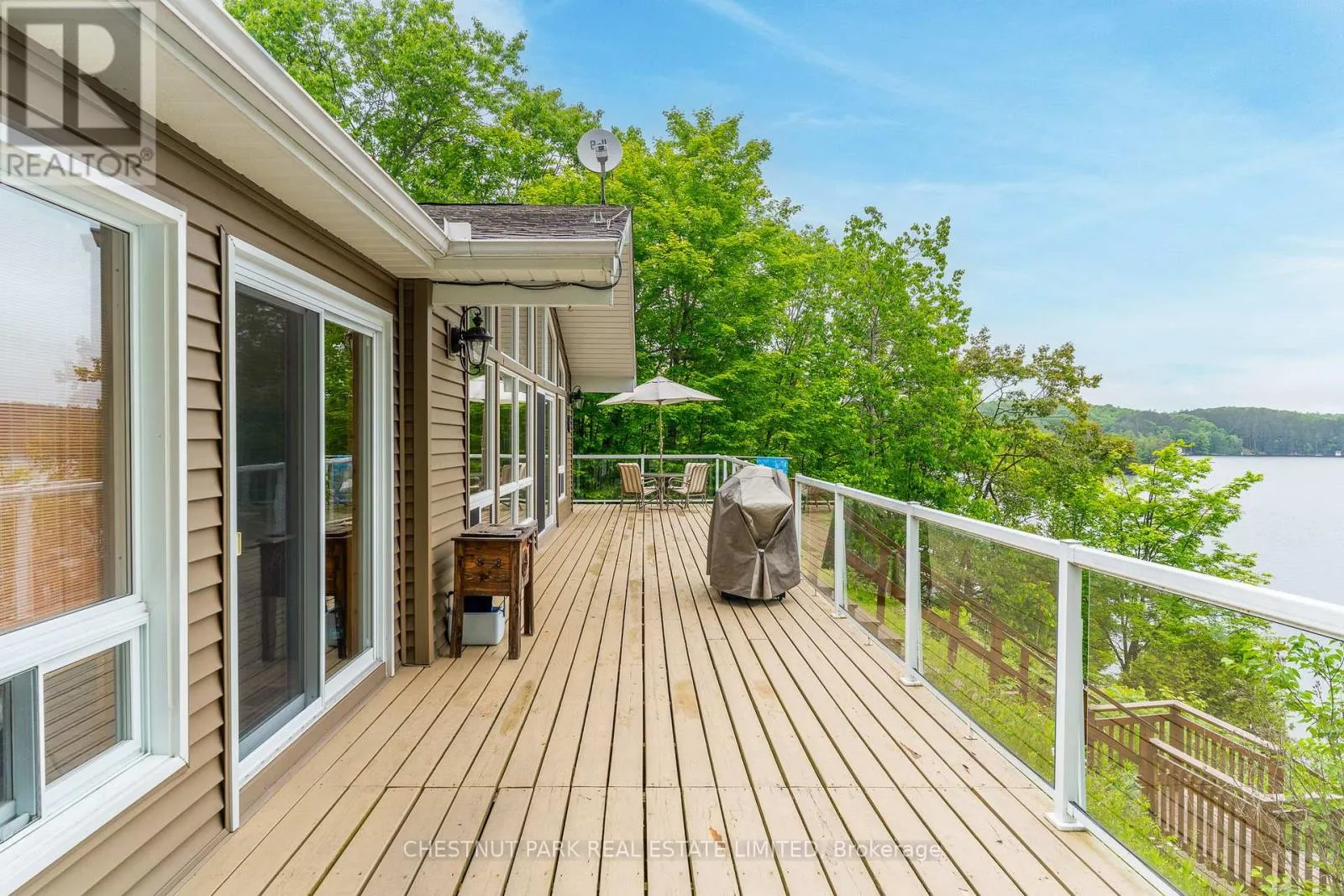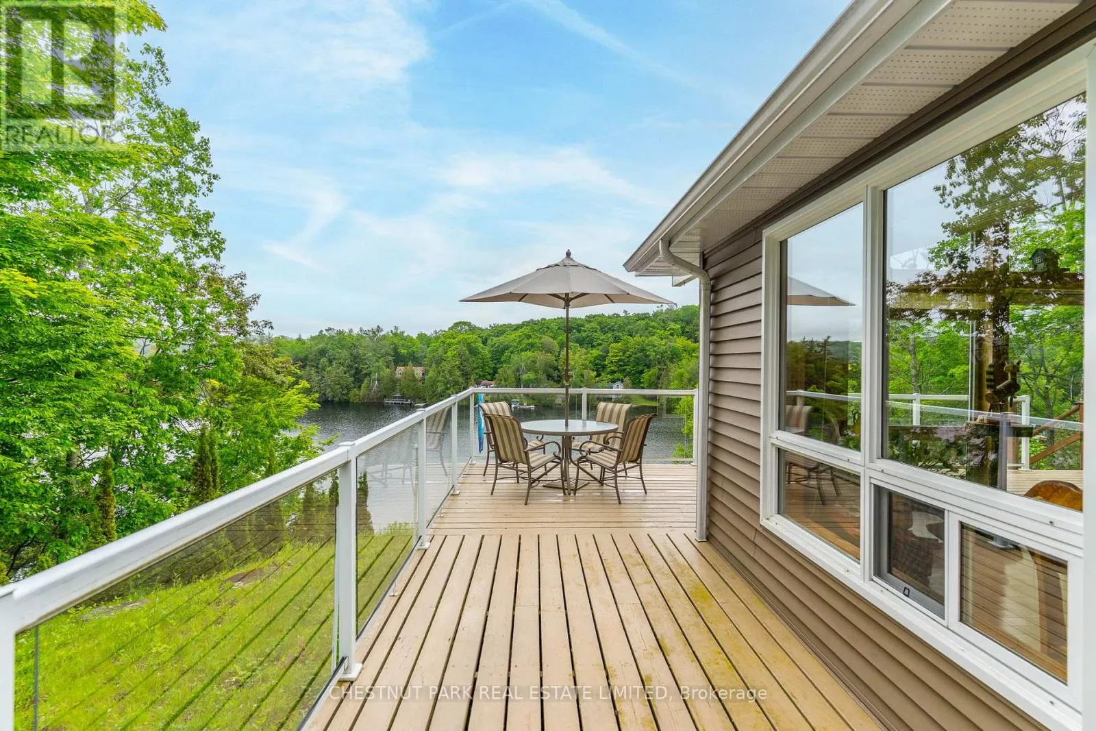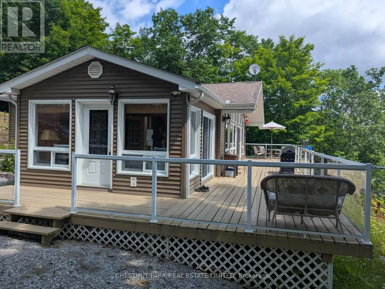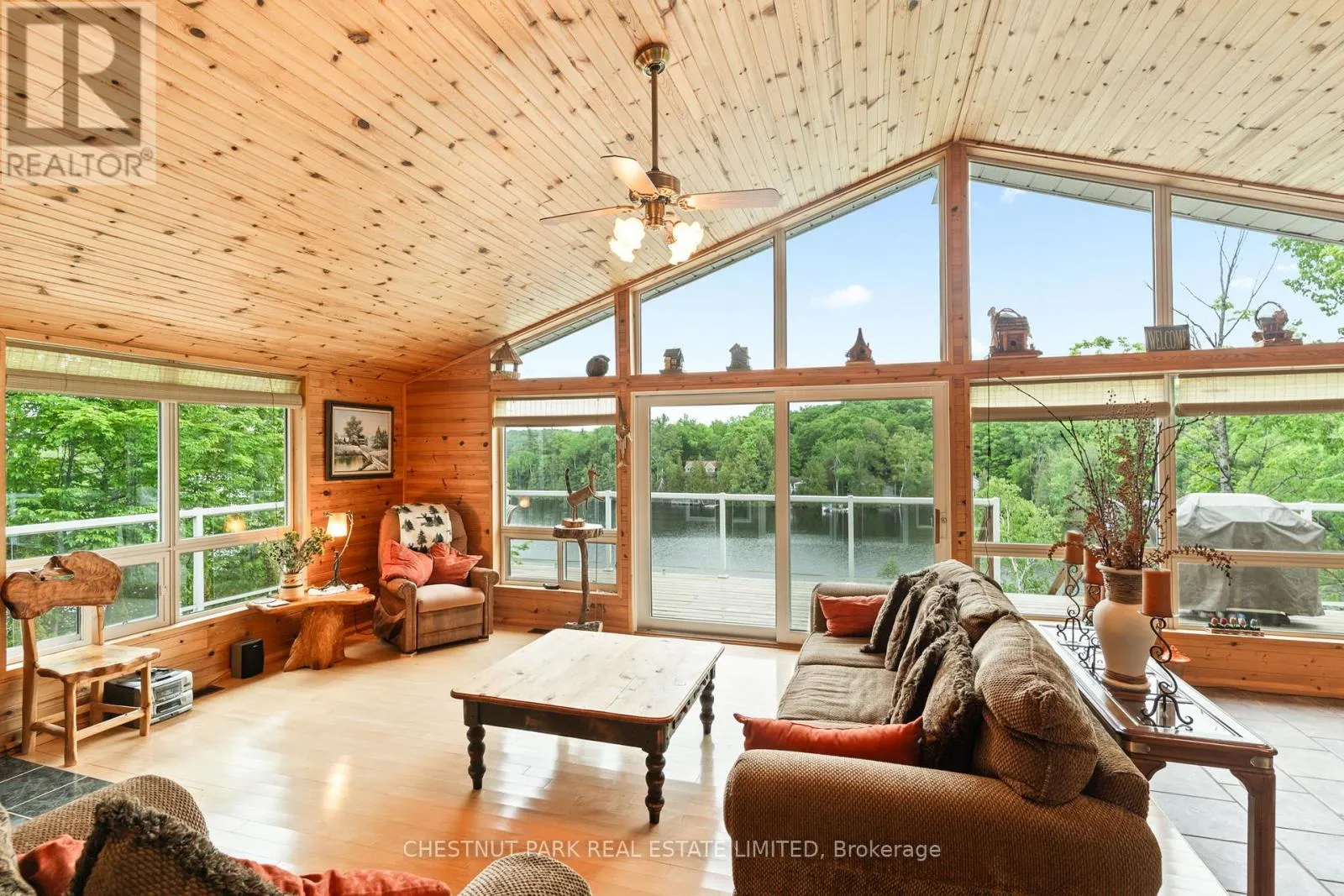 Cross Streets: Hwy 35 & Scotch Line Road. ** Directions: Scotch Line Road to Claude Brown to SOP. Create lasting family memories on beautiful Bob Lake in the heart of the Haliburton Highlands! This well-loved, Viceroy-style 3-bedroom cottage is fully winterized and features an open-concept layout ideal for gatherings, plus a bright sunroom with breathtaking lake views. Cozy up by the woodstove after a day outdoors, or enjoy meals on the expansive deck overlooking the sparkling water. The property offers elevated, panoramic views with a thoughtfully designed stair system leading to a clean, deep shoreline and two docks ideal for swimming, lounging, or launching your kayaks, paddle boat, and canoe (all included!). Located on a year-round municipal road, this well-maintained retreat is set up for four-season enjoyment. A place to relax, explore, and build cherished cottage traditions for years to come. (id:27476)