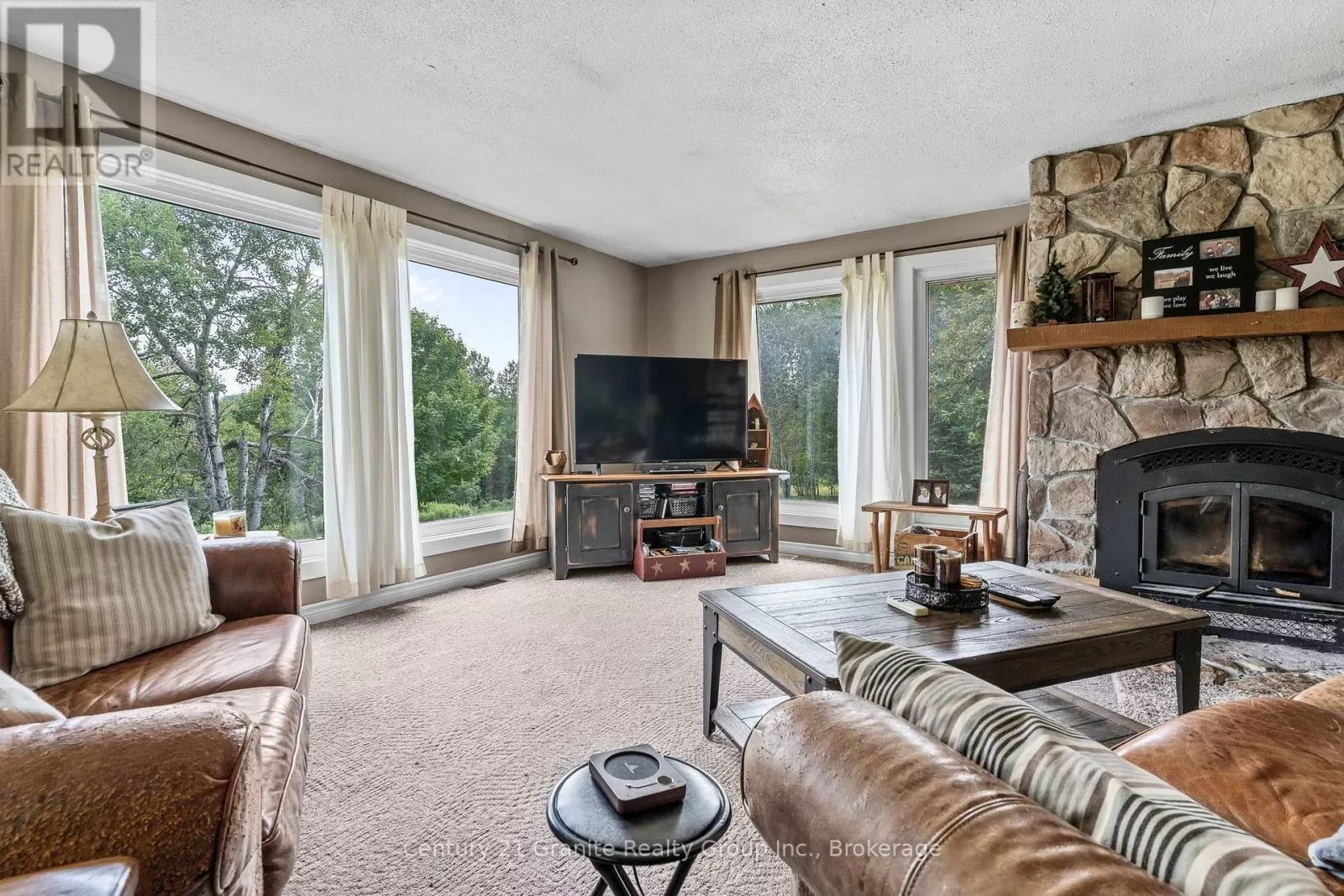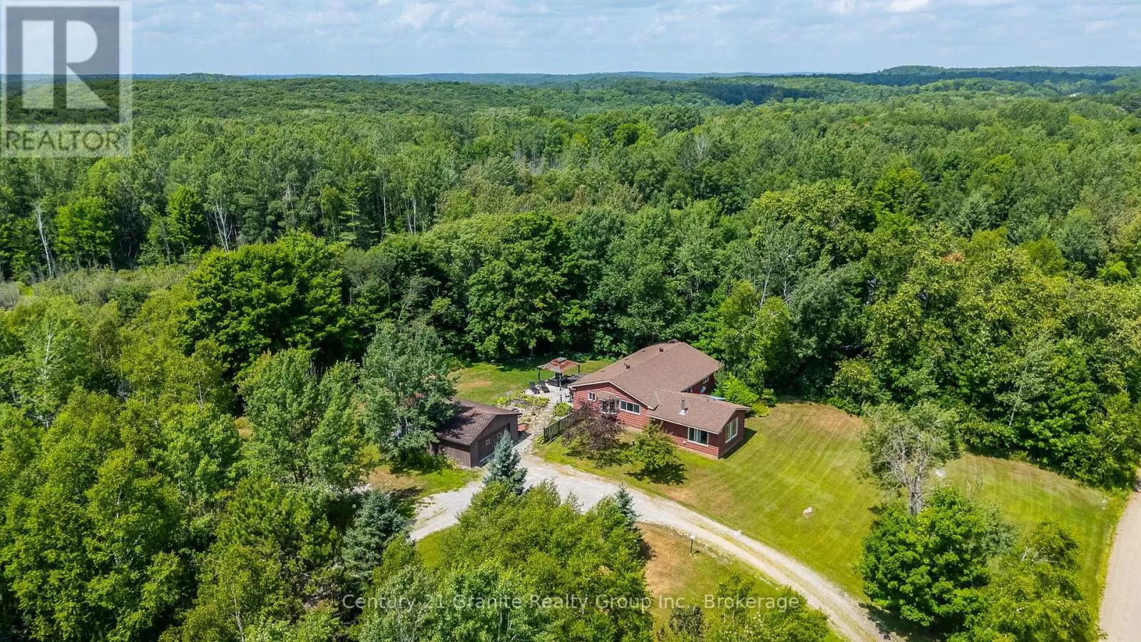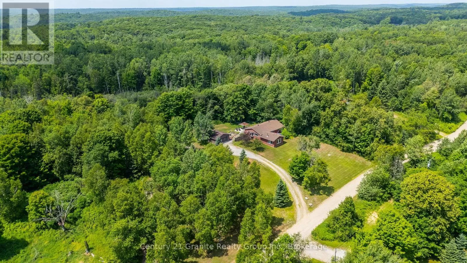 Cross Streets: Scotch Line Rd & Hwy 35. ** Directions: Hwy 35, left onto Scotch Line Rd and a quick right on Kernohan Farm Trail. Just up over the hill on your left. Just What The Doctor Ordered - Peace, Privacy & Proximity! This warm and welcoming 3-bedroom bungalow offers 2,114 sq ft of living space, nestled on a tranquil 3.5-acre forested lot just 3 minutes from downtown Minden. With a newer shingles (2022/23), wood siding (2022), and updated furnace (2024), the home combines charm with peace of mind. The spacious open-concept kitchen, dining, and living areas are perfect for hosting family and guests, while the large circular driveway can easily accommodate multiple vehicles. A massive garage/workshop adds incredible functionality-ideal for hobbyists, storage, or year-round projects. Top it off with a beautiful backyard pond for year-round enjoyment, and you've got the perfect country escape with all the right features. (id:27476)