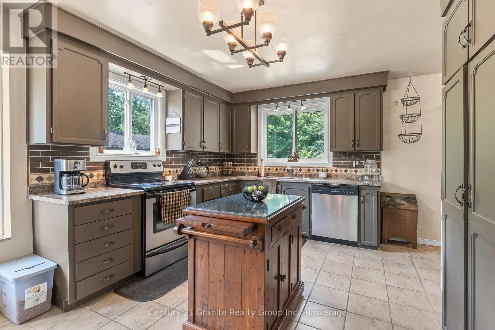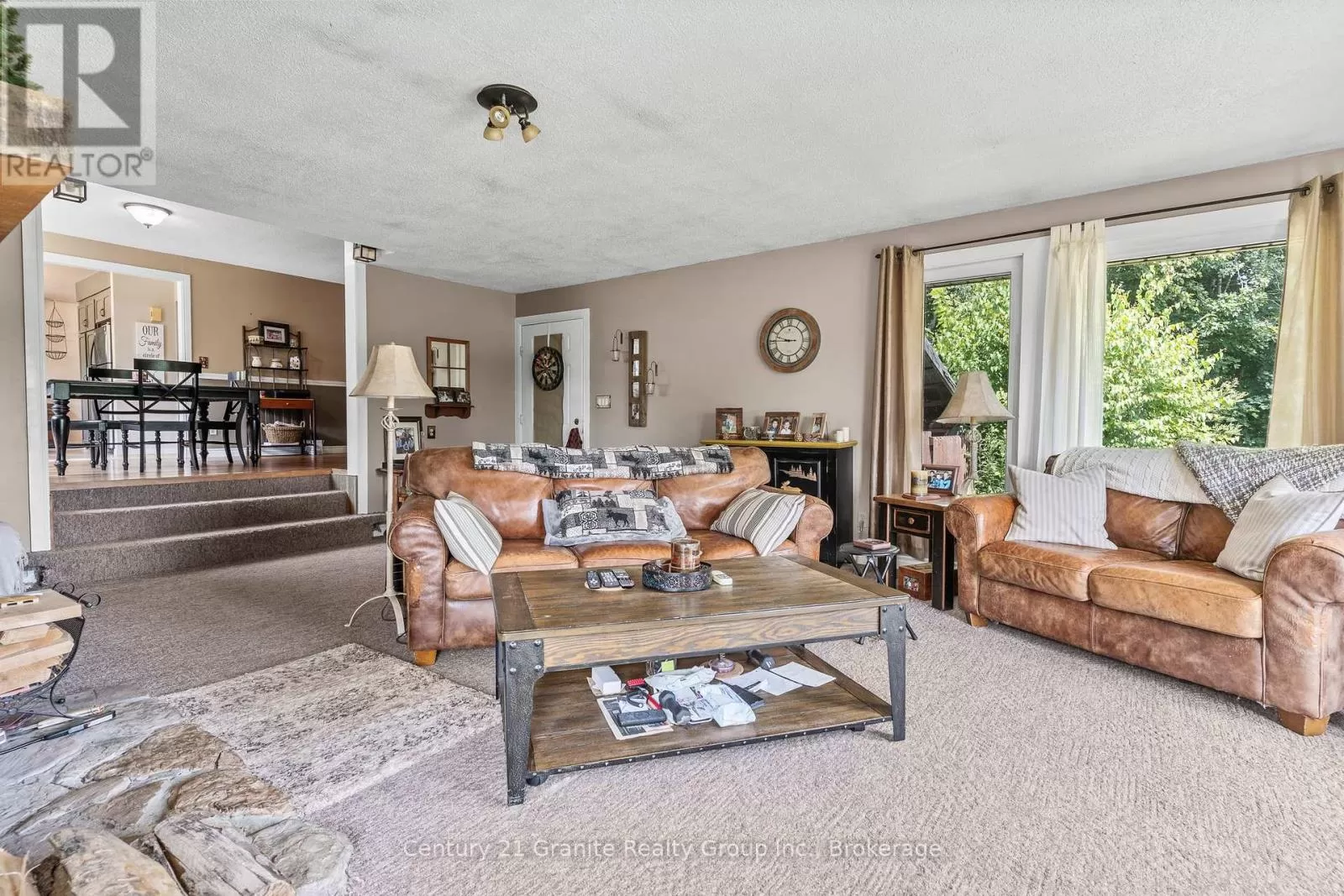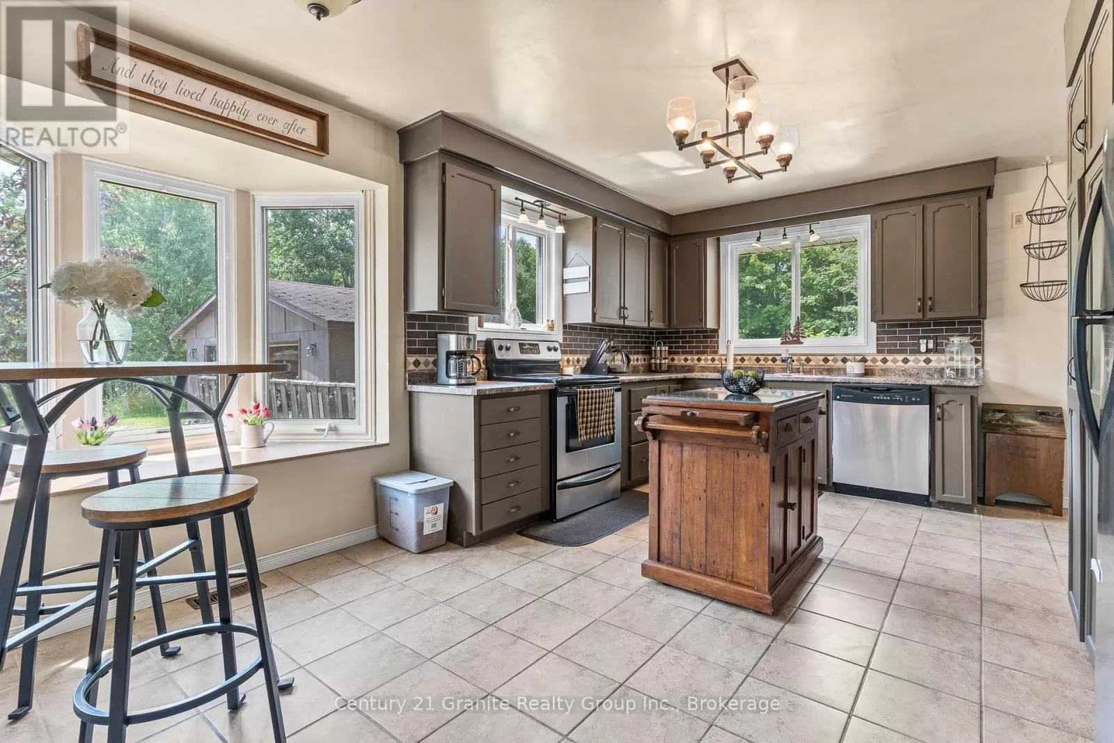 Cross Streets: Scotch Line Rd & Hwy 35. ** Directions: Hwy 35, left onto Scotch Line Rd and a quick right on Kernohan Farm Trail. Just up over the hill on your left. Just What The Doctor Ordered - Peace, Privacy & Proximity! This warm and welcoming 3-bedroom bungalow offers 2,114 sq ft of living space, nestled on a tranquil 3.5-acre forested lot just 3 minutes from downtown Minden. With a newer shingles (2022/23), wood siding (2022), and updated furnace (2024), the home combines charm with peace of mind. The spacious open-concept kitchen, dining, and living areas are perfect for hosting family and guests, while the large circular driveway can easily accommodate multiple vehicles. A massive garage/workshop adds incredible functionality-ideal for hobbyists, storage, or year-round projects. Top it off with a beautiful backyard pond for year-round enjoyment, and you've got the perfect country escape with all the right features. (id:27476)