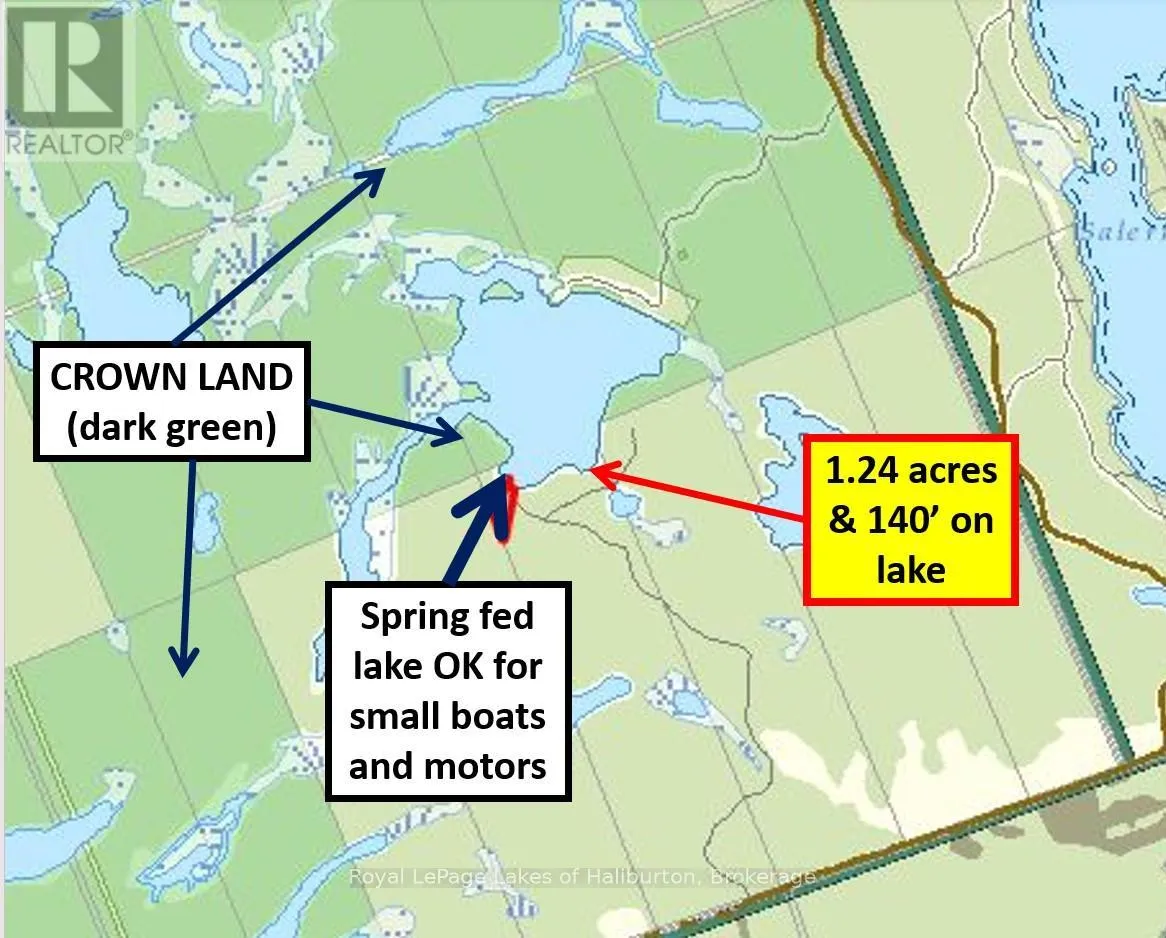 Cross Streets: White Lake Road. ** Directions: From Fenelon Falls, take Hwy. 121 North, to Galway Rd. Galway Rd., to White Lake Rd., to Nodin Dr. From Irondale, take Irondale Rd., to Salerno Lake Rd., to White Lake Rd., to Nodin Dr. Stay right on Cannonball. SPRING-FED WILEY LAKE. Fabulous wilderness setting assures privacy for the discerning buyer looking for a small lake setting tucked away in the wilds of Haliburton County. Full north-west exposure and hard-packed sandy beach. 153 feet of waterfront and 1.2 acres on Wiley Lake, a spring-fed lake loaded with bass. 70% of the shoreline touches Crown Land. Unusually low cottage density. Not part of the Trent Canal supply chain. This gem is just off the beaten path and one of only 22 cottages/lots on the lake. The existing off-grid storage shed & old bunkie are a perfect place to start planning your future cottage dreams. 2 docks ready for your use. A Gazebo shell is ready for new canvas. This lot has loads of character and is easily polished up. Being sold in as-is, where-is condition. Lots of room for a cottage or retirement home. Hydro/bell at lot line. Plenty of room for a garage. Year-round access on a private road. For building standards explorehttp://mindenhills.ca/building-bylaw-planning/. Just over 2.5 hours from GTA. 10 minutes to Irondale and30 minutes to Minden, Kinmount or Bobcaygeon. ATV trails nearby. (id:27476)