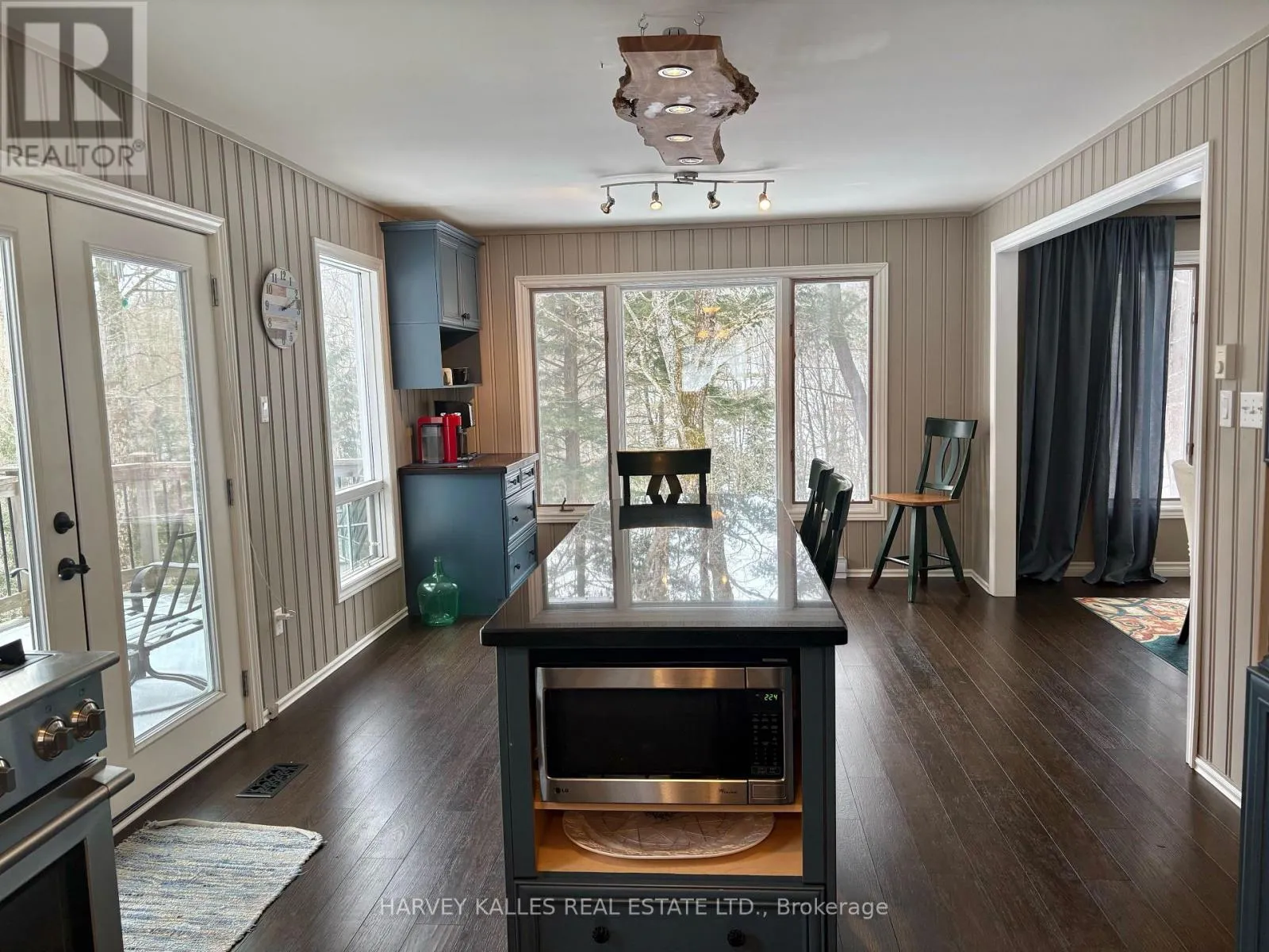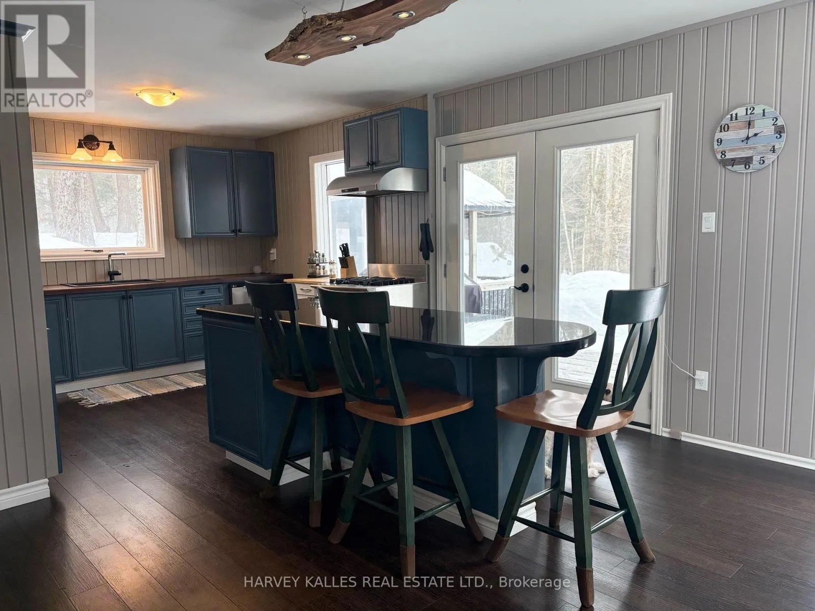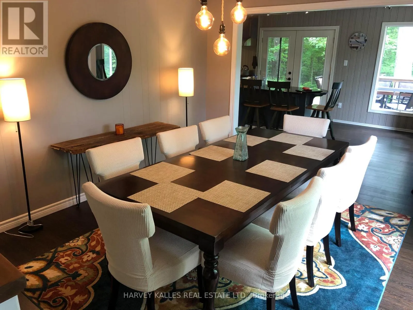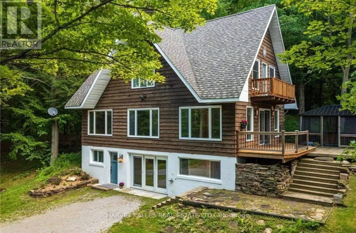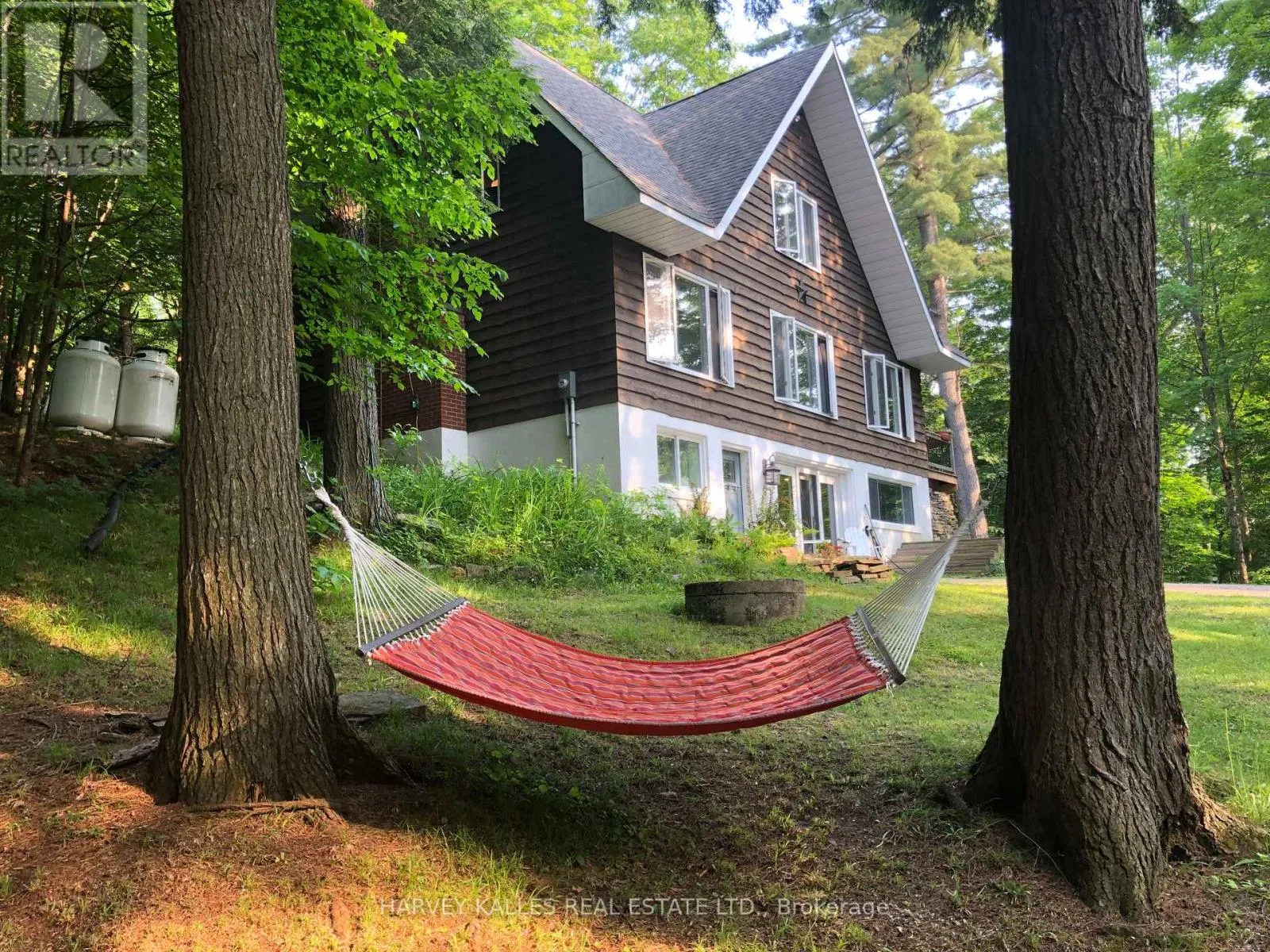 HYW 35 & Ransley Road Welcome to your dream home! Set back on 8 acres this stunning 3 bed, 2 bath Chalet is perfectly nestled in the Forest, offering total Privacy and Peace -all while being just minutes from town on a yearly maintained township road. Perfect Family layout with Plenty of Space for Guest & Gatherings. Full Game room on the lower level complete with Pool Table, Card Table, built in shelves &potential to add additional bedroom. Main floor has additional living space with Stone Fireplace, Hardwood floors & Pine Accents throughout. Beautifully renovated Chef's Kitchen with Gas Range, Large Granite Island, Butcher Block counters, ample cupboard space and a walk out to BBQ on the deck with covered Screened Gazebo. The bedrooms are all located on the upper level completed with Warm Cork floors, tons of closet space. Spa like upper level Bath with Freestanding Soaker Tub, Enclosed Shower & custom designer paint. Come see for yourself - you won't want to leave! (id:27476)