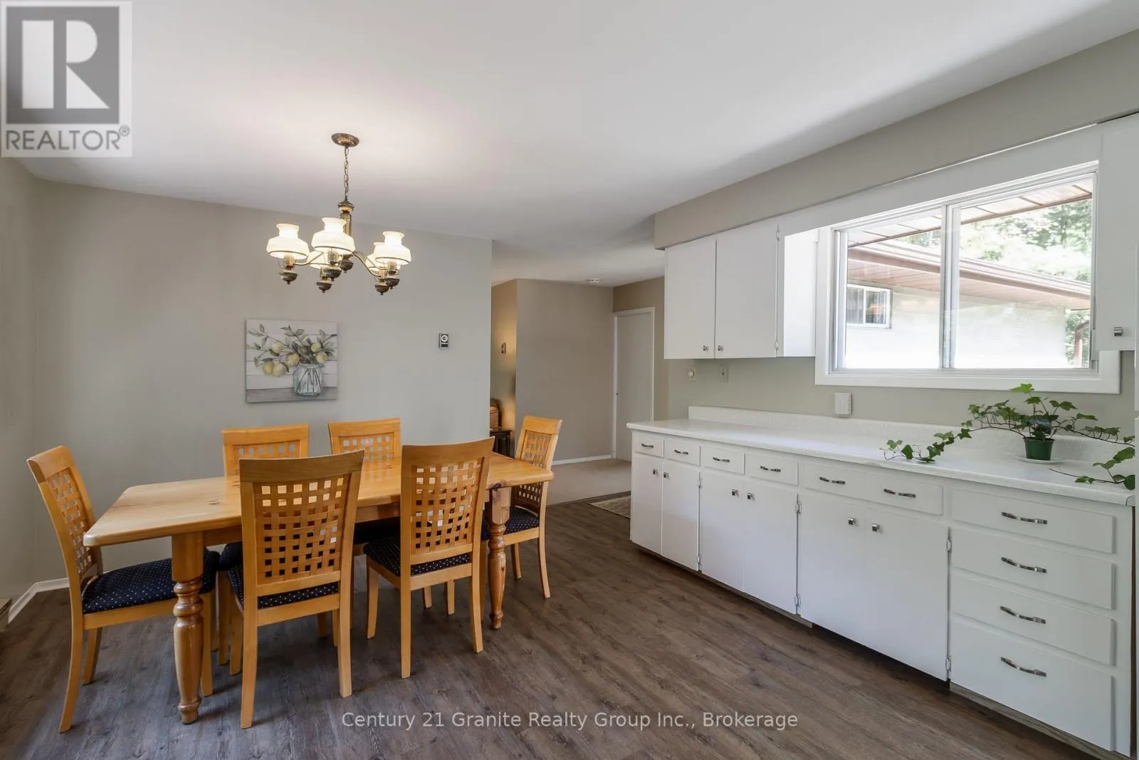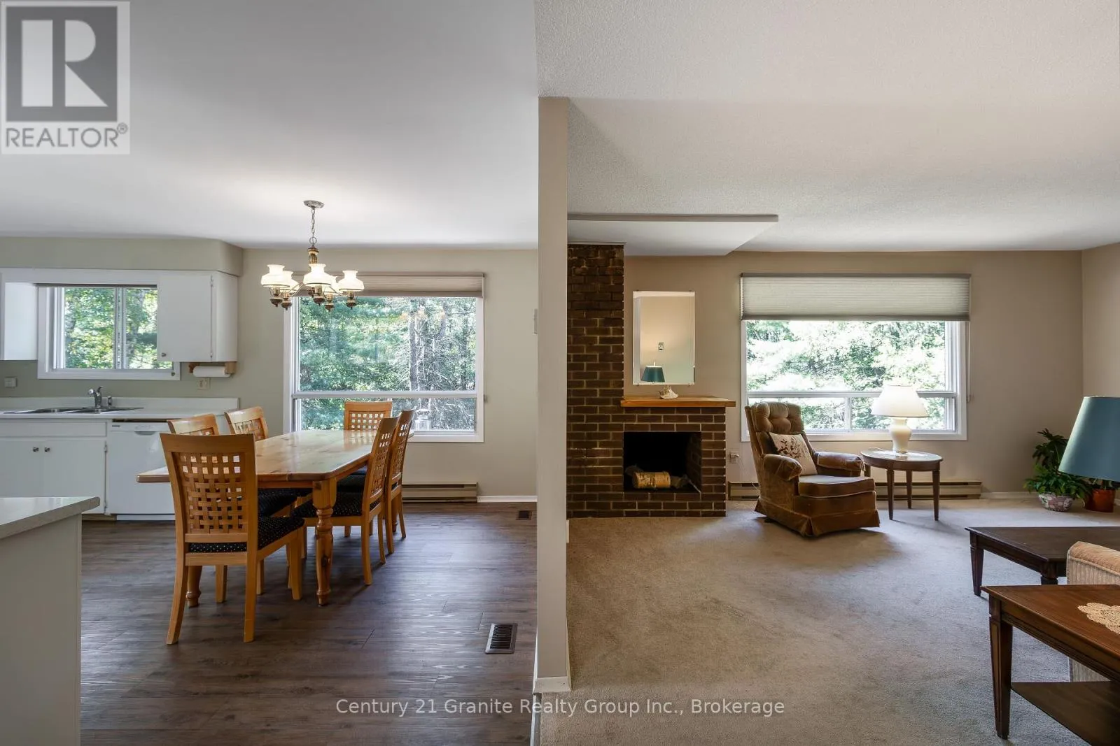 Cross Streets: Bobcaygeon Road and Scotch Line Road. ** Directions: Highway 35 to Bobcaygeon Road to sign on property. Welcome to this lovingly maintained 3-bedroom, 1.5-bathroom home, perfectly situated just 5 minutes from Minden's vibrant downtown, the riverwalk, and the Gull River. Nestled on a private 0.8-acre parcel, this property offers the ideal balance of comfort, convenience, and space. Step inside to discover a bright and functional layout featuring an open-concept kitchen and dining area with a seamless walkthrough into the living room. Large windows frame the natural surroundings and fill the home with sunlight. The main level includes three spacious bedrooms, highlighted by a primary suite with a 2-piece ensuite, and a 4-piece bathroom for family and guests. Thoughtful storage solutions are built throughout the home, making it both practical and welcoming for everyday living. The partially above-ground basement is filled with natural light and provides excellent potential to expand your living space whether as a rec room, home office, or hobby area. Outside, the home is set back from the road and complemented by a spacious carport just steps from the entrance. At the back of the property, enjoy a generous two-tier yard, perfect for gardening, outdoor entertaining, or simply relaxing in a private setting. Whether you're a young family looking for your first home or seeking a peaceful place to retire, this property has so much to offer. Book your private tour today! (id:27476)