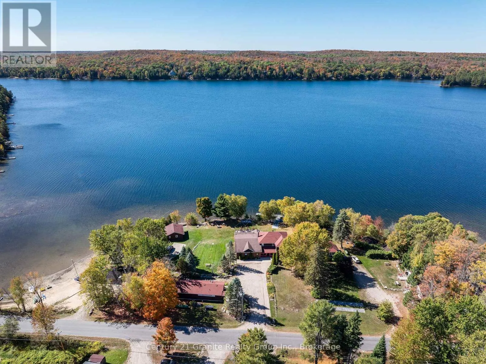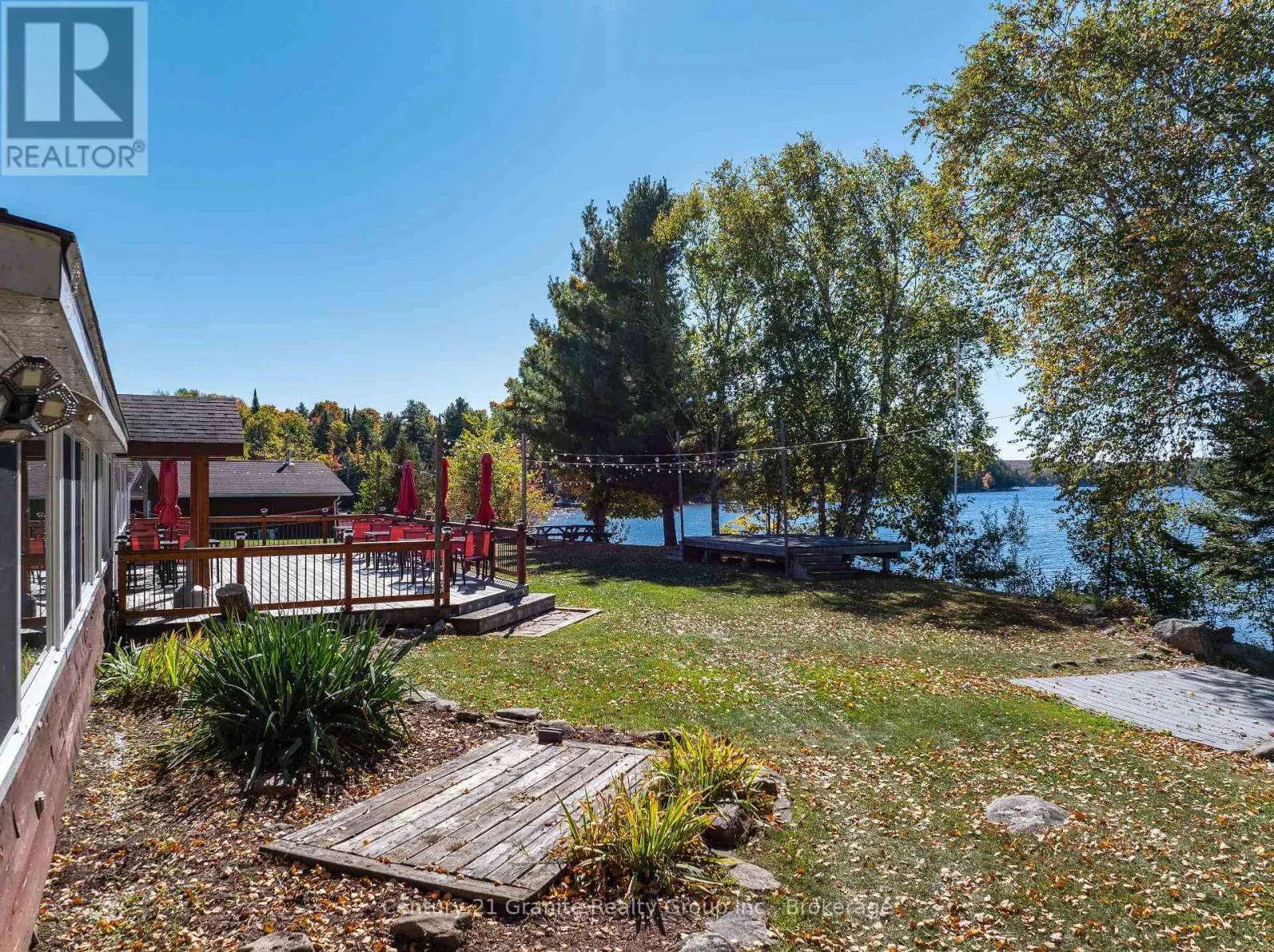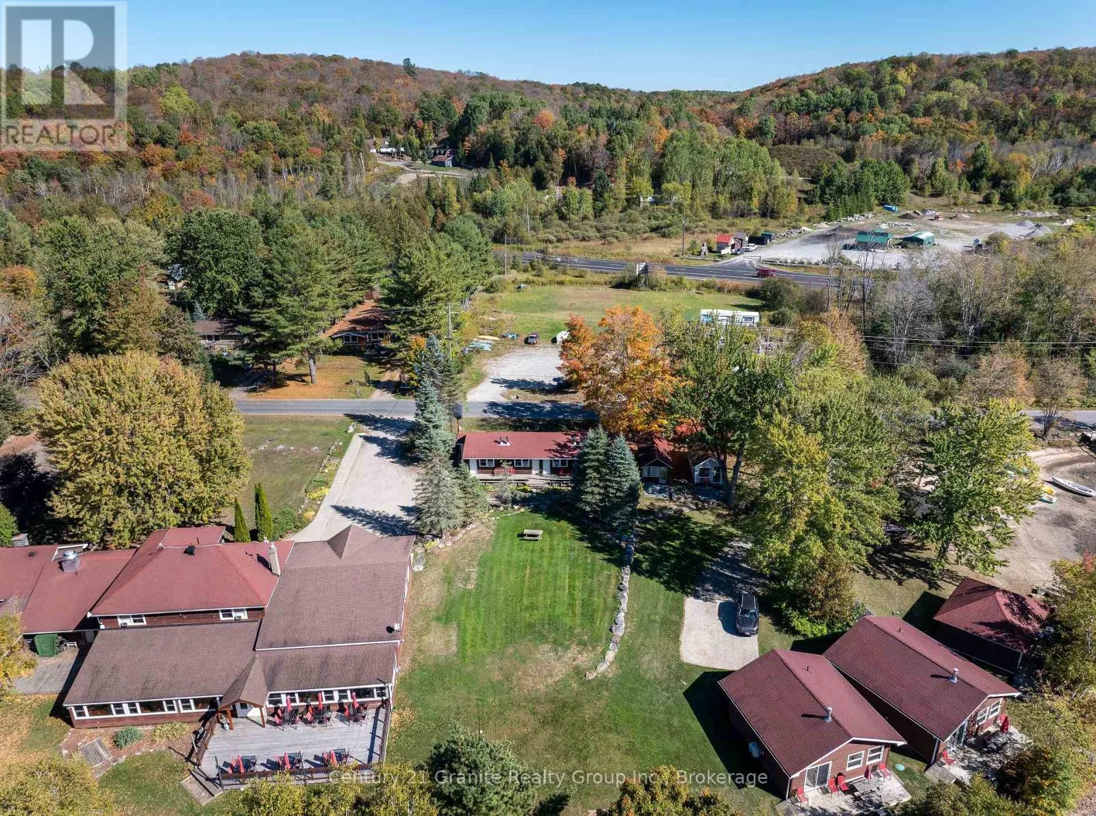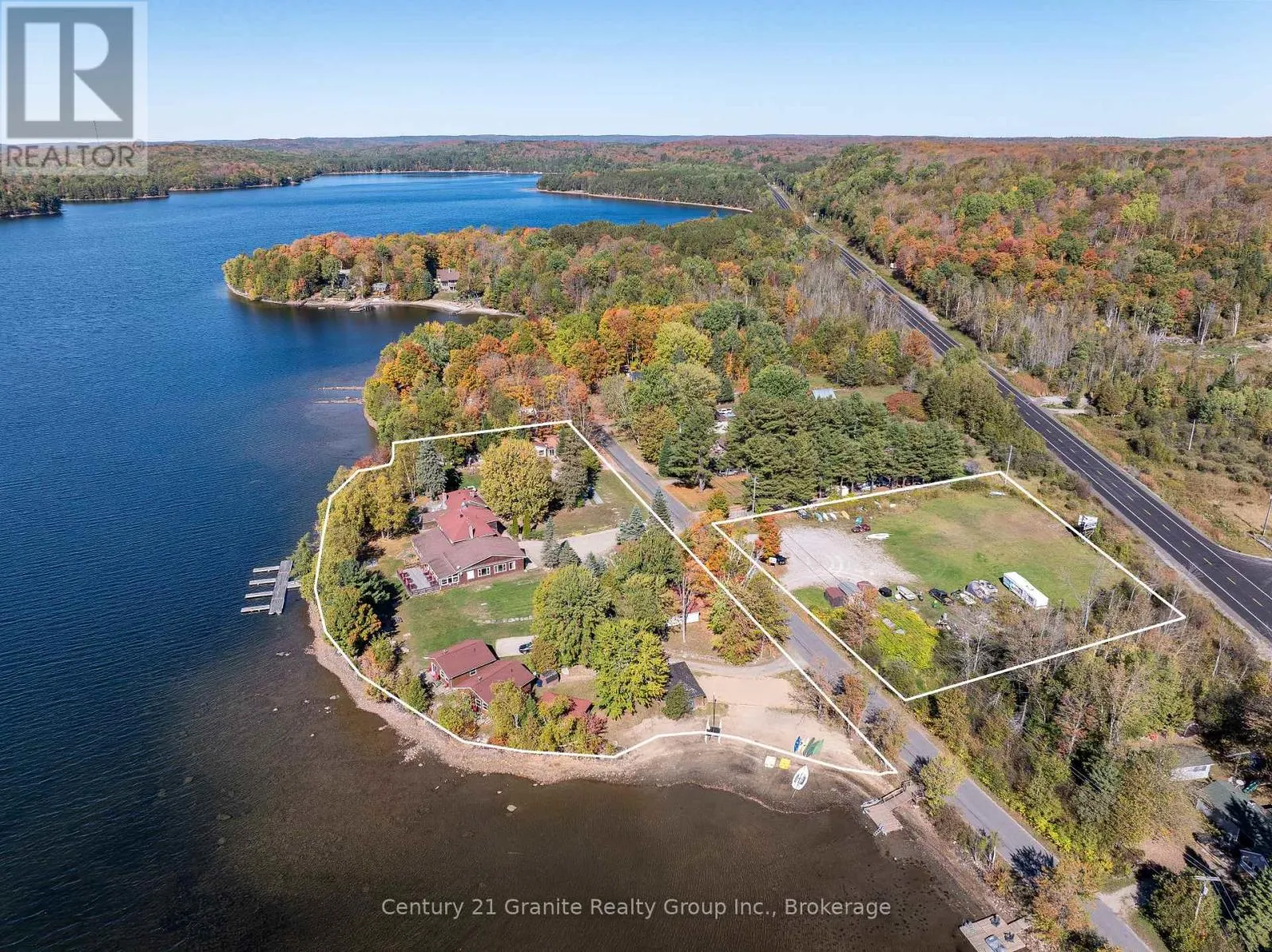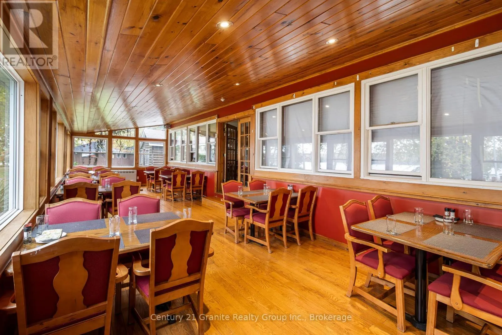 Cross Streets: Highway 35 and Red Umbrella Road. ** Directions: Highway 35 to Red Umbrella Road. Welcome to the Red Umbrella Inn, a cherished 4-season resort on Twelve Mile Lake, part of the sought-after 3-lake chain with Little and Big Boshkung. Sitting on 3.5 acres of level, pie-shaped land with stunning southern and western exposures, this property showcases unforgettable sunsets and a private sand beach tucked into a sheltered bay. A large multi-slip dock at the waters edge provides excellent access for boating, fishing, and enjoying all that this pristine lake chain offers. The Main Inn features a chefs kitchen, a BBQ area on the lakeside patio and on the kitchen deck, plus an inviting lounge with a full bar. The completely renovated dining room is complete with an open stage area to host performers and offers breathtaking lake views, with seating extending to the licensed lakeside patio and grounds, making it an ideal venue for weddings, retreats, and entertainment events. Accommodations are varied, providing flexibility for guests and future opportunities for growth: 5 comfortable rooms above the Inn, 4 lakeview motel-style units, 2 cozy cottages, 3 lakeside cottages (2 with efficiency layouts), 4 additional efficiency suites & a renovated owners quarters within the Inn. Since 1929, the Red Umbrella Inn has been known for clean, comfortable stays, delicious dining, and exemplary service. This is a rare opportunity to own a piece of Haliburton Highlands history perfect for those seeking a lifestyle change, a thriving business investment, or the potential for a private family compound. An additional adjacent lot across the road is included, currently used for parking but offering excellent highway frontage on Hwy 35. All just minutes north of Minden, in the heart of cottage country and year-round tourist activity. (id:27476)