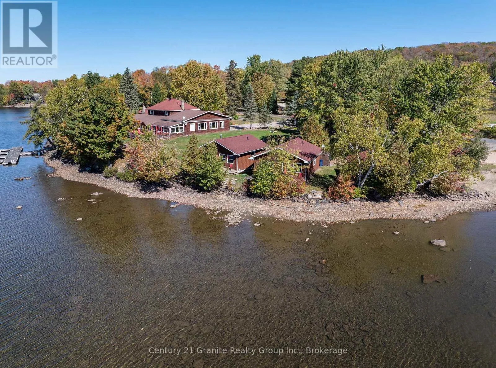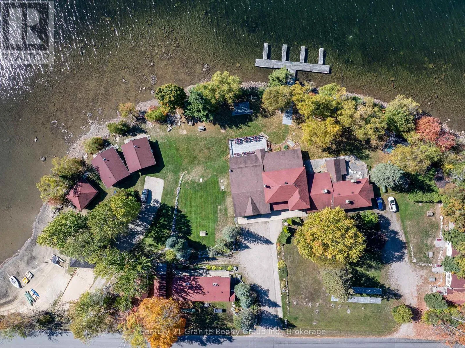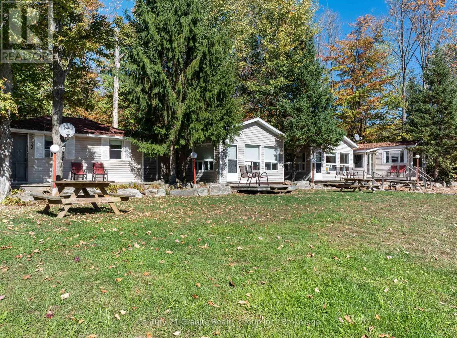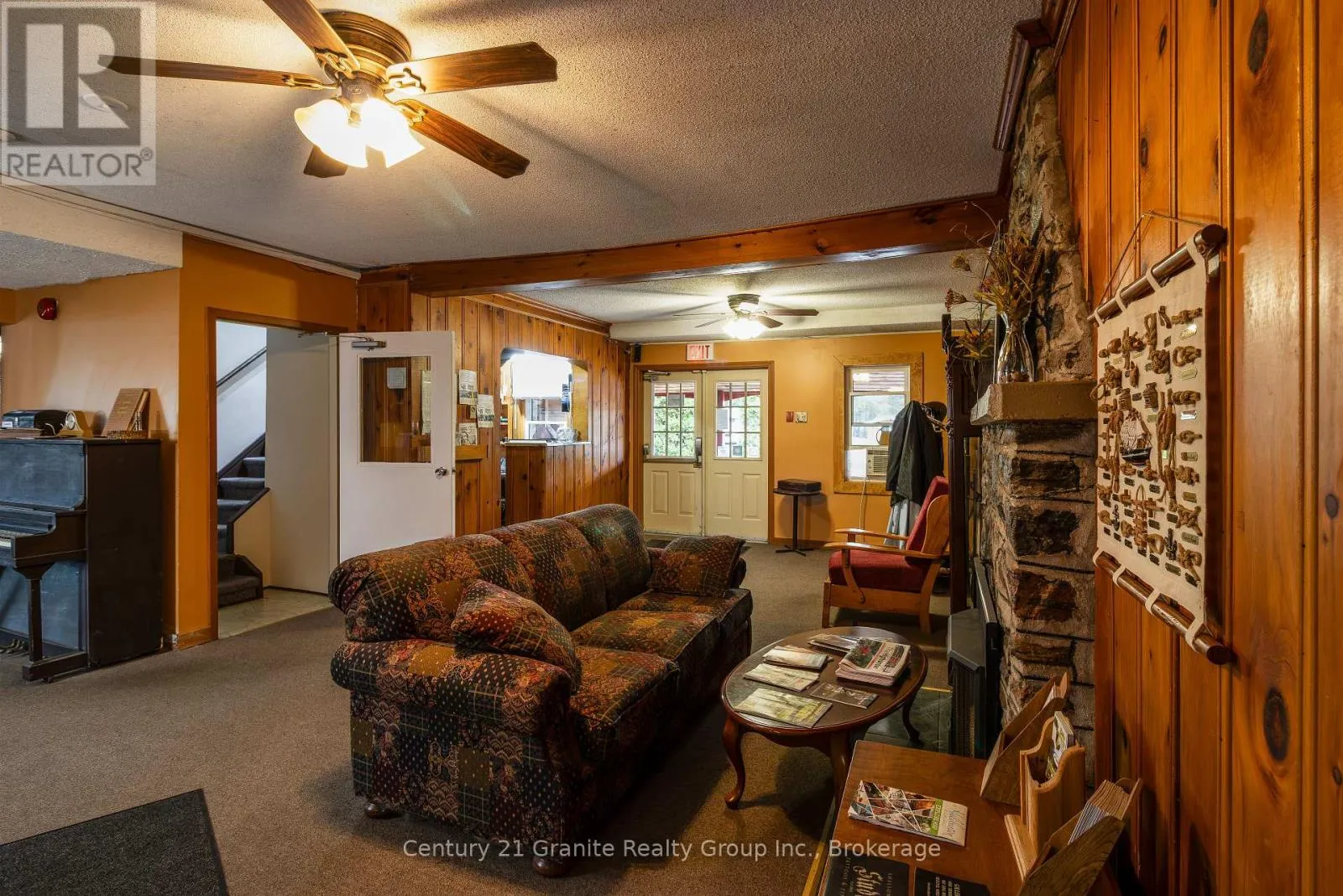 Cross Streets: Highway 35 and Red Umbrella Road. ** Directions: Highway 35 to Red Umbrella Road. Welcome to the Red Umbrella Inn, a cherished 4-season resort on Twelve Mile Lake, part of the sought-after 3-lake chain with Little and Big Boshkung. Sitting on 3.5 acres of level, pie-shaped land with stunning southern and western exposures, this property showcases unforgettable sunsets and a private sand beach tucked into a sheltered bay. A large multi-slip dock at the waters edge provides excellent access for boating, fishing, and enjoying all that this pristine lake chain offers. The Main Inn features a chefs kitchen, a BBQ area on the lakeside patio and on the kitchen deck, plus an inviting lounge with a full bar. The completely renovated dining room is complete with an open stage area to host performers and offers breathtaking lake views, with seating extending to the licensed lakeside patio and grounds, making it an ideal venue for weddings, retreats, and entertainment events. Accommodations are varied, providing flexibility for guests and future opportunities for growth: 5 comfortable rooms above the Inn, 4 lakeview motel-style units, 2 cozy cottages, 3 lakeside cottages (2 with efficiency layouts), 4 additional efficiency suites & a renovated owners quarters within the Inn. Since 1929, the Red Umbrella Inn has been known for clean, comfortable stays, delicious dining, and exemplary service. This is a rare opportunity to own a piece of Haliburton Highlands history perfect for those seeking a lifestyle change, a thriving business investment, or the potential for a private family compound. An additional adjacent lot across the road is included, currently used for parking but offering excellent highway frontage on Hwy 35. All just minutes north of Minden, in the heart of cottage country and year-round tourist activity. (id:27476)