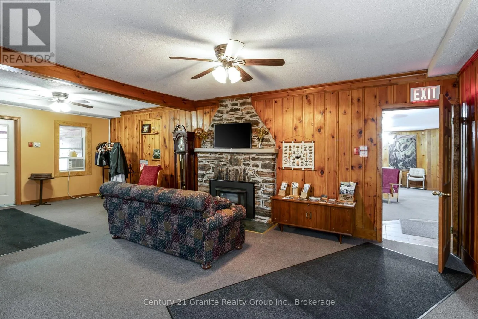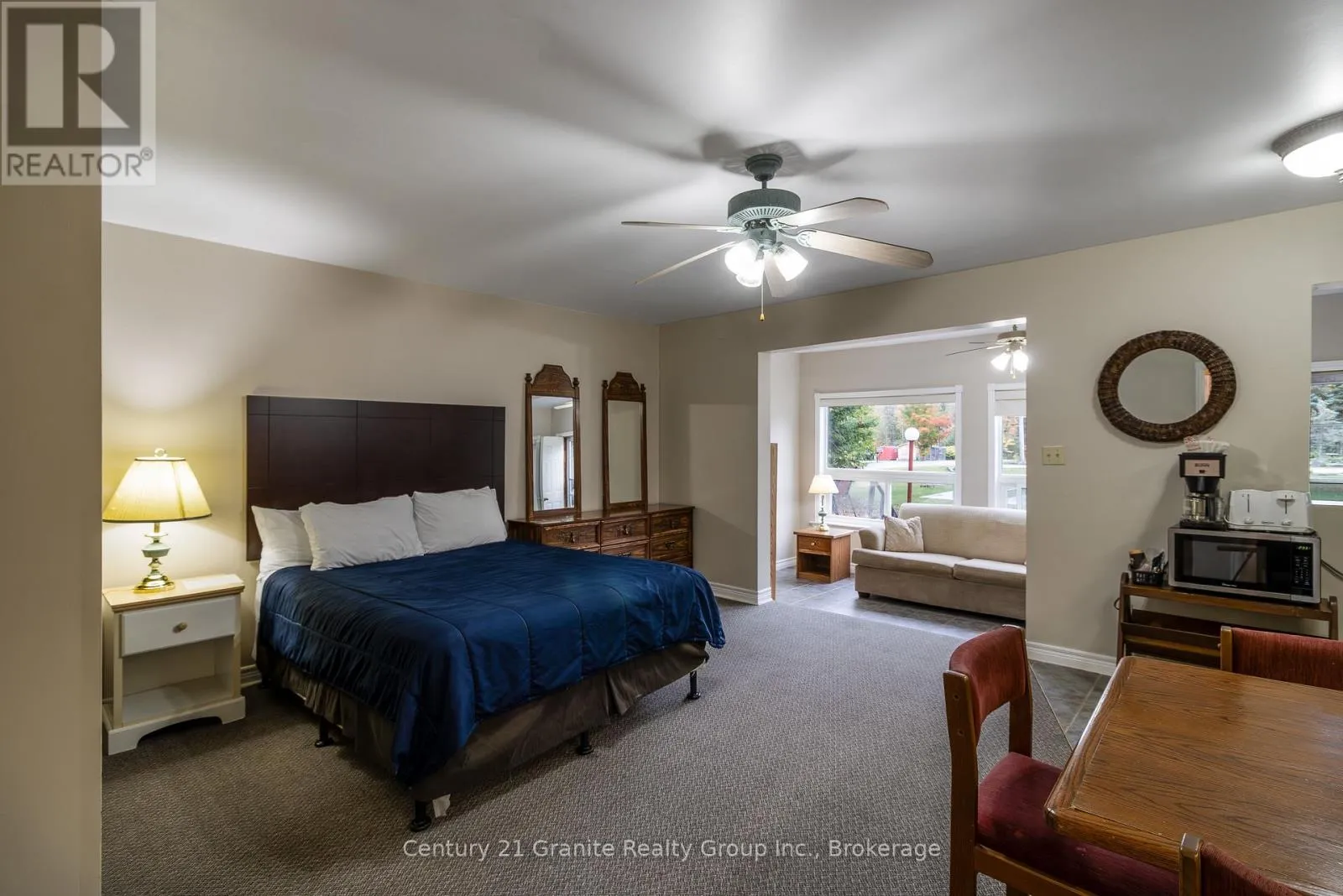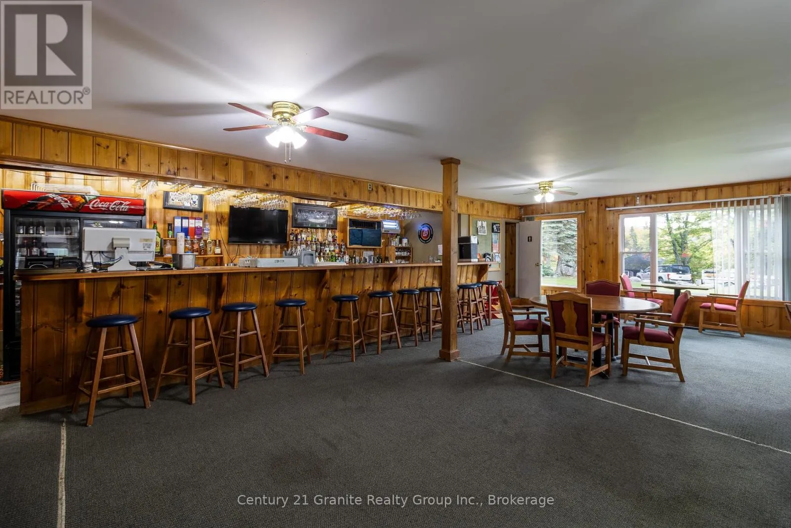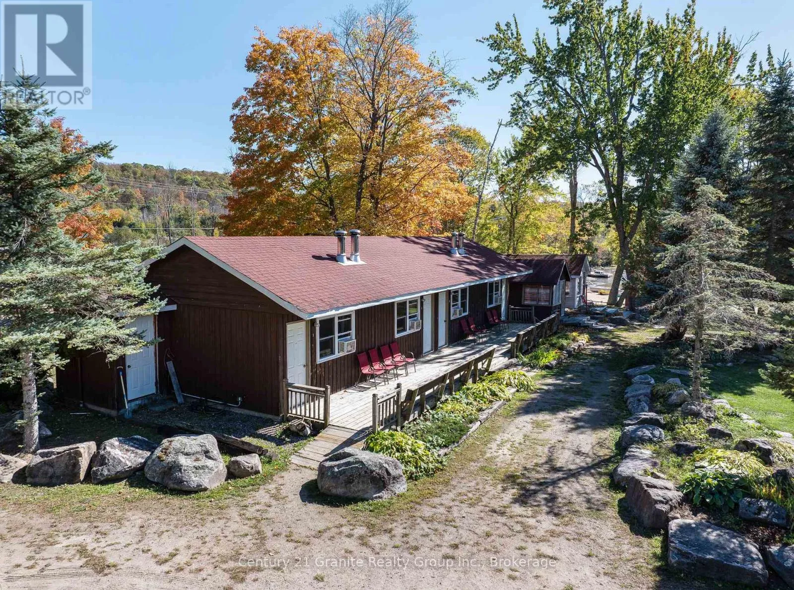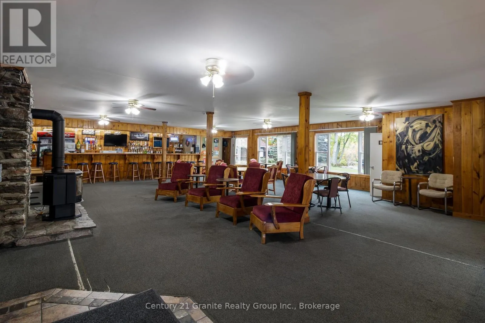 Cross Streets: Highway 35 and Red Umbrella Road. ** Directions: Highway 35 to Red Umbrella Road. Welcome to the Red Umbrella Inn, a cherished 4-season resort on Twelve Mile Lake, part of the sought-after 3-lake chain with Little and Big Boshkung. Sitting on 3.5 acres of level, pie-shaped land with stunning southern and western exposures, this property showcases unforgettable sunsets and a private sand beach tucked into a sheltered bay. A large multi-slip dock at the waters edge provides excellent access for boating, fishing, and enjoying all that this pristine lake chain offers. The Main Inn features a chefs kitchen, a BBQ area on the lakeside patio and on the kitchen deck, plus an inviting lounge with a full bar. The completely renovated dining room is complete with an open stage area to host performers and offers breathtaking lake views, with seating extending to the licensed lakeside patio and grounds, making it an ideal venue for weddings, retreats, and entertainment events. Accommodations are varied, providing flexibility for guests and future opportunities for growth: 5 comfortable rooms above the Inn, 4 lakeview motel-style units, 2 cozy cottages, 3 lakeside cottages (2 with efficiency layouts), 4 additional efficiency suites & a renovated owners quarters within the Inn. Since 1929, the Red Umbrella Inn has been known for clean, comfortable stays, delicious dining, and exemplary service. This is a rare opportunity to own a piece of Haliburton Highlands history perfect for those seeking a lifestyle change, a thriving business investment, or the potential for a private family compound. An additional adjacent lot across the road is included, currently used for parking but offering excellent highway frontage on Hwy 35. All just minutes north of Minden, in the heart of cottage country and year-round tourist activity. (id:27476)