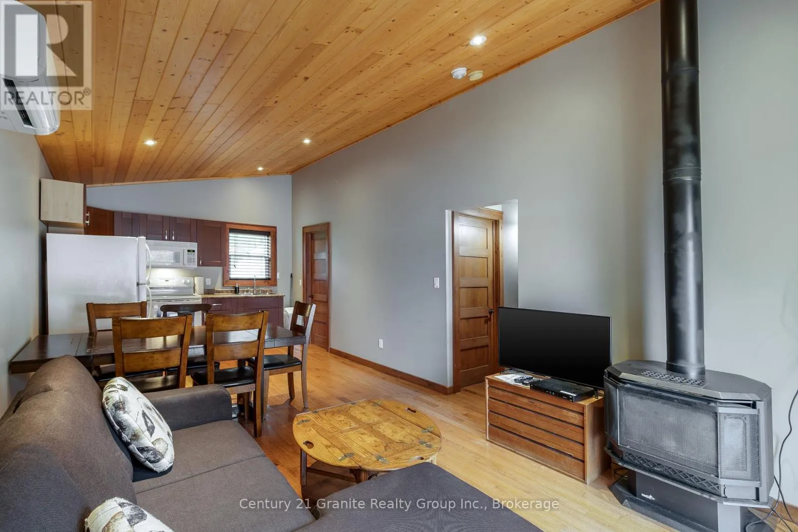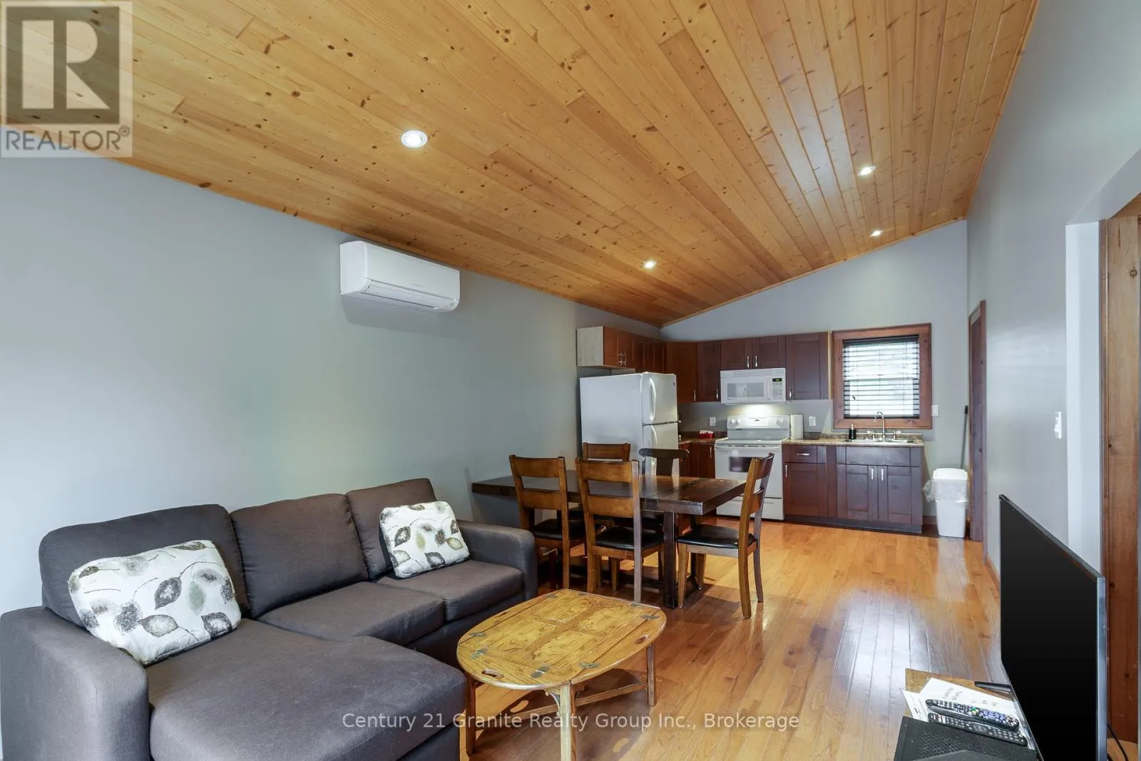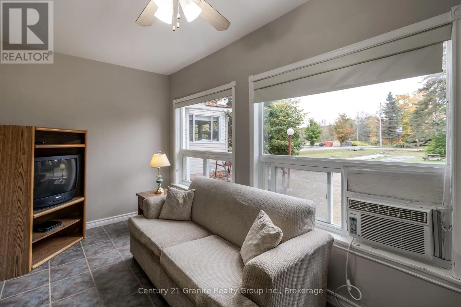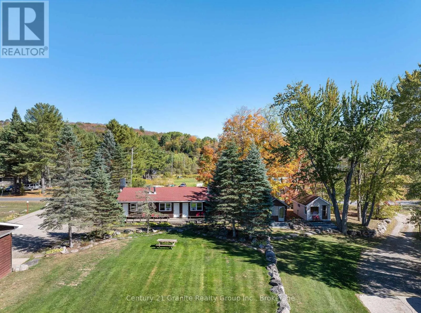 Cross Streets: Highway 35 and Red Umbrella Road. ** Directions: Highway 35 to Red Umbrella Road. Welcome to the Red Umbrella Inn, a cherished 4-season resort on Twelve Mile Lake, part of the sought-after 3-lake chain with Little and Big Boshkung. Sitting on 3.5 acres of level, pie-shaped land with stunning southern and western exposures, this property showcases unforgettable sunsets and a private sand beach tucked into a sheltered bay. A large multi-slip dock at the waters edge provides excellent access for boating, fishing, and enjoying all that this pristine lake chain offers. The Main Inn features a chefs kitchen, a BBQ area on the lakeside patio and on the kitchen deck, plus an inviting lounge with a full bar. The completely renovated dining room is complete with an open stage area to host performers and offers breathtaking lake views, with seating extending to the licensed lakeside patio and grounds, making it an ideal venue for weddings, retreats, and entertainment events. Accommodations are varied, providing flexibility for guests and future opportunities for growth: 5 comfortable rooms above the Inn, 4 lakeview motel-style units, 2 cozy cottages, 3 lakeside cottages (2 with efficiency layouts), 4 additional efficiency suites & a renovated owners quarters within the Inn. Since 1929, the Red Umbrella Inn has been known for clean, comfortable stays, delicious dining, and exemplary service. This is a rare opportunity to own a piece of Haliburton Highlands history perfect for those seeking a lifestyle change, a thriving business investment, or the potential for a private family compound. An additional adjacent lot across the road is included, currently used for parking but offering excellent highway frontage on Hwy 35. All just minutes north of Minden, in the heart of cottage country and year-round tourist activity. (id:27476)