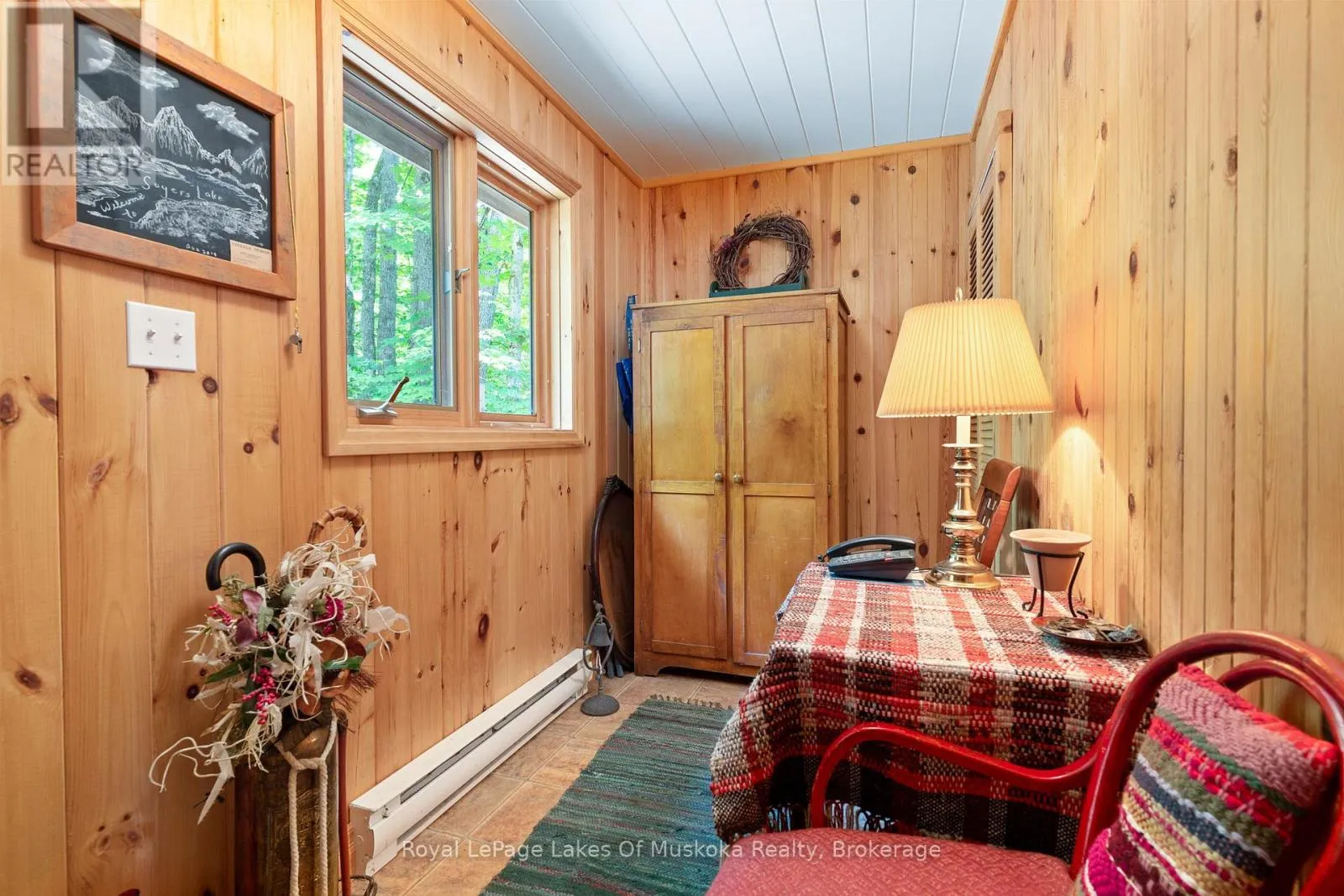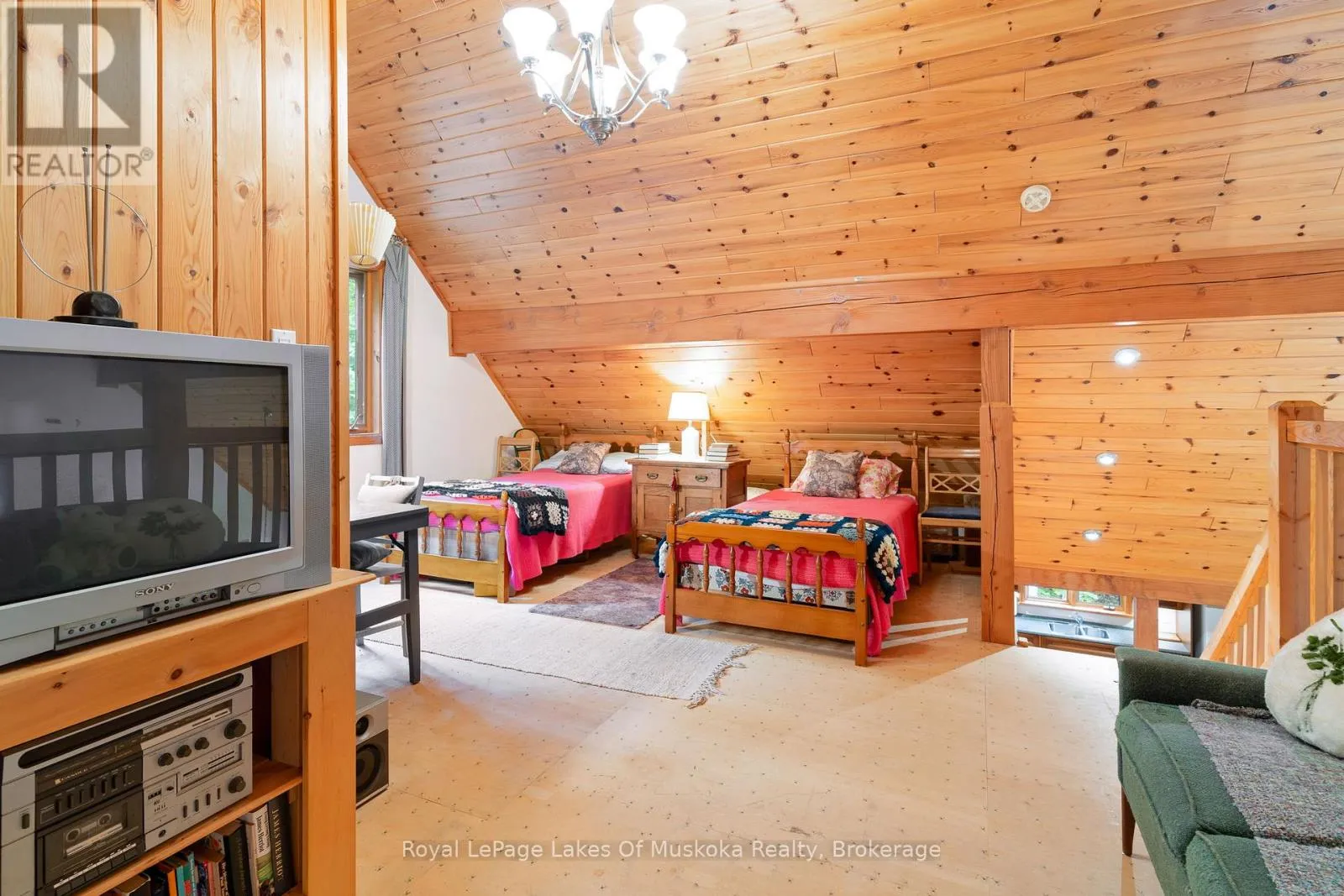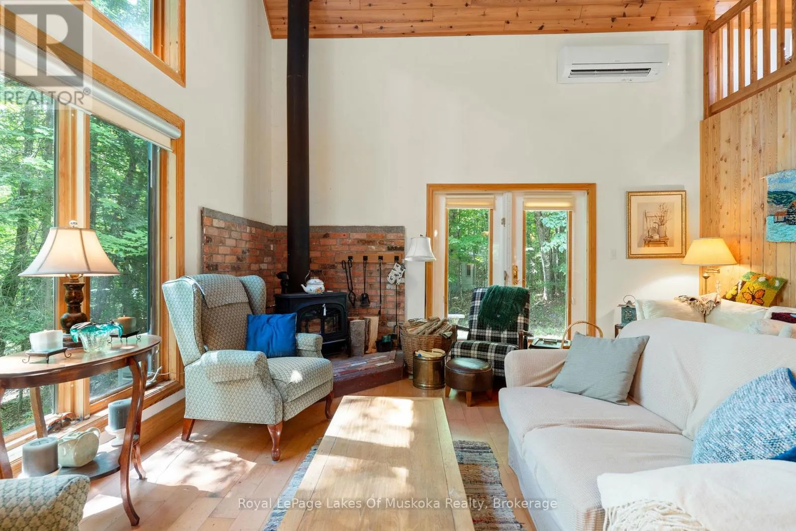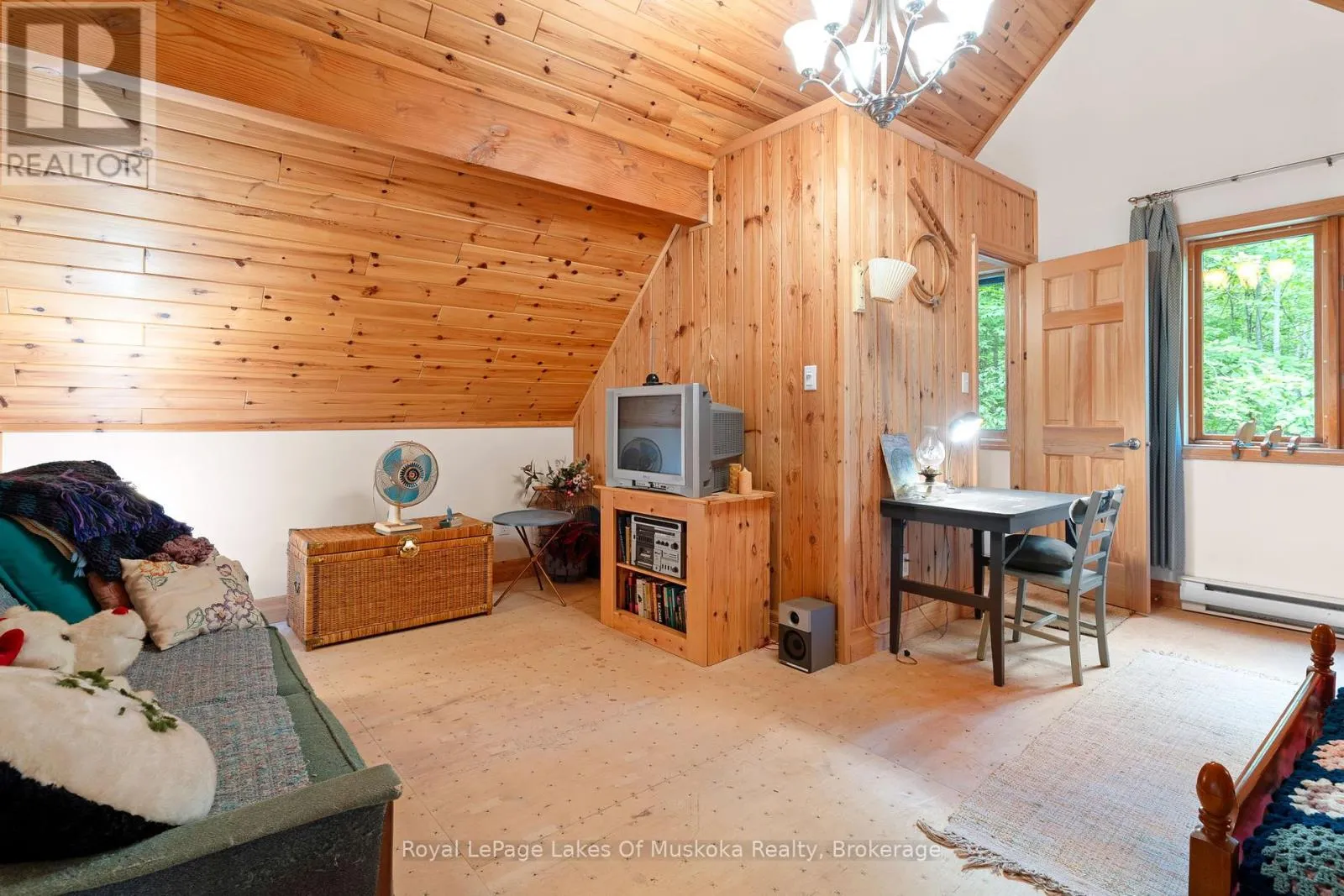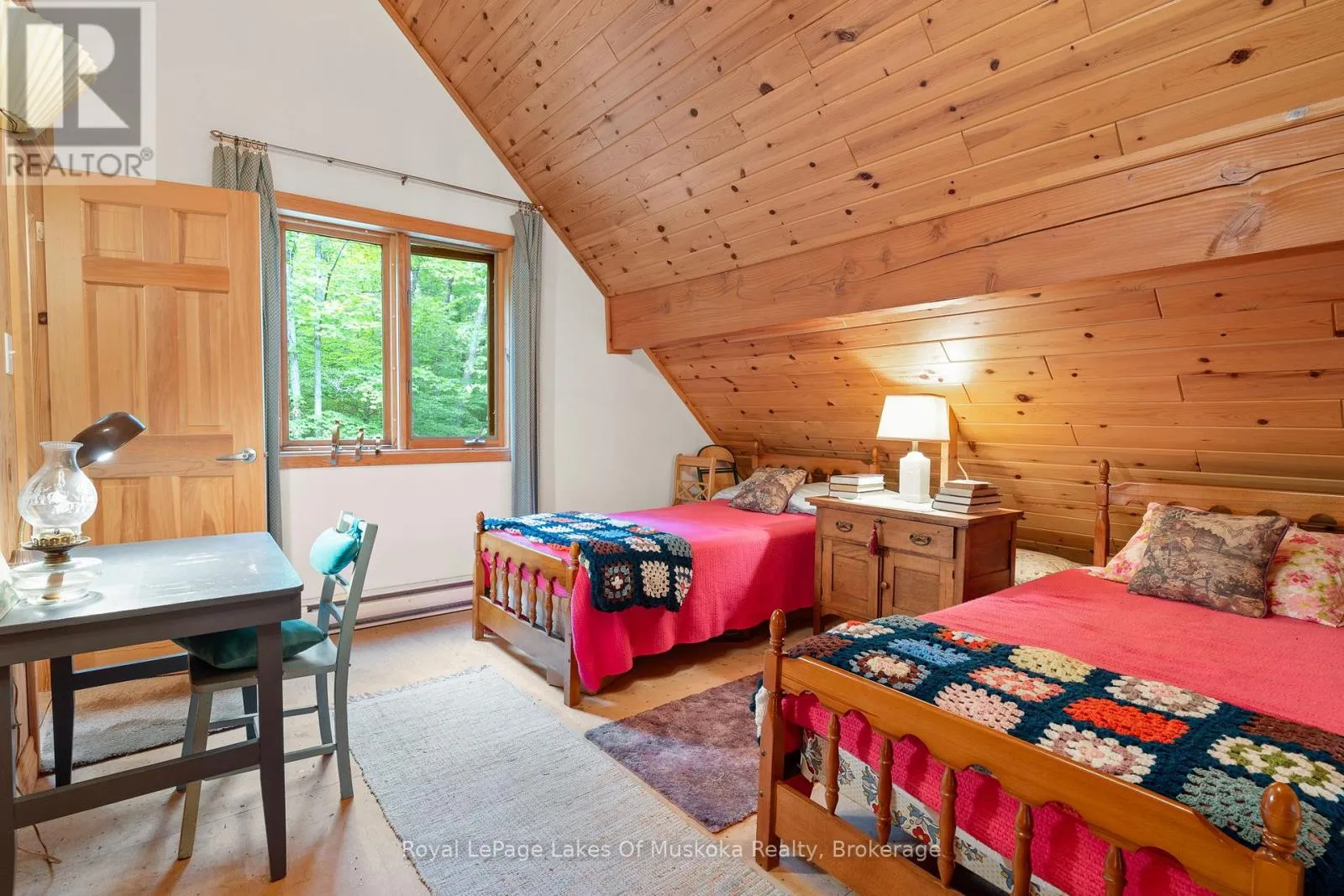 Cross Streets: Soyers Lake Road and Grace Road. ** Directions: From CR 21 take Soyers Lake Rd, about 5.5 km, stay straight onto Grace Rd. Stay on Grace for ~1 km to property on right. SOP. Surrounded by mature forests along the shores of Soyers Lake, part of Haliburton's sought after 5-lake chain, this first time offered property is move in ready. The 4-season home or cottage, is fully furnished and boasts an abundance of charm and character with its cathedral ceilings in the living room and wood finishings throughout many areas. With over 1300 sq. ft. of space, this 2-bedroom + bedroom loft and 2-bath, has lots of room for the whole family. Stay warm all winter long in front of the woodstove or use the heat pump that also provides cooling on hot summer days. Enjoy the privacy of a 4+ acre lot and 265 ft of shoreline all to yourself. Situated less than 20 minutes from Haliburton by car or why not take the boat out for a cruise right into town! The 16' x 12' storage shed is perfect for storing equipment or toys and there is even a usable 10' x 10' bunkie just across the property. A new pathway down to the waterfront recently constructed where there is plenty of room for a new dock for all day fun in the sun. A brand new deck off of the great room is perfect for enjoying a morning coffee or a late afternoon beverage. Absolute bliss! Book your private showing today! (id:27476)