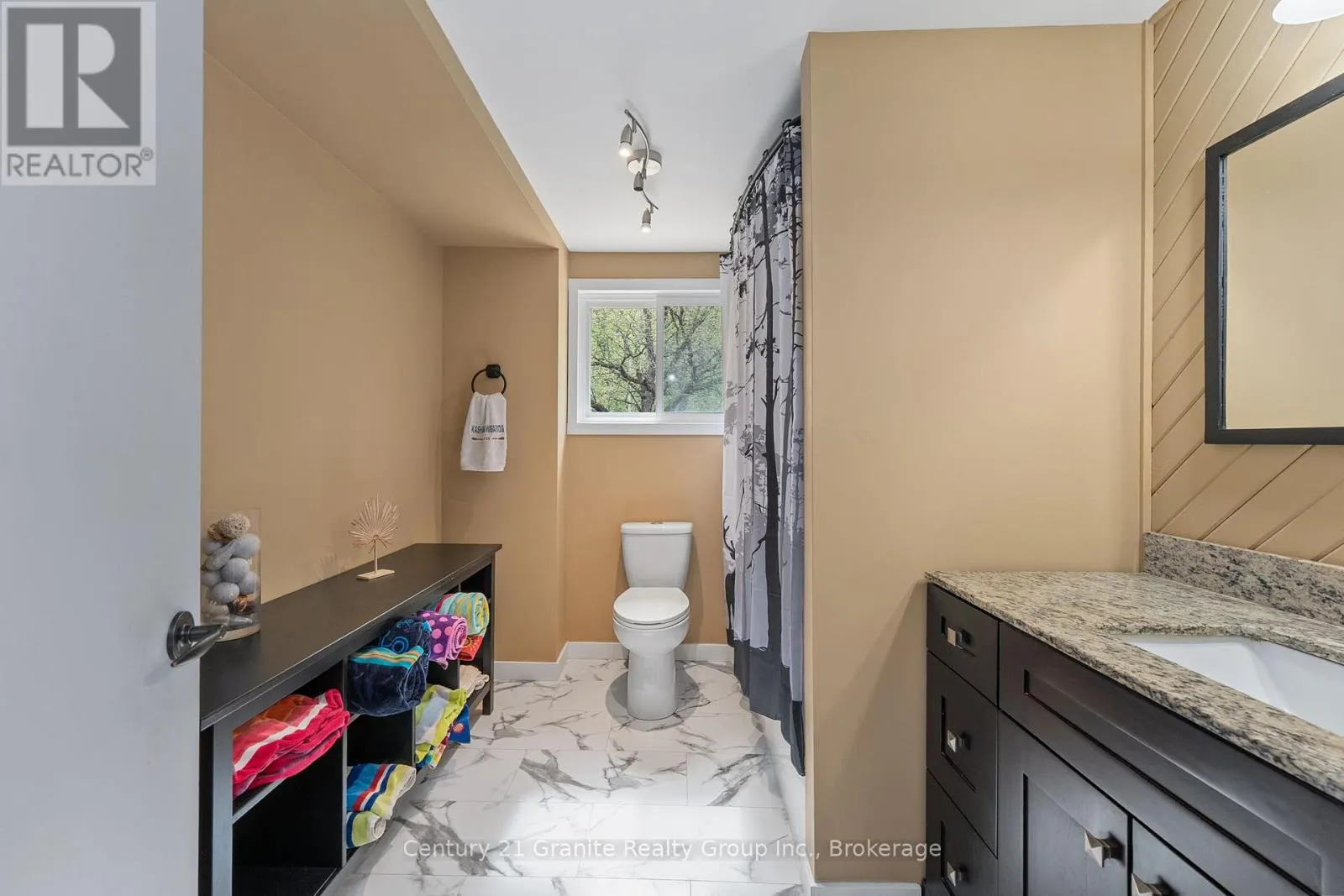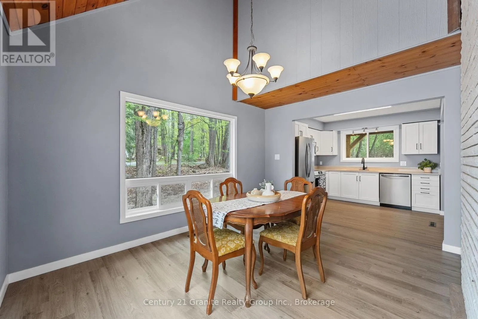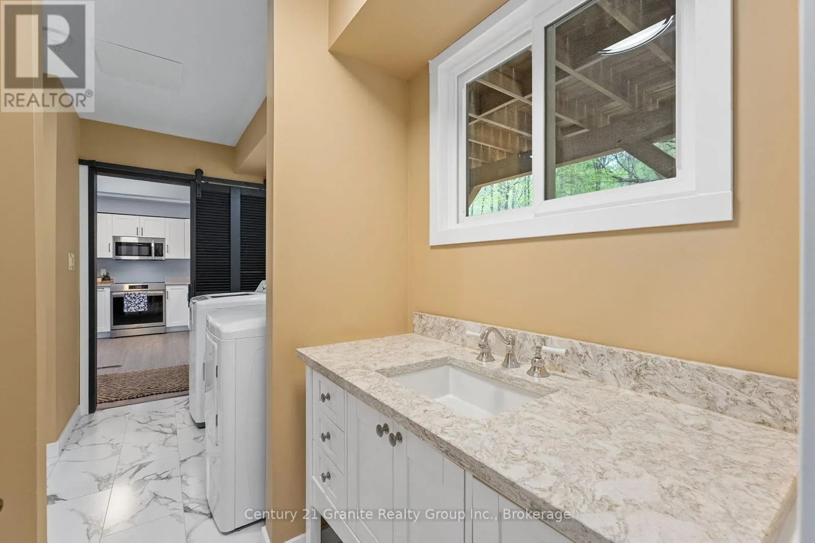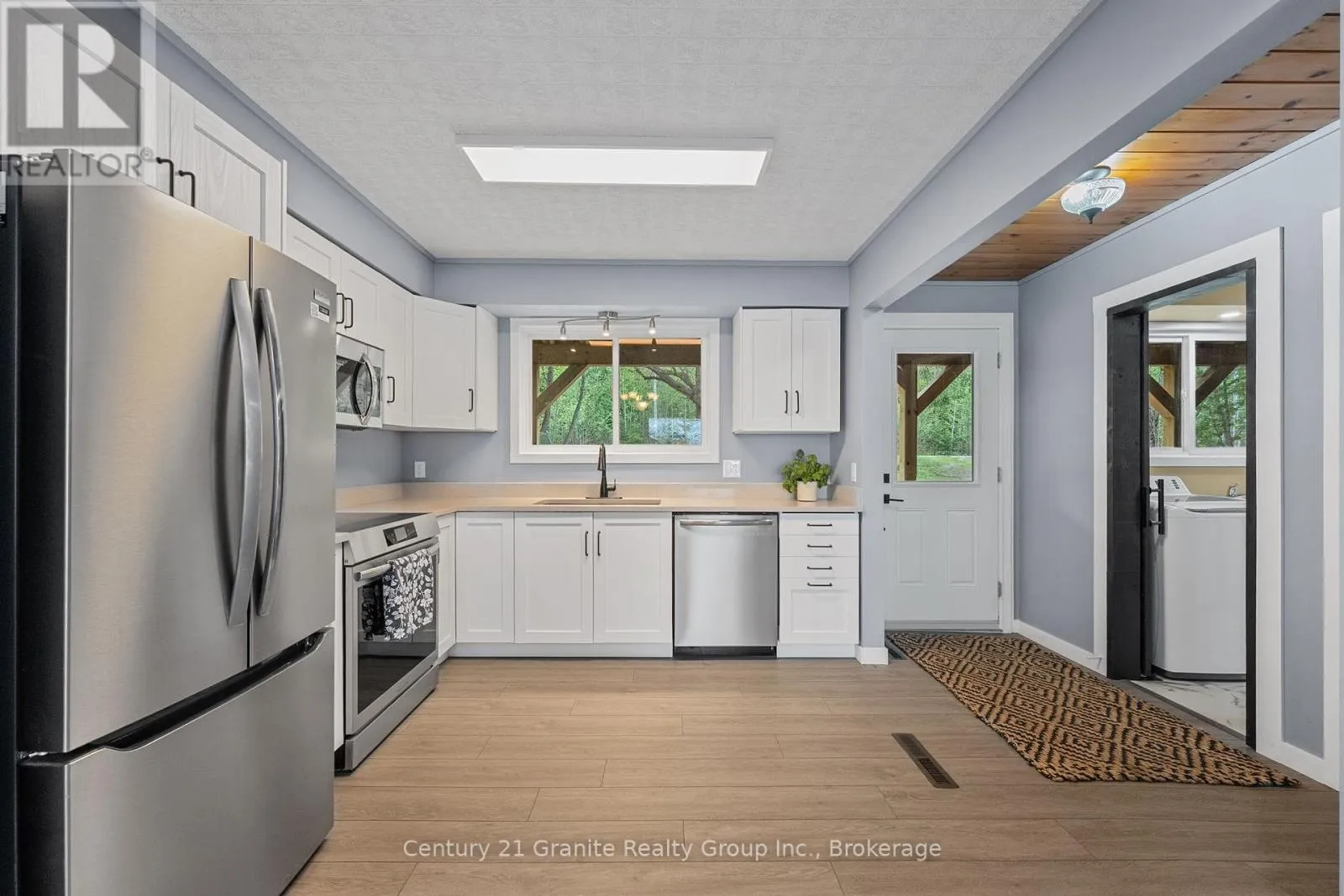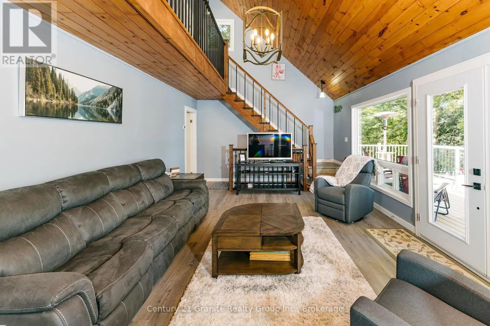 Cross Streets: Gelert Rd 1. ** Directions: Gelert Rd 1 to Kashagawigamog Lake Rd. Kashagawigamog Lake 4-Season Cottage with Sunset Views & Sandy Shoreline! Welcome to your year-round getaway on the shores of stunning Lake Kashagawigamog! This fully renovated, move-in ready cottage checks all the boxes new kitchen, bathrooms, windows, flooring, decks, propane furnace, foundation, insulation, and fresh paint throughout. Located on a township-maintained road with west-facing views, you'll enjoy incredible sunsets and a hard-packed sand shoreline perfect for swimming, sunbathing, or just relaxing by the water. The main floor offers a bright, open-concept kitchen and dining area that flows into a spacious great room, featuring a floor-to-ceiling brick fireplace and walkout to a 480 sq. ft. lakeside deck. Its ideal for outdoor meals, morning coffee, or keeping an eye on the kiddos at the waters edge. There's also a convenient main-floor bedroom, a stylish 3-piece bath, and laundry area. Upstairs, you'll find two large bedrooms both with walkouts to private balconies and a full 4-piece bath. Enjoy over 40 miles of boating across the five-lake chain Kashagawigamog, Soyers, Canning, Grass, and Head Lake. Cruise to Bonnie View for lunch on the patio, grab a burger and ice cream at Kates Burgers, or boat into Haliburton Village for groceries, restaurants, and shops. Whether you're after peaceful mornings by the lake or afternoons filled with adventure, this cottage is a fantastic place to relax, recharge, and make memories year-round. (id:27476)