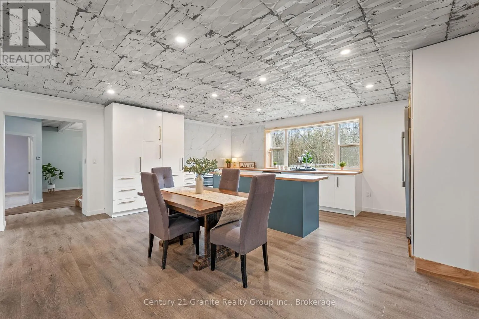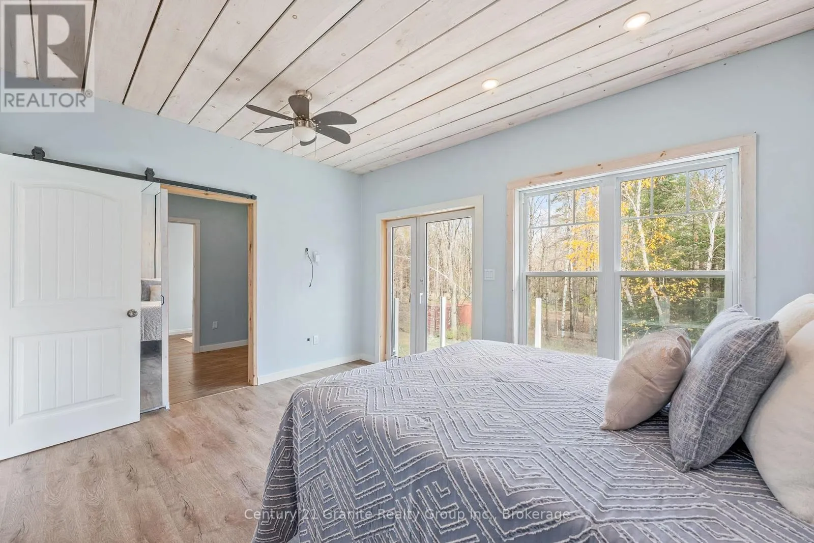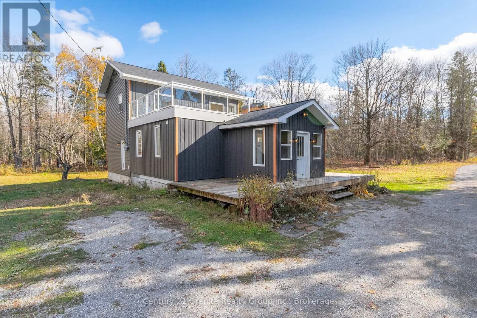 Cross Streets: HWY 35 & COUNTY RD 121. ** Directions: HIGHWAY 35 TO COUNTY ROAD 121 & LEFT ON RICE ROAD TO SIGN ON PROPERTY. Peaceful country living just minutes from town! Nestled on a beautiful 5-acre property surrounded by mature trees, this inviting home combines comfort, privacy, and convenience. Offering 1,920 sq ft of living space, it features 4 bedrooms and 2 bathrooms - ideal for families, downsizers, or weekend getaways. The main level boasts a bright open layout with warm wood accents and plenty of natural light. The kitchen offers ample counter space and cabinetry, opening to the dining and living areas for easy entertaining. Two bedrooms on this level provide flexibility for guests, children, or a home office, along with a full bathroom and laundry room. Upstairs, the primary suite serves as a peaceful retreat complete with a walk-in closet, private balcony, and soaker-tub ensuite, while the second upper bedroom adds extra space for family or visitors. A large rooftop porch with a hot tub offers a relaxing space to unwind and take in the beautiful country views - perfect for enjoying quiet mornings or star-filled nights. Outdoor enthusiasts will love the direct access to local trail systems - Rice Road connects right into the trail, making this an unbeatable location for ATV riders, snowmobilers, and off-road adventurers. Plus, it's just around the corner from the Minden Off-Road Park, adding even more recreational possibilities right at your doorstep. Outside, the property features a sprawling cleared area surrounded by mature forest - perfect for bonfires, kids' play, hosting gatherings, or simply soaking in the open country air. Whether you're exploring the woods or relaxing in the sunshine, this space offers endless ways to enjoy the outdoors. With quick access to Highway 35, schools, and nearby amenities, this property offers the serenity of rural living without sacrificing convenience. (id:27476)