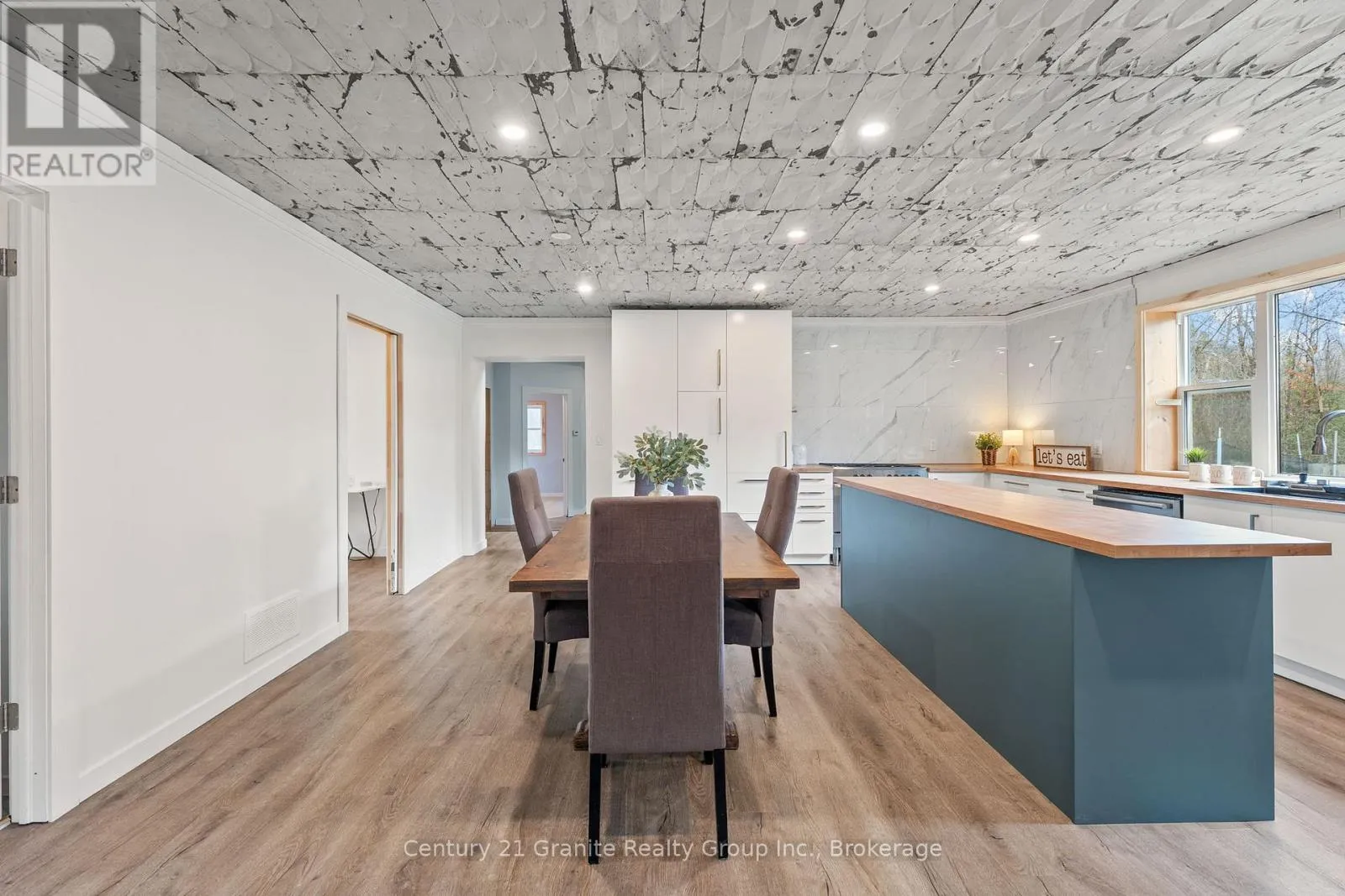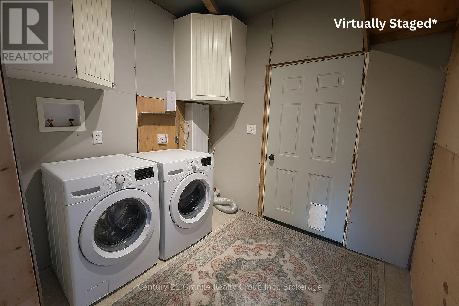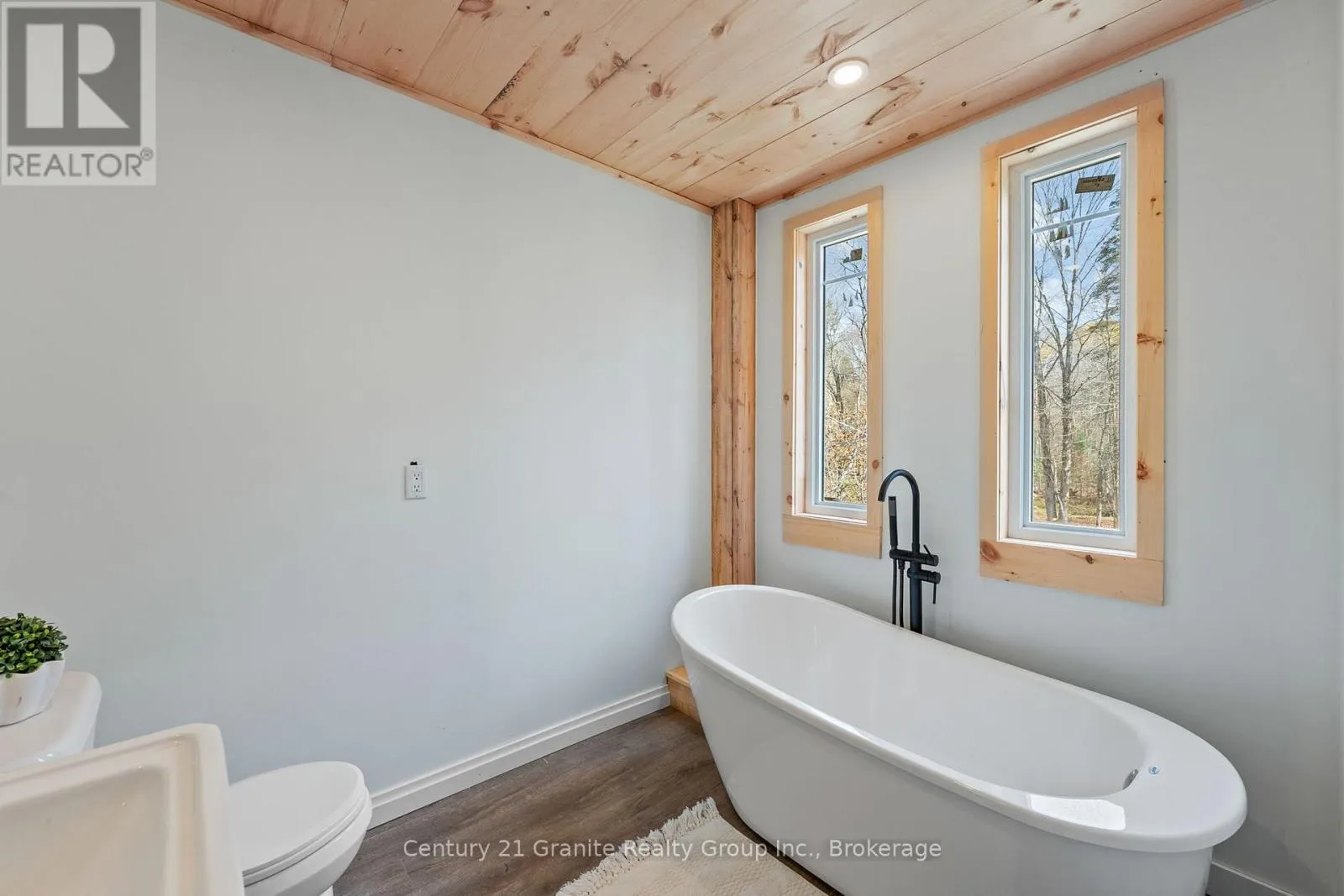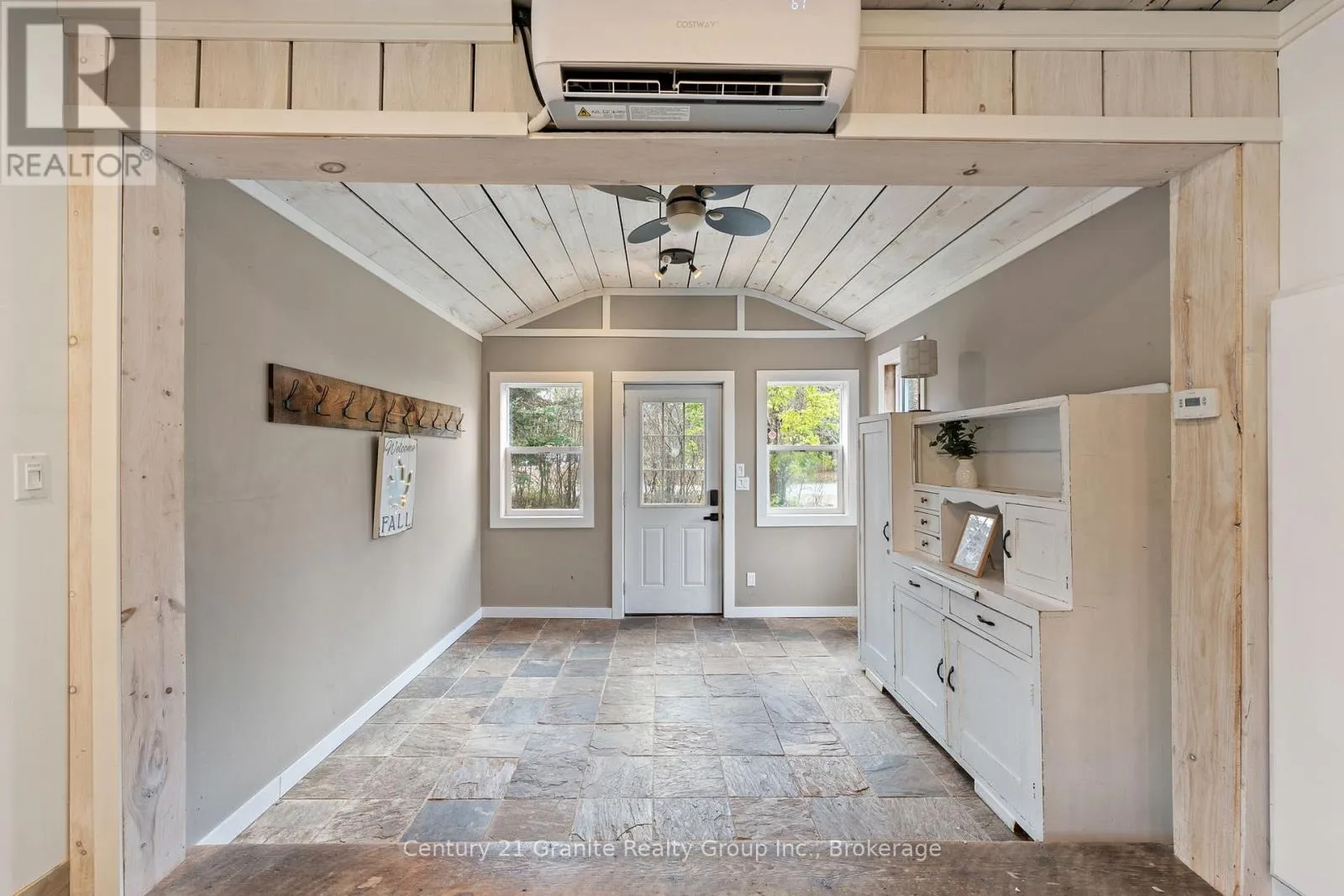 Cross Streets: HWY 35 & COUNTY RD 121. ** Directions: HIGHWAY 35 TO COUNTY ROAD 121 & LEFT ON RICE ROAD TO SIGN ON PROPERTY. Peaceful country living just minutes from town! Nestled on a beautiful 5-acre property surrounded by mature trees, this inviting home combines comfort, privacy, and convenience. Offering 1,920 sq ft of living space, it features 4 bedrooms and 2 bathrooms - ideal for families, downsizers, or weekend getaways. The main level boasts a bright open layout with warm wood accents and plenty of natural light. The kitchen offers ample counter space and cabinetry, opening to the dining and living areas for easy entertaining. Two bedrooms on this level provide flexibility for guests, children, or a home office, along with a full bathroom and laundry room. Upstairs, the primary suite serves as a peaceful retreat complete with a walk-in closet, private balcony, and soaker-tub ensuite, while the second upper bedroom adds extra space for family or visitors. A large rooftop porch with a hot tub offers a relaxing space to unwind and take in the beautiful country views - perfect for enjoying quiet mornings or star-filled nights. Outdoor enthusiasts will love the direct access to local trail systems - Rice Road connects right into the trail, making this an unbeatable location for ATV riders, snowmobilers, and off-road adventurers. Plus, it's just around the corner from the Minden Off-Road Park, adding even more recreational possibilities right at your doorstep. Outside, the property features a sprawling cleared area surrounded by mature forest - perfect for bonfires, kids' play, hosting gatherings, or simply soaking in the open country air. Whether you're exploring the woods or relaxing in the sunshine, this space offers endless ways to enjoy the outdoors. With quick access to Highway 35, schools, and nearby amenities, this property offers the serenity of rural living without sacrificing convenience. (id:27476)
