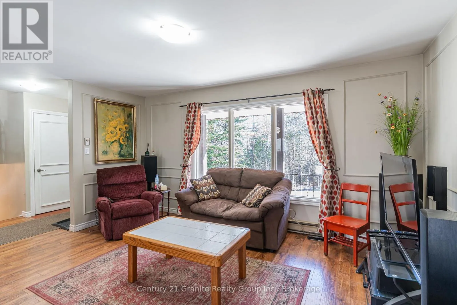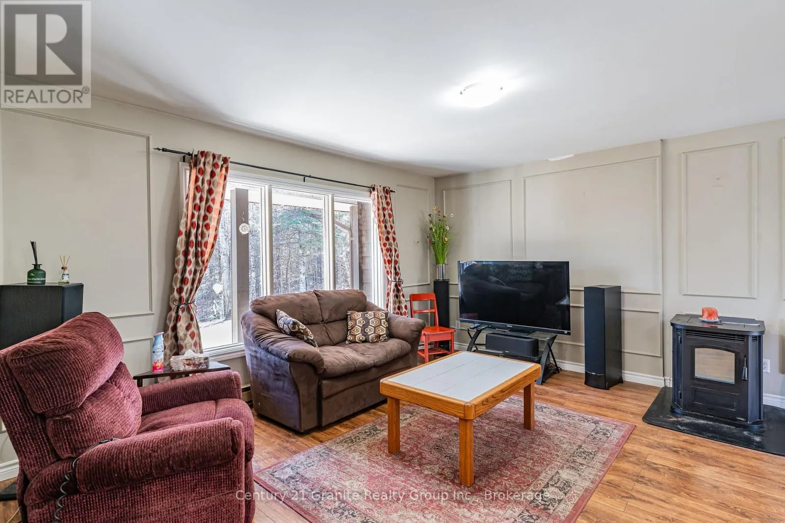 Cross Streets: Buller Rd. ** Directions: Hwy 35 to Miner's Bay, turn on Clear Lake Rd, follow to signs on property. Come check out this 3 bdrm/2 bath home on 6 acres south of Minden! The open concept main living area features a large kitchen, with pantry space and an island for informal meals. A sliding door leads to a back deck and the large screened porch, with electricity, perfect for 3 season entertaining. Back inside, the living and dining area complete the main level. Up the half level you'll find 2 large bedrooms and a 4 piece bath. On the lower level is another bedroom and bath, as well as an extra room for crafts/office etc, which contains the laundry. A new propane furnace in 2017 keeps you comfortable. An attached garage with workbench and cupboards holds your tools, while a garden shed and storage shed, provide extra space to putter. Old trails on the property are ready for you to clean up and enjoy. Just down the road is a public access to Clear Lake, and of course there are lots of lakes in the area and boat launches nearby in addition to Crown Land. (id:27476)