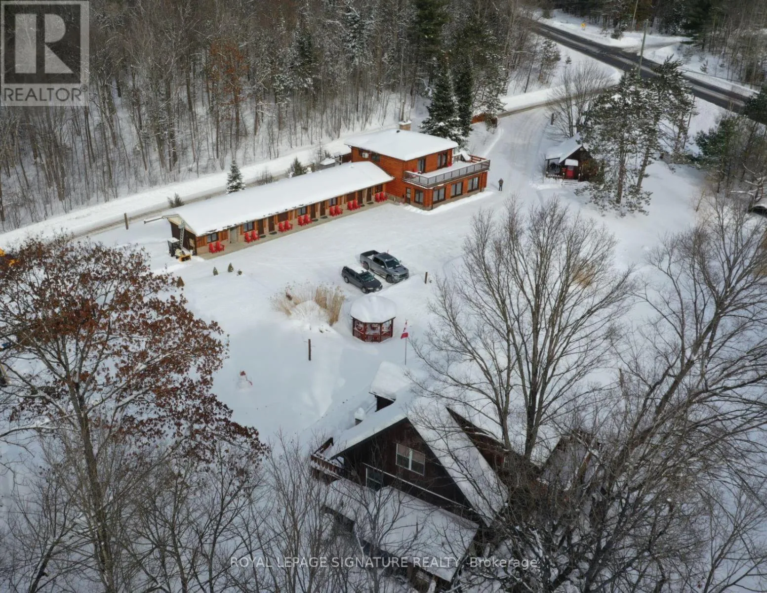 Omagaki / HWY 35 Turnkey Investment **7 ROOMS + 2 CABINS + LOFT + CLUBHOUSE + GREENHOUSE** Welcome to The Highlands Motel and Lodge, an exceptional investment opportunity that beautifully blends tranquility and adventure, attracting a diverse range of guests. Established revenue stream with an annual revenue of $200,000, this thriving hospitality business offers immediate cash flow with generations of return guests, making it a sound investment from day one. Situated on nearly 4 acres, additional cabins, hot tub, pool could provide significant opportunities to enhance the guest experience and increase revenue. This property is carefully landscaped and designed with quality finishes, German engineered doors and windows making it turnkey to operate and maintain, making it an attractive choice for both new and experienced investors. Just a short drive to Minden, Haliburton, the renowned Haliburton School of Art and Design, Sir Sam's Ski and Ride and endless outdoor parks and attractions make this property ideally located for guests seeking cultural experiences and year round outdoor adventures. The lodge offers breathtaking views of the surrounding nature, steps to 12 Mile Lake and boat launch, appealing to guests looking for a traditional Canadian getaway. The clean, comfortable rooms are designed to provide a relaxing atmosphere after a day of exploration. The combination of rooms, cabins, and a clubhouse caters to various guest demographics, from families to couples, increasing occupancy rates throughout the year. This is a rare opportunity to invest in a premier hospitality destination with established revenue, significant growth potential, and a prime location. Fully stocked and maintained for a smooth transition. Adventure. It's in our nature. (id:27476)