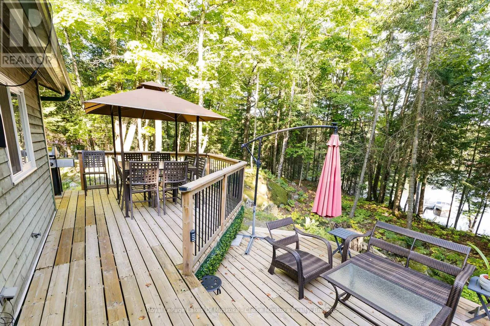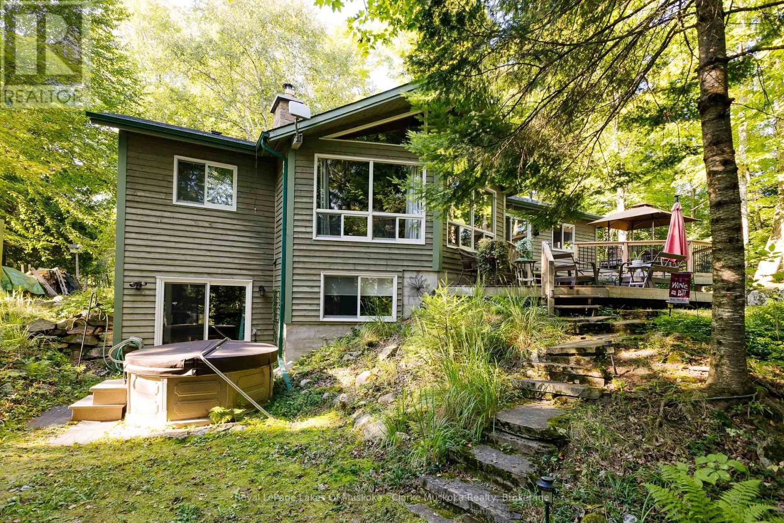 Cross Streets: Blairhampton Rd and CR121. ** Directions: Hwy 121 to Blairhampton Rd. Right on Between Lakes Trail. Keep Right and follow to sign on property. Experience the ultimate in lakeside living at this serene cottage retreat on Soyers Lake, part of a picturesque 5-lake chain offering miles of boating. This meticulously maintained, four-season home provides privacy and tranquility, situated at the end of a quiet road with a level lot and a gentle slope to the water. Enjoy stunning southeast-facing views and the convenience of being close to marinas and the charming town of Haliburton. The property features 3 Beds + 1 Bedroom, 2 Bathrooms, open-concept design, cathedral ceilings and floor-to-ceiling windows that creates an airy, light-filled environment. The large living room frames the lake view and has a beautiful fireplace creating a comfortable and relaxed setting. The spacious dining room opens up to the outdoor living area. Hardwood floors throughout the upstairs hint at the quality and care of this spacious home. The large walkout basement offers a generous recreation room with in-law suite potential or additional living space, perfect for extended family or guests. The expansive deck is ideal for entertaining or relaxing while soaking in the serene views through the trees and gorgeous rock outcroppings. The gentle slope to the water, with private dock, makes it easy to enjoy swimming and water activities. Enjoy peace and tranquility in this secluded setting. An impressive 24/24 detached garage/ workshop with hydro offers lots of opportunities and convenience. Gather around the firepit amongst the perennial gardens, one of the many outdoor recreation zones. This exceptional property combines the best of nature and modern living, making it perfect for family getaways or year-round residence. Don't miss the opportunity to own this lakeside gem on sought after Soyers Lake. Schedule your private tour today and experience the serene beauty and unmatched privacy of this Haliburton retreat! (id:27476)