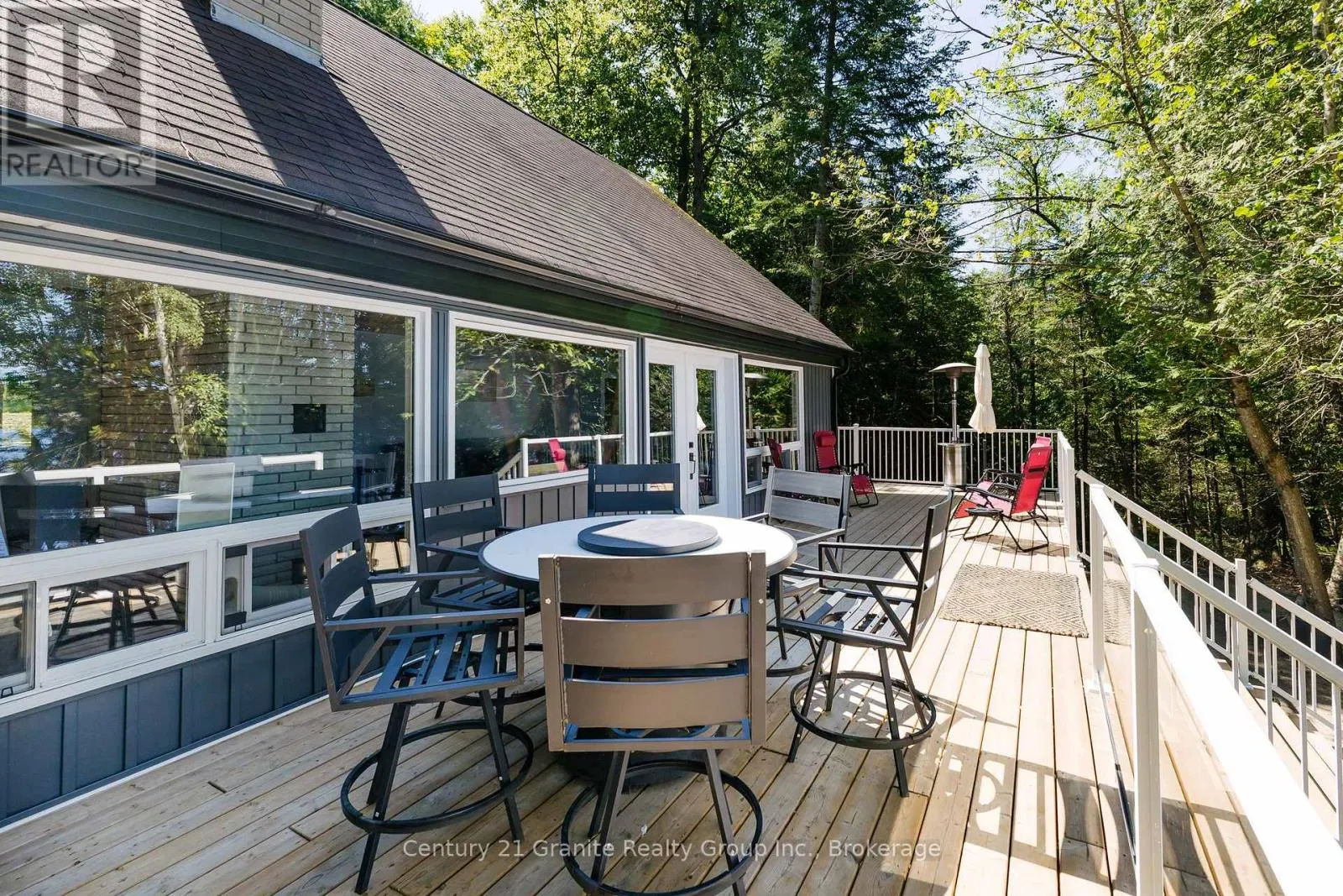 Cross Streets: Gelert Rd 1. ** Directions: Gelert Rd 1 to Kashagawigamog Lake Rd. There is a rare kind of freedom that comes with owning a home base on Lake Kashagawigamog, where the day doesn't just end-it puts on a world-class show. This 4-season retreat offers a front-row seat to legendary Western sunsets & a massive 40-mile water playground. As the only chain of its kind in the region, you have seamless boat access to 5 distinct lakes & 2 full-service marinas, ensuring that fuel, snacks, & mechanical support are always close by. Centrally located on a township road between Minden & Haliburton, this property is the ultimate "lifestyle hub" for those who want to spend their time living rather than renovating. The heavy lifting has been handled with extensive recent updates, including a crisp new kitchen, modern bathrooms, fresh siding, flooring, windows, and doors. Practicality meets peace of mind with a new furnace, updated insulation, and targeted foundation work, ensuring this cottage is as reliable as it is inviting for every season. The heart of the home is a bright, open-concept great room anchored by a floor-to-ceiling brick fireplace, where life naturally spills out onto a massive 480-square-foot lakeside deck built for big family BBQs. Just steps from the deck, the shoreline features a rare, sandy area that is a total win for kids and easy water entry. The layout is thoughtfully designed with a main-floor bedroom bath & laundry, while the upper level boasts, 4-pc bath, 2 oversized bedrooms - each with its own private balcony for quiet morning coffees. While the basement serves as a great "bonus" zone with dry storage for all your lake gear, the real living happens out on the water or the nearby greens, with 3 premier golf courses just minutes away. Your dock is the gateway to an incredible lifestyle where you can boat to Bonnie View for dinner, grab a lakeside burger, or cruise right into the Haliburton town docks for the weekly Farmers Market and local shops. (id:27476)