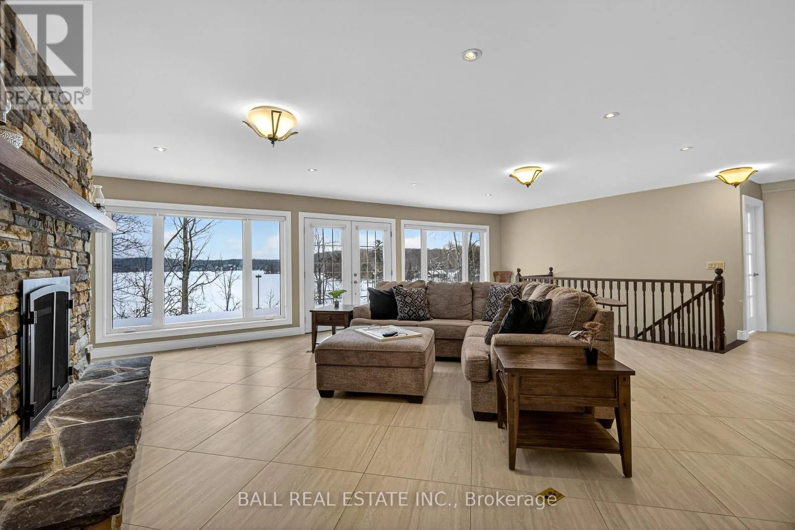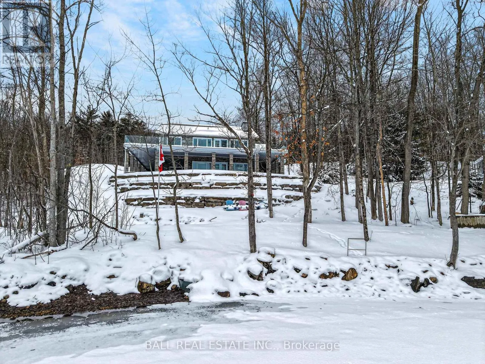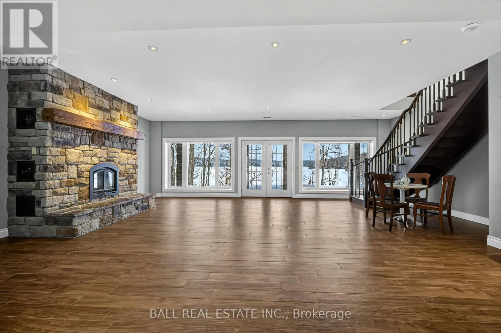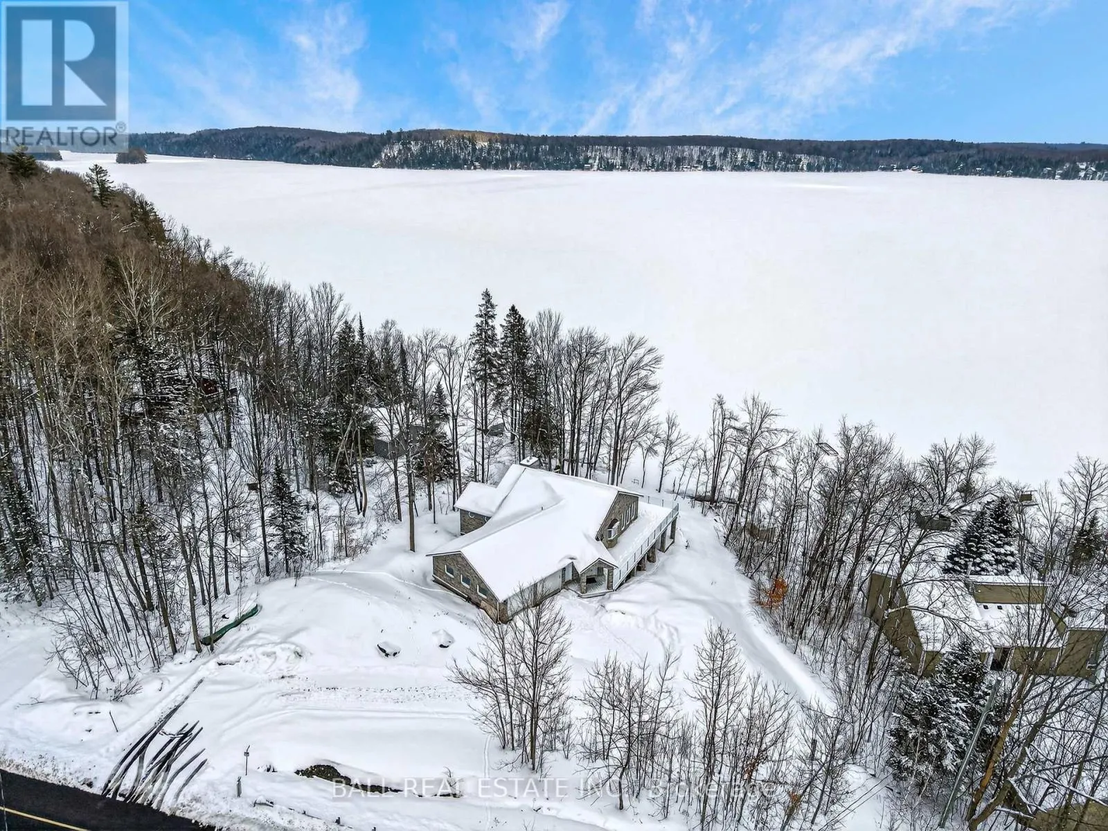 Cross Streets: North on Highway 35 to Minden. ** Directions: North on Highway 35 to Minden, just north of Minden. Welcome to 13540 Highway 35 in Minden, an exceptional newly built waterfront home set on 0.63 of an acre with coveted east exposure, offering breathtaking views of Mountain Lake-perfect for boating and waterfront enjoyment on a two-lake chain. This impressive custom-built 4-bedroom, 2-bath home offers over 3,000 sq. ft. of beautifully finished living space, perfectly designed for year-round enjoyment. Step inside to a bright, open-concept main floor featuring a stunning kitchen with granite countertops, custom cabinetry, and a large breakfast bar-perfect for entertaining. Dining area with floor to ceiling cabinets for extra storage. The spacious living room, complete with a fireplace, walks out to a spectacular lake-facing wraparound composite deck with sleek glass railings and in-deck lighting, offering breathtaking panoramic views and unforgettable sunrises. A spacious primary suite and second bedroom also feature walkouts to the deck, creating seamless indoor-outdoor living. Large 4pc bathroom with soaker tub, main floor laundry and entry to the oversized double car garage. The fully finished lower level offers incredible additional living space with a cozy, efficient wood-burning fireplace, two generous bedrooms, 5pc bathroom and multiple walkouts to a beautifully designed interlock patio. The meticulously landscaped, tiered lot showcases gabion stone walls, perennial gardens, walkways, a firepit area, and excellent shoreline access for enjoying the lake. Additional features include durable stone exterior, metal tile roof, in-floor heating throughout, a high-efficiency forced air furnace and central air conditioning. An oversized double-car garage with ample storage and private basement access adds to the home's functionality. Conveniently located just minutes from Minden, you'll enjoy easy access to dining, shopping, groceries, medical services, and more. A rare opportunity to own a stunning waterfront property where lasting family memories are made. (id:27476)