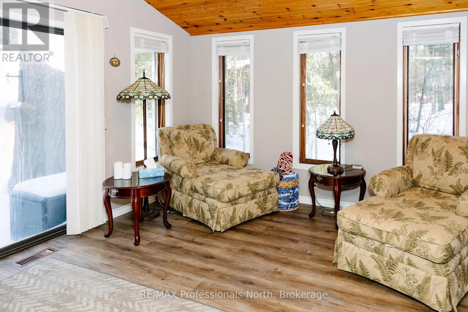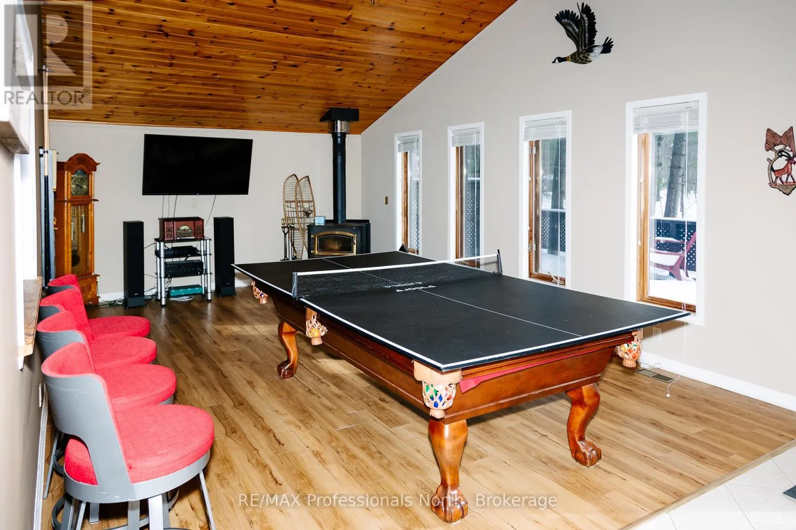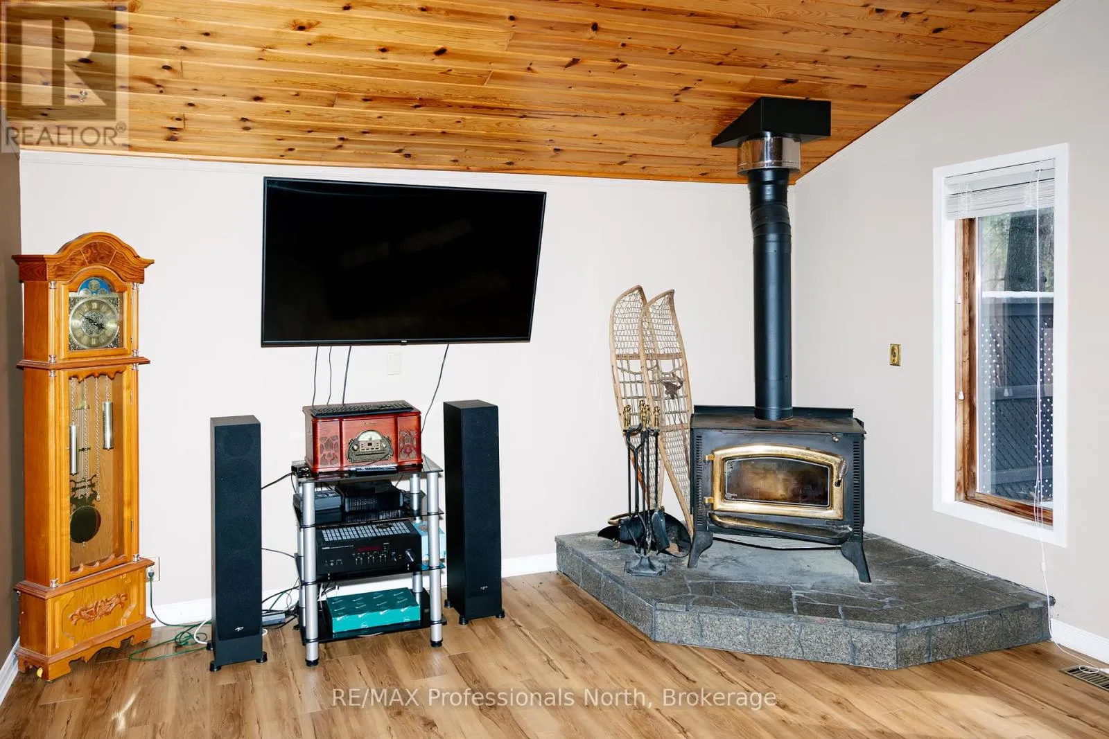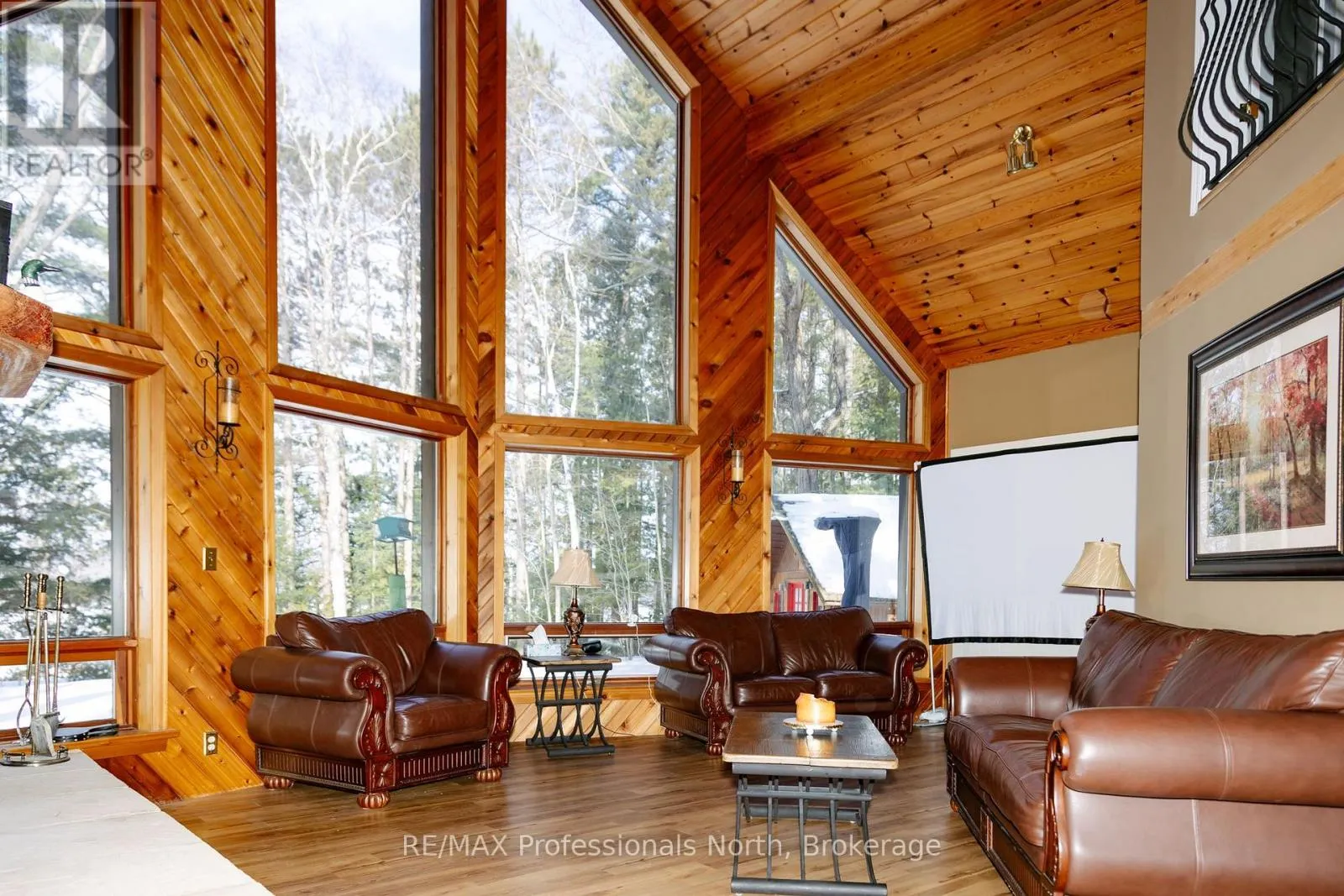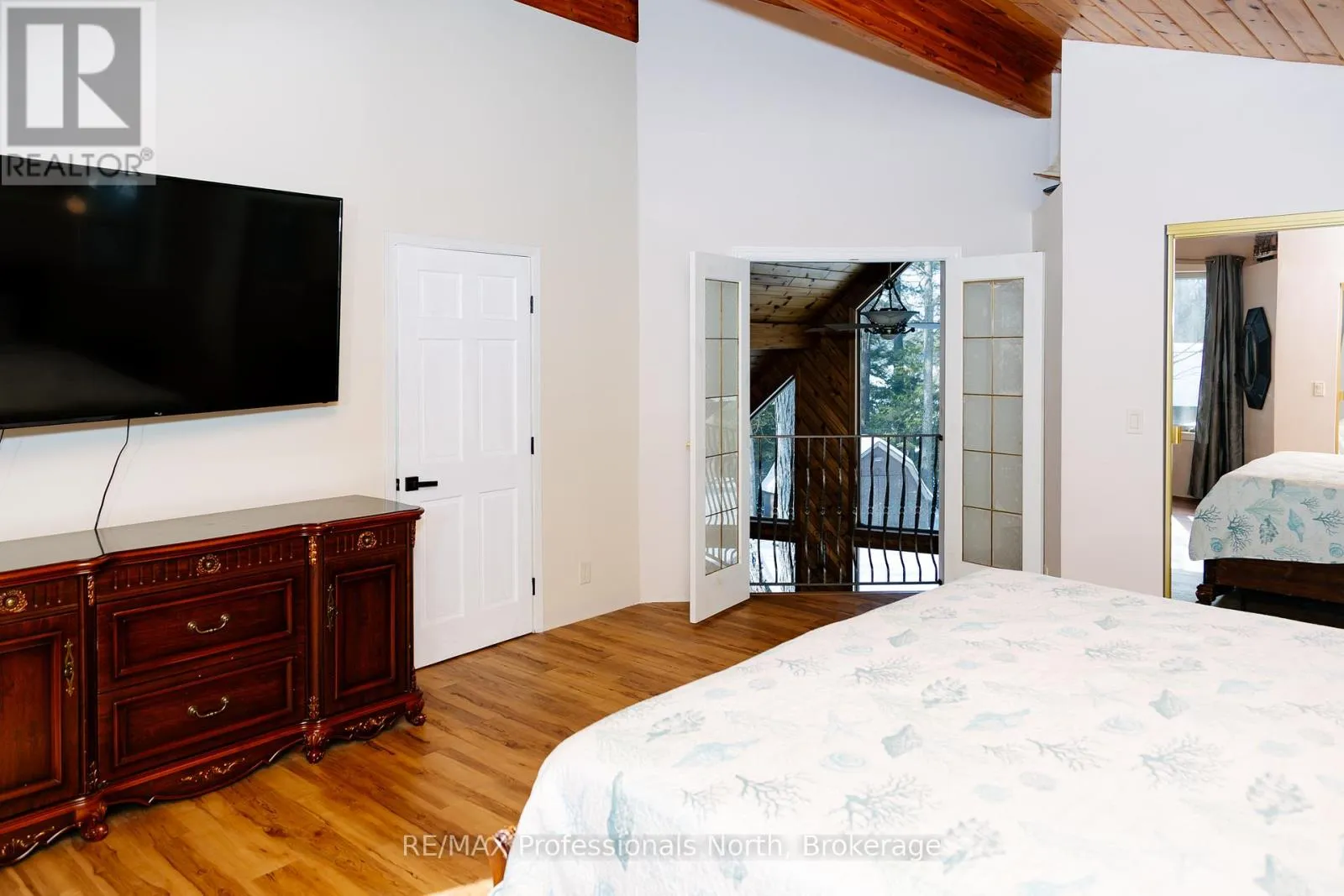 Hwy 35 Set on a private, well-treed lot between Carnarvon and Minden, this spacious home offers a quiet setting just a short walk to Twelve Mile Lake's public beach and the well-known Peppermill restaurant. Positioned back from the highway for added privacy, the property also includes an 8' right of way to the lake, providing access to a beautiful shoreline and views across the desirable three-lake chain. With approximately 2,800 sq ft of living space, the home features 4 bedrooms and 3 bathrooms, with a layout that works well for both everyday living and hosting. The open-concept living room is bright and inviting, highlighted by floor-to-ceiling windows and 20' cathedral ceilings. The second-floor primary suite overlooks this space with a Juliette balcony and includes its own private ensuite. Two wood stoves provide added warmth, while the generous dining area offers plenty of space to gather. A 48' x 24' garage with an attached woodshed adds practical storage and room for vehicles or hobbies. With a combination of privacy, lake access, and close proximity to local amenities, this property offers a flexible option for families or those looking to enjoy the Haliburton lifestyle. (id:27476)