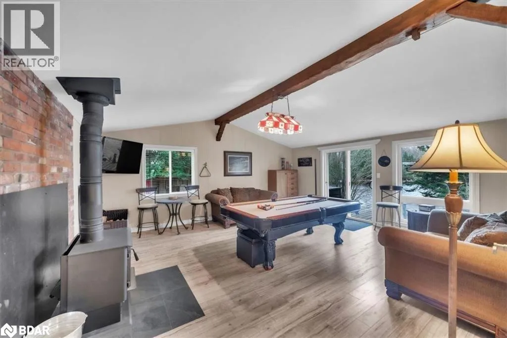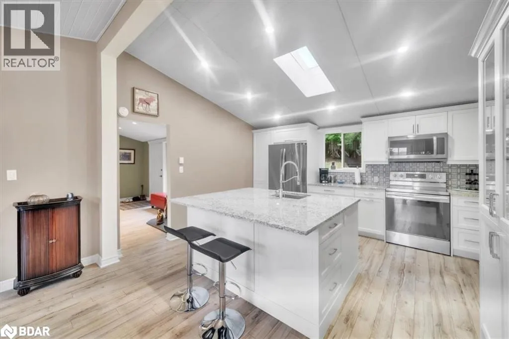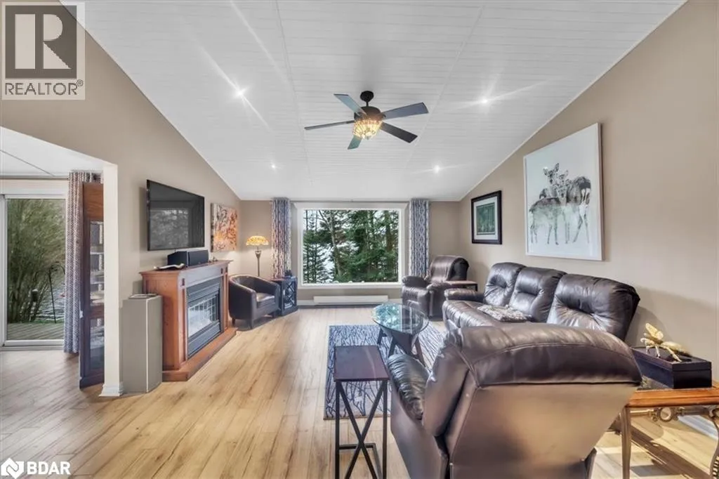Hwy 21/Blairhampton Rd (Street known also as Little Rays Lane on Google). Stunning Lakefront Viceroy Bungalow on Haliburtons Premier 5-Lake Chain - Welcome to this breathtaking 3-bedroom, 2-bathroom Viceroy bungalow offering 2,147 sq ft of beautifully renovated living space, perfectly positioned on a premium, unobstructed 150 ft lakefront lot. This home blends elegant design with the ultimate waterfront lifestyle in one of Haliburtons most coveted locations. Step inside and be captivated by the open-concept layout featuring soaring vaulted ceilings and expansive windows that frame panoramic lake views from all principal rooms. The heart of the home is a gourmet kitchen boasting quartz countertops, a large island, and a seamless flow into the formal dining room, which walks out to a lakeside deck perfect for entertaining or enjoying serene morning coffee. The Huge formal Livingroom overlooks the lake and is off the dining room - great for large family gatherings. Efficient Napoleon propane stove heats the entire house. The spacious great room is anchored by a Wood Burning Stove fireplace, creating a cozy, stylish space to relax, with another walkout to your outdoor oasis. The designer main bathroom off Master and main-floor laundry and 2nd full bath off 2nd foyer entrance, add both comfort and convenience. Outside, the professionally landscaped grounds feature lush perennial gardens, multiple decks, and a crib dock for direct water access. Driveway parks 5 cars. This rare offering sits directly on the Haliburton 5-lake chain, providing over 30 miles of pristine boating and adventure. Two marinas are conveniently nearby, along with local stores and quick highway access via a private laneway. Wake up each morning to stunning easterly lake views and the soothing call of loons. This property truly embodies tranquil lakeside living with refined style. (id:27476)