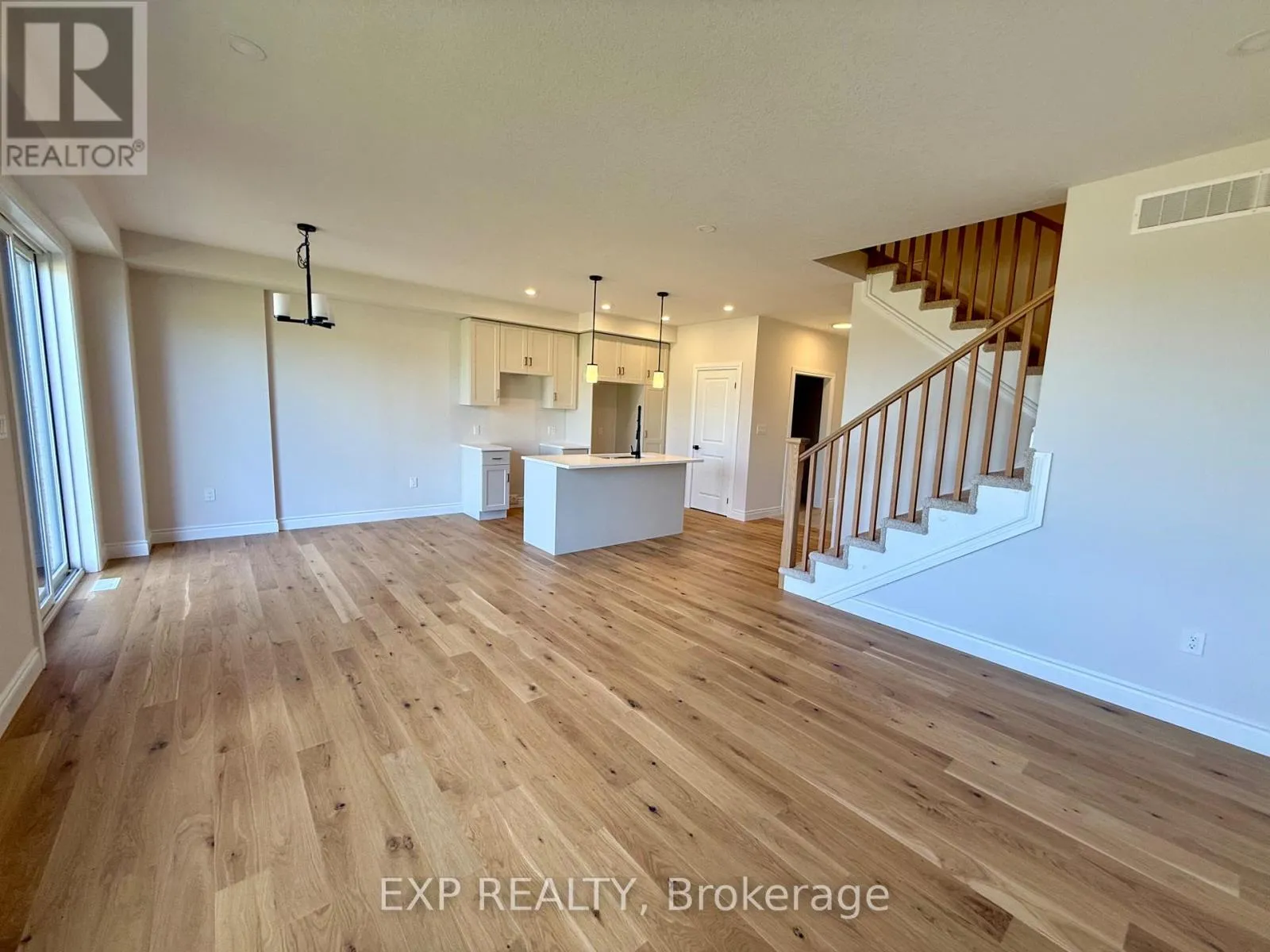 from Elora St S, turn onto Anne St W Step into easy living with this beautifully designed 1,799 sq ft interior unit, where modern farmhouse charm meets clean, contemporary finishes in true fashion. From the moment you arrive, the light exterior palette, welcoming front porch, and classic curb appeal set the tone for whats inside.The main level features 9' ceilings and a bright, functional layout starting with a generous foyer, powder room, and a flexible front room ideal for a home office, reading nook, or play space. The open concept kitchen, dining, and living area is filled with natural light and made for both everyday living and weekend entertaining. The kitchen is anchored by a quartz island with a breakfast bar overhang, perfect for quick bites and extra seating. Upstairs, the spacious primary suite includes a walk-in closet and sleek 3pc ensuite with beautiful time work and glass doors. Two additional bedrooms, a full family bath, and convenient second level laundry round out this floor with thoughtful design. The attached garage offers indoor access and extra storage, while the full basement is roughed in for a future 2-pc bath just waiting for your personal touch. Whether you're a first-time buyer, young family, or down sizer looking for low maintenance living without compromise, this home checks all the boxes. Come Home To Calm in Harriston. (id:27476)
