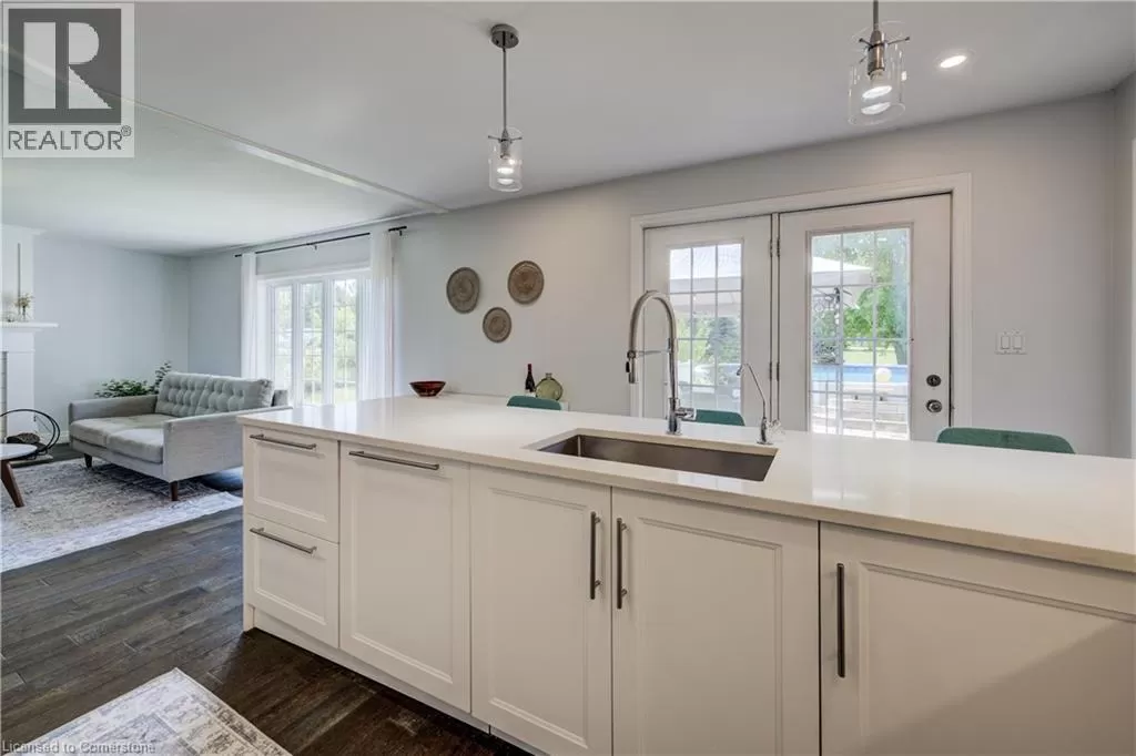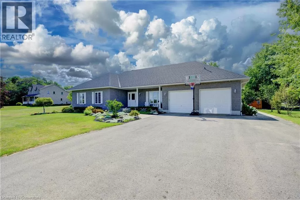 From Mount Forest go West on Hwy #89 to Minto Pines Road on left, follow past James to 2nd on left. Welcome to this stunning all-stone bungalow, beautifully situated in an executive estate subdivision just minutes from Pike Lake Golf Course. Boasting 2,959 sq ft of total finished living space, this home offers scenic views with no front neighbours and a peaceful backdrop of nature. Inside, youâll find an elegant custom kitchen (2021) featuring quartz countertops and stylish finishesâperfect for everyday living and entertaining. The main level showcases hand-brushed solid white oak hardwood floors (2020), while the fully finished lower level offers luxury vinyl laminate (2020), creating warmth and durability throughout. Both bathrooms were tastefully renovated in 2020, and the basement was thoughtfully finished the same year, offering additional living space for family, guests, or entertaining. A new shingled roof (2021) adds to the home's peace of mind and long-term value. Outside, the professionally landscaped yard includes fruit trees, a 28' round above-ground pool with a brand-new liner (2024), and a natural gas BBQ hookupâideal for summer gatherings and backyard enjoyment. With no front neighbours, youâll love the added privacy and serene setting. The municipality would support the addition of an accessory dwelling unit (ADU) on the property, pending appropriate permitsâan ideal opportunity for extended family living, rental income, or a private home office or studio. Just minutes away, Pike Lake Golf Centre offers 27 holes of beautifully maintained golf across two scenic courses, a full-service clubhouse, pro shop, motel accommodations, and recreational amenities including camping, a private lake, and an adult lifestyle communityâadding to the appeal of this location for both golfers and outdoor enthusiasts alike. This exceptional home offers the perfect blend of quality craftsmanship, modern updates, and outdoor lifestyleâjust a short drive to Pike Lake, shopping, and everyday conveniences. (id:27476)