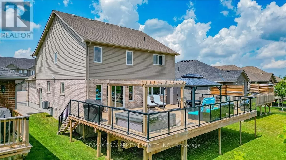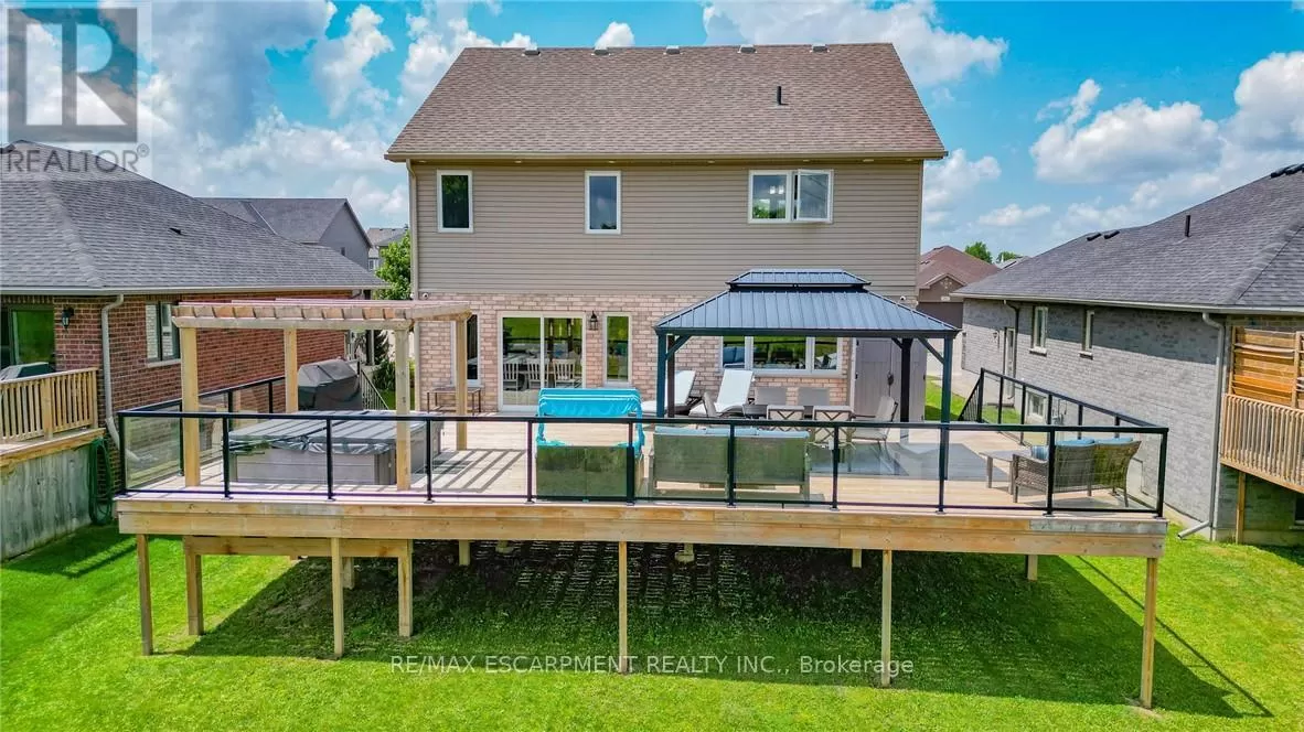 Cross Streets: Main Street. ** Directions: Take Highway 6 North to Wellington Rd (Highway 5) to Main St, to Bridge Cres. WELCOME TO 122 Bridge Crescent located in a family friendly neighbourhood in Palmerston. Just about 50 minutes from Kitchener, Waterloo and Guelph. This stunning and spacious 2 storey detached home is sure to impress. Lots of natural lights, high ceiling, spacious rooms and high end finishes. The main floor open concept design is suited for entertaining guests, kitchen and dining overlooks an spacious deck, covered gazebo and a hot tub. The fully finished basement is complete with 3-pc bath, a family room, and a sauna. (id:27476)