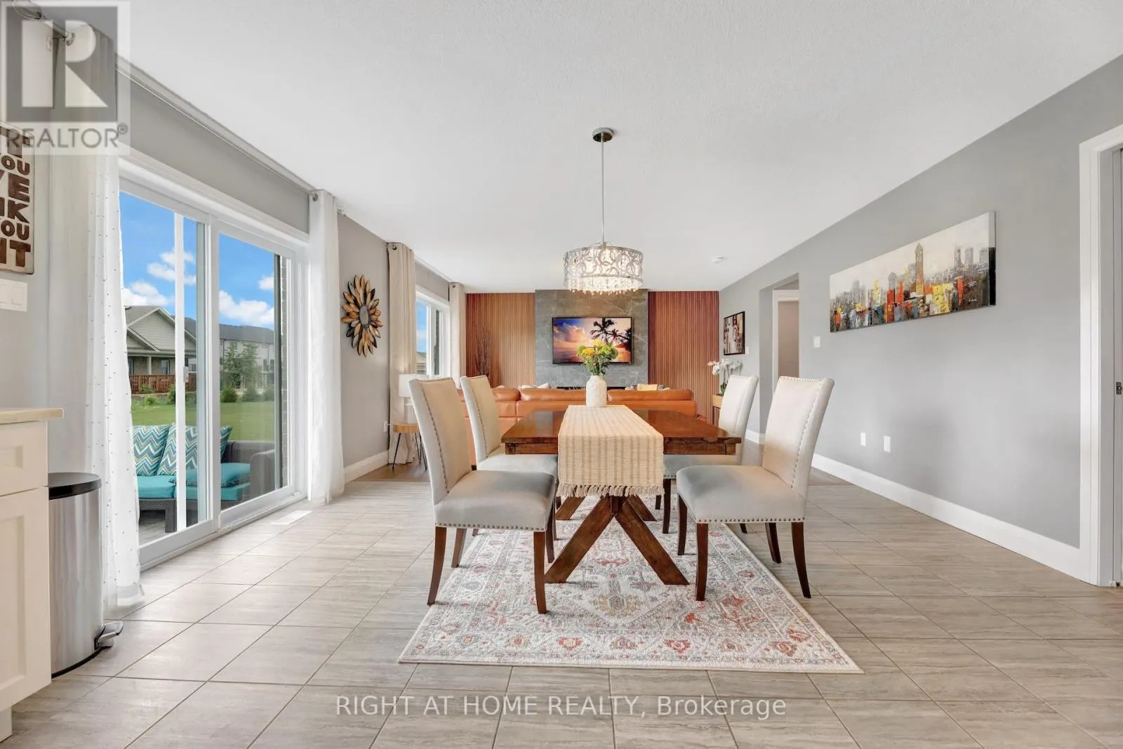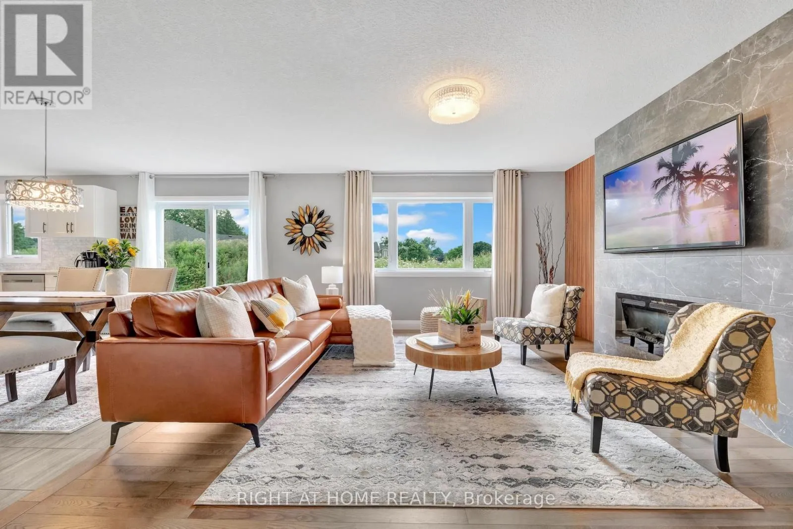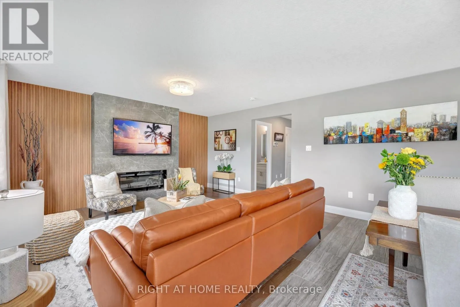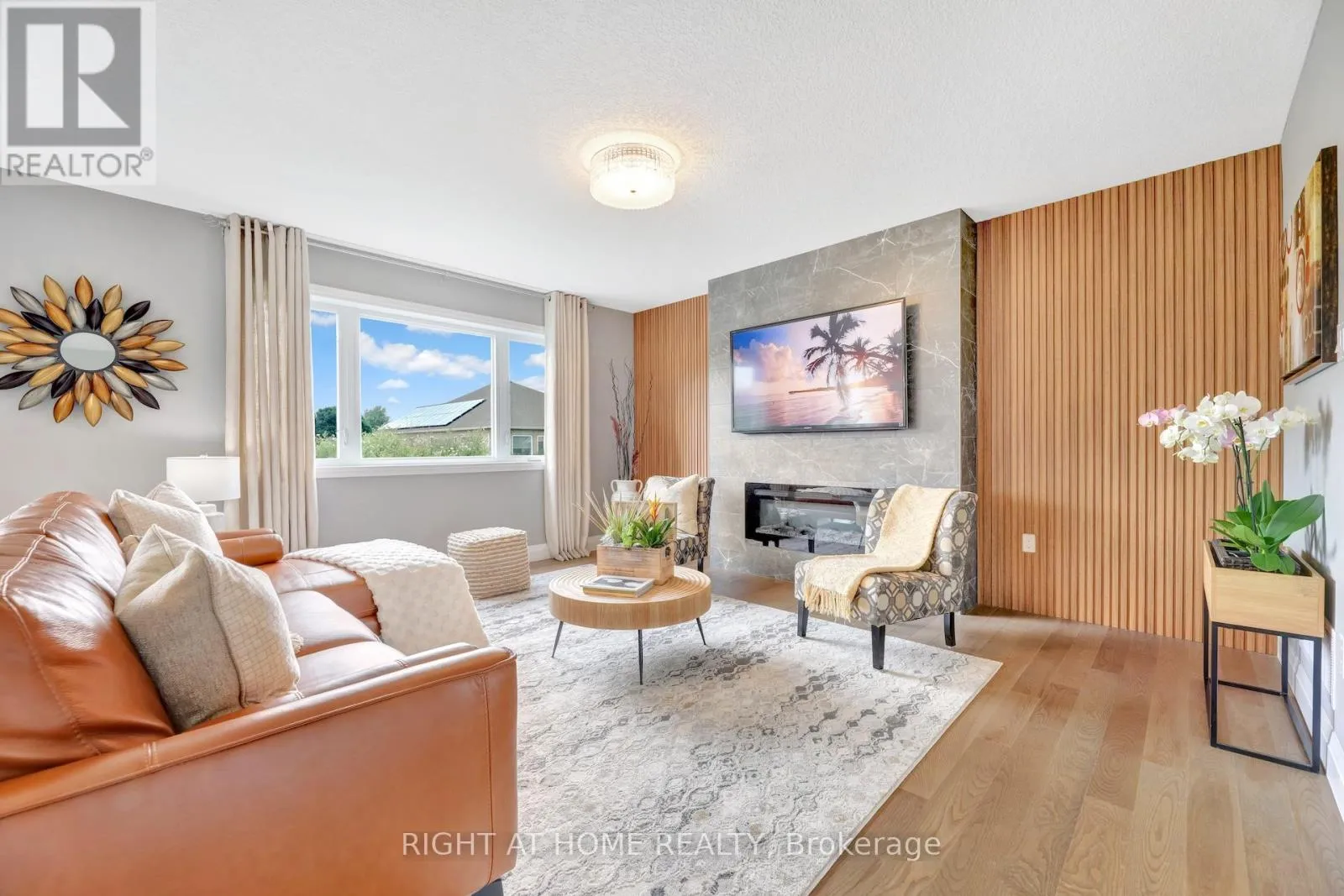 Main St. E to Stephenson Way Nestled on a quiet street in the sought-after community of Palmerston, 135 Stephenson Way welcomes you with over 2,800 square feet of thoughtfully designed living space. This home masterfully blends modern elegance with family-friendly functionality. Step inside and be greeted by the stunning floor-to-ceiling foyer, solid oak stairs leading to the upper floor, and a striking floor-to-ceiling electric fireplace with featured wood wall panels, upgraded lightings adding cozy ambiance to the space. The open-concept design seamlessly connects the kitchen, living, and dining areas, creating an inviting atmosphere for family gatherings while overlooking the expansive backyard through large windows. Bathed in natural light, the kitchen features stainless steel appliances, including a gas stove with a range hood, cabinetry with deep drawers for pot storage, and quartz countertops with a beautiful subway tile backsplash. Adjacent to the kitchen is the laundry room and walk-in pantry, adding to the home's functionality. Sliding glass doors open to an interlock patio, perfect for relaxing or watching the afternoon sunsets. The upper level offers 4 bedrooms and 2 bathrooms, where the blue sky serves as the backdrop to every room. The primary bedroom features a spacious walk-in closet and a luxurious 4-piece ensuite with a glass shower and soaker tub. The vaulted ceiling allows the morning warmth from the sun to fill the room. Descend to the lower level through the solid wood stairs, where another bedroom, a 3-piece bathroom, and a spacious rec room await. The lower level boasts laminate flooring, pot lights, upgraded large windows, and a great wet bar, making it suitable for an in-law suite. Walking distance to trails, schools, a hospital, a retirement facility, and a park. About 45-minute drive to Elora, Kitchener-Waterloo, Guelph, and an hour to Brampton. (id:27476)