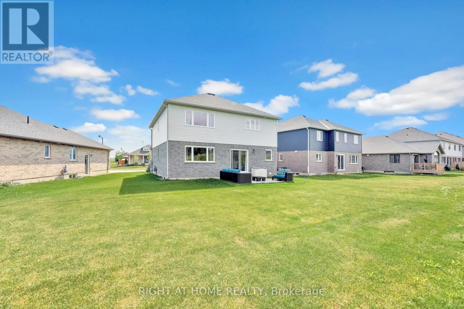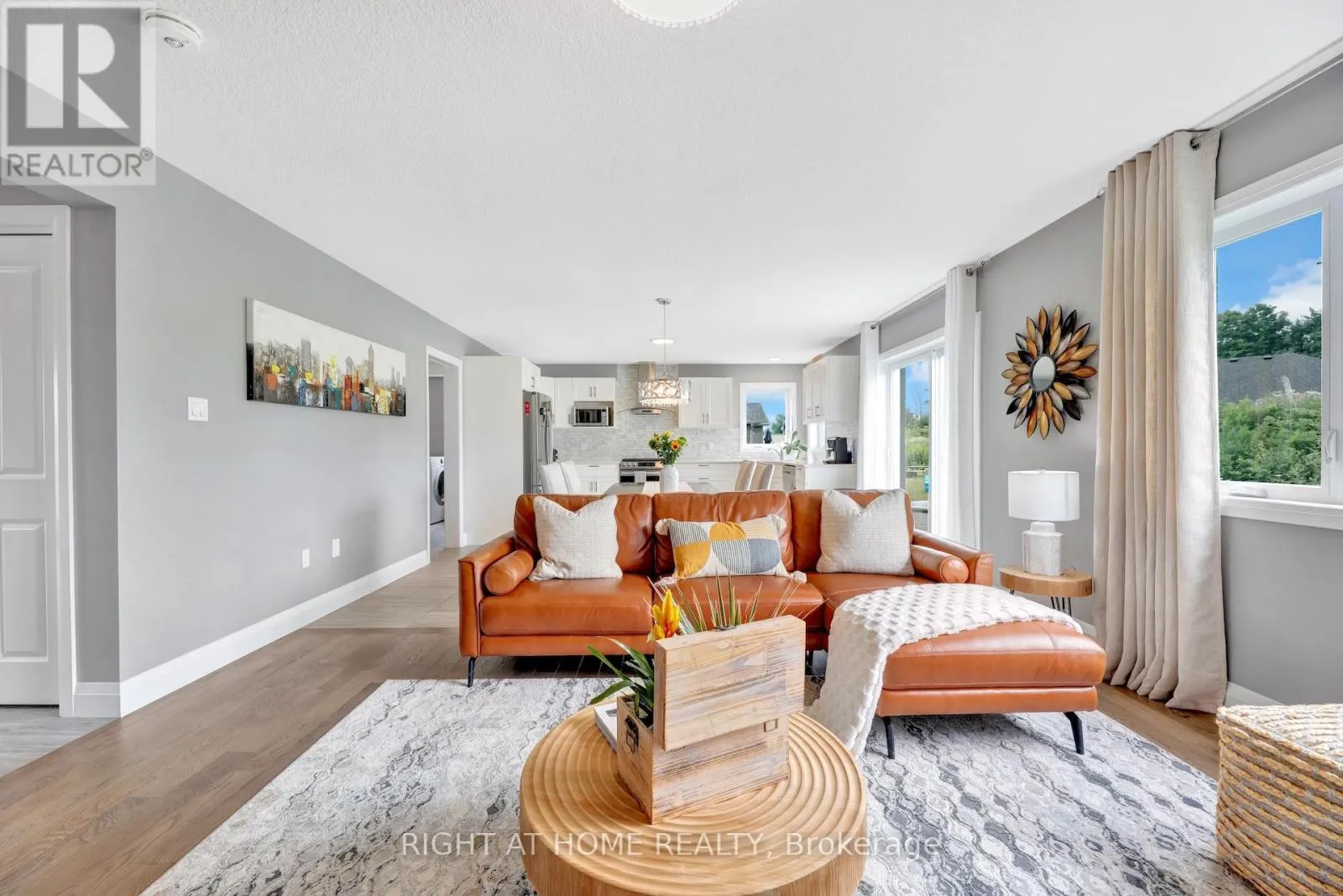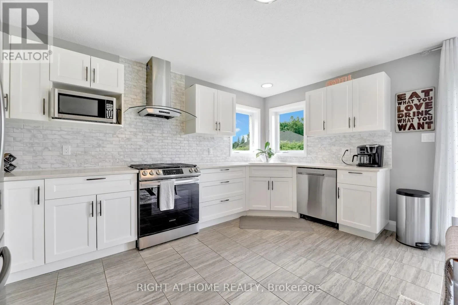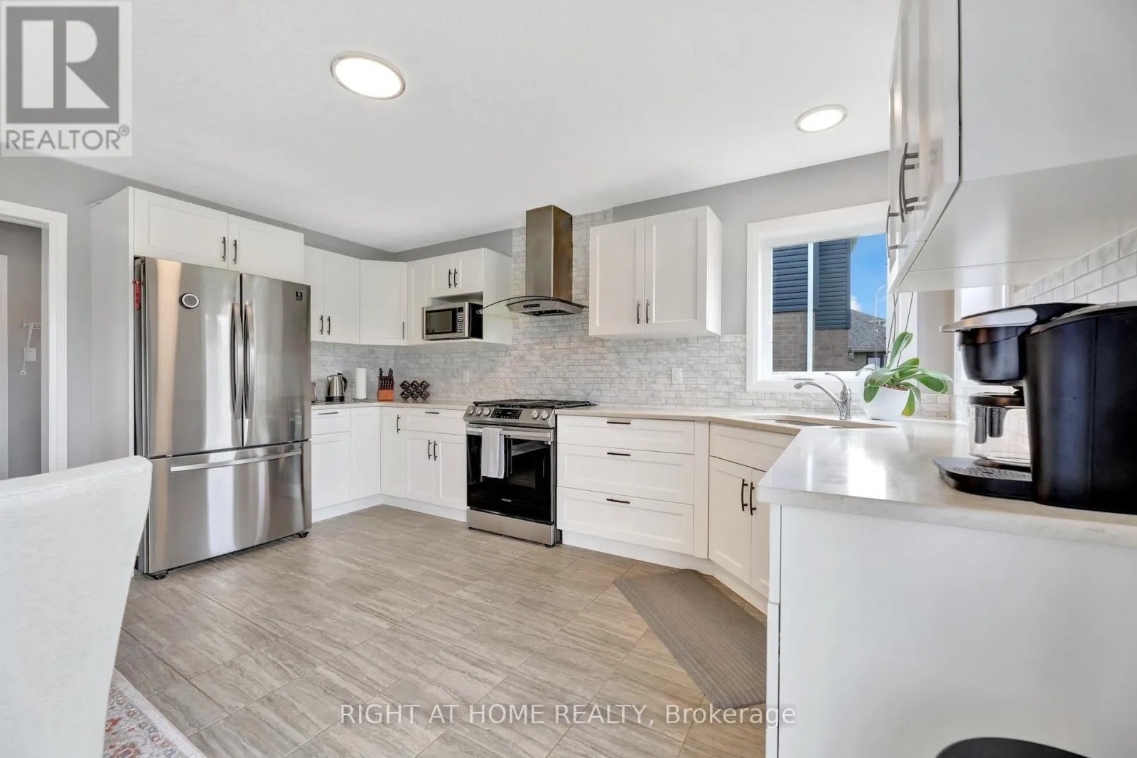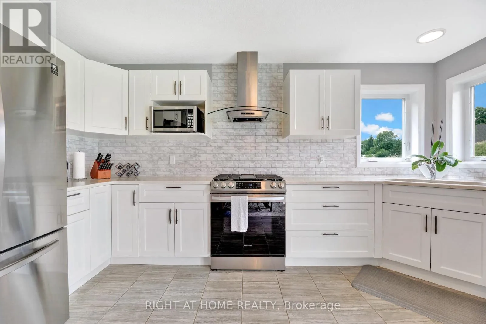 Main St. E to Stephenson Way Nestled on a quiet street in the sought-after community of Palmerston, 135 Stephenson Way welcomes you with over 2,800 square feet of thoughtfully designed living space. This home masterfully blends modern elegance with family-friendly functionality. Step inside and be greeted by the stunning floor-to-ceiling foyer, solid oak stairs leading to the upper floor, and a striking floor-to-ceiling electric fireplace with featured wood wall panels, upgraded lightings adding cozy ambiance to the space. The open-concept design seamlessly connects the kitchen, living, and dining areas, creating an inviting atmosphere for family gatherings while overlooking the expansive backyard through large windows. Bathed in natural light, the kitchen features stainless steel appliances, including a gas stove with a range hood, cabinetry with deep drawers for pot storage, and quartz countertops with a beautiful subway tile backsplash. Adjacent to the kitchen is the laundry room and walk-in pantry, adding to the home's functionality. Sliding glass doors open to an interlock patio, perfect for relaxing or watching the afternoon sunsets. The upper level offers 4 bedrooms and 2 bathrooms, where the blue sky serves as the backdrop to every room. The primary bedroom features a spacious walk-in closet and a luxurious 4-piece ensuite with a glass shower and soaker tub. The vaulted ceiling allows the morning warmth from the sun to fill the room. Descend to the lower level through the solid wood stairs, where another bedroom, a 3-piece bathroom, and a spacious rec room await. The lower level boasts laminate flooring, pot lights, upgraded large windows, and a great wet bar, making it suitable for an in-law suite. Walking distance to trails, schools, a hospital, a retirement facility, and a park. About 45-minute drive to Elora, Kitchener-Waterloo, Guelph, and an hour to Brampton. (id:27476)