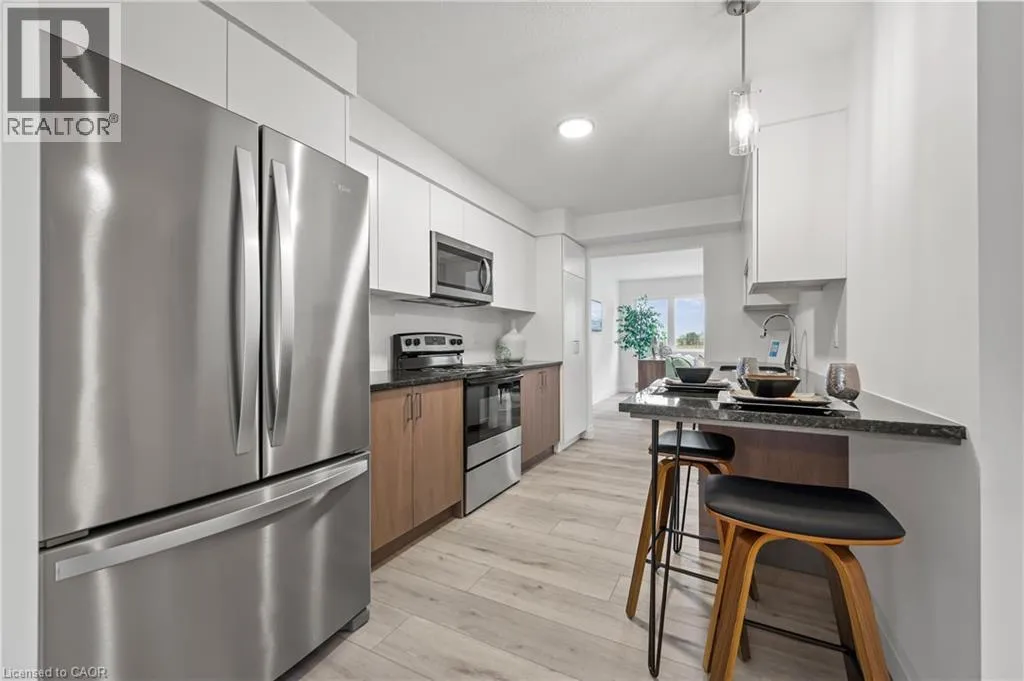 Main St E Elegant 3+1 bdrm end-unit townhome in heart of Palmerston designed for multi-generational living & families seeking comfort & versatility. W/legal 1-bdrm W/O bsmt apt this home offers 2 beautiful independent living spaces perfect for extended family, live-in support, older kids or guests. Built by trusted local builder WrightHaven Homes this property is tucked into a quiet upscale neighbourhood surrounded by other highquality homes. As an end-unit it benefits from added privacy, no neighbours to the left & extra windows. Backing onto green space the home offers uninterrupted views & direct access to trails. Main home welcomes you W/open-concept layout, wide plank vinyl floors & soft neutral tones. Kitchen W/granite counters, S/S appliances & soft-close cabinetry. Breakfast bar provides spot for casual meals while dedicated dining area W/sliding doors to private balcony sets the scene for family dinners. At the rear the living room opens onto 2nd balcony. Upstairs 3 bdrms offer room for growing families. Primary bdrm with W/I closet & ensuite W/glass shower. 2nd full bath & laundry complete this level. Lower-level apt offers private entrance, kitchen W/granite counters, S/S appliances, 3pc bath, laundry & living area that walks out to covered patio-ideal for family, guests or rent it out to offset your mortgage! Set in one of Palmerstonâs desirable communities youâre part of a close-knit neighbourhood where life feels a little slower in the best way. Kids play freely, neighbours know your name & everything from schools, shops, parks to the historic Norgan Theatre is just around the corner. W/major employers like TG Minto & Palmerston Hospital nearby & access to Listowel, Fergus, Guelph & KW the location offers peace of mind & long-term stability for families planting roots. With energy-efficient features, private garage, sep mechanical system & low maint fees that cover lawn care & snow removal this is more than just a home, it's the foundation for your next chapter (id:27476)