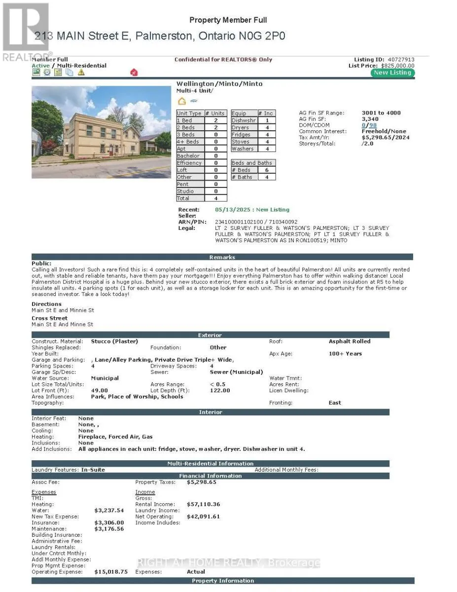 Main St E And Minne St Calling all Investors! Such a rare find this is: 4 completely self-contained units in the heart of beautiful Palmerston! All units are currently rented out, with stable and reliable tenants, have them pay your mortgage!!! Enjoy everything Palmerston has to offer within walking distance! Local Palmerston District Hospital is a huge plus. Behind your new stucco exterior, there exists a full brick exterior and foam insulation at R5 to help insulate all units. 4 parking spots (1 for each unit), as well as a storage locker for each unit. This is an amazing opportunity for the first-time or seasoned investor. Take a look today! (id:27476)