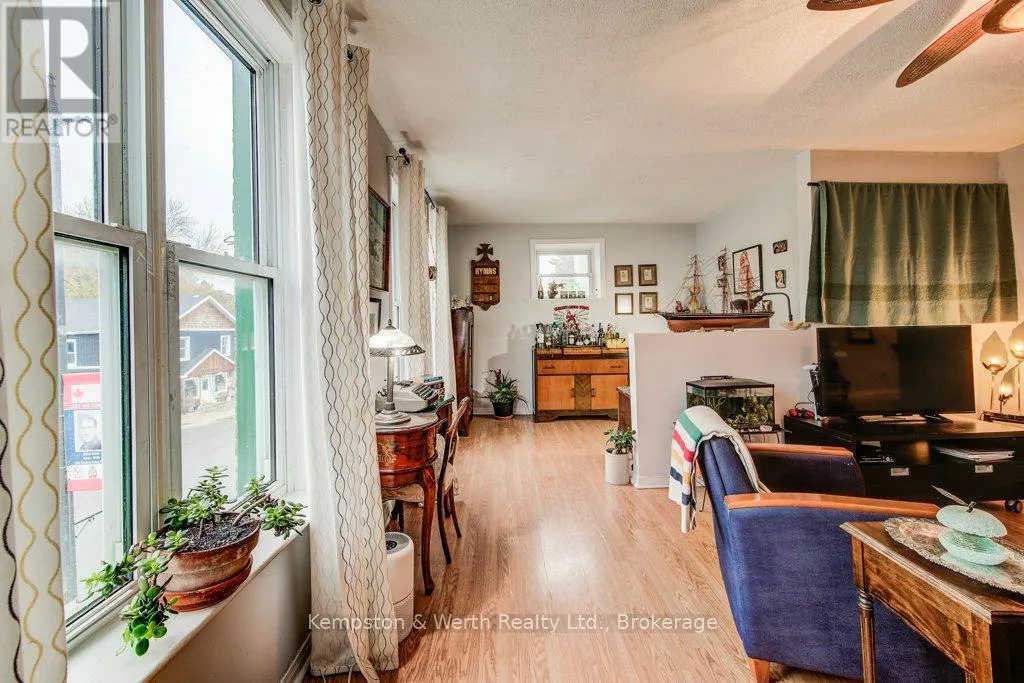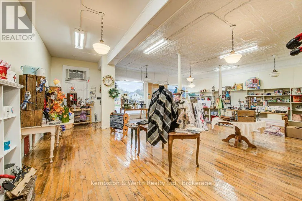 Cross Streets: Geddes/Elora. ** Directions: Corner of Elora St and Geddes St. INVESTMENT OR BUSINESS OPPORTUNITY! Downtown, high visibility, high traffic, commercial / residential property on Main St Clifford. Nearly 1900 square feet of ground level retail/office/services space and a large 3+ bedroom apartment above. Live on site and run your business below, rent either space to supplement the other, or rent the whole property for some great rental income and cashflow. Bakery, butcher shop, insurance, law, hair salon, fast food, etc. etc. The options are plentiful. Property fronts onto busy Highway 9 with regular traffic flow to and from Lake Huron beaches, cottages, the expanding Bruce Power, and more. KNOCK, KNOCK! (id:27476)