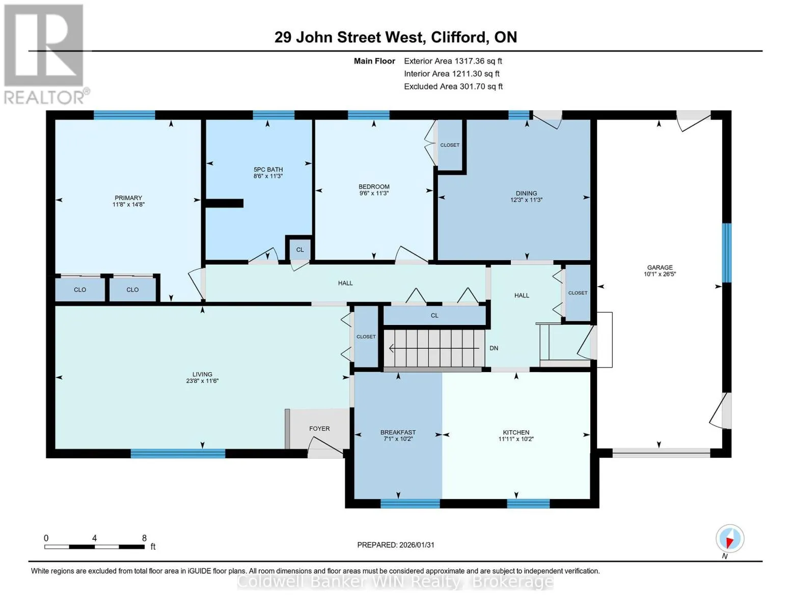 Cross Streets: Minto/John. ** Directions: From Highway 9 (Main St) take Park st to Minto St, turn right, then right onto John St W. Welcome to 29 John St W in Clifford, a solid brick bungalow tucked away on a quiet dead-end street where life moves a little slower. This is a home designed for both everyday comfort and easy entertaining. The kitchen is a natural gathering place, set up for the home chef with a gas stove, dishwasher, and space to enjoy casual meals. When hosting, the formal dining room offers a seamless flow outdoors with a walk-out to the back deck-perfect for summer BBQs and relaxed evenings with family and friends. Sunlight fills the living room, highlighting hardwood floors that carry through the main level and into the primary bedroom. Spacious and inviting, the primary bedroom easily fits a king-sized bed and offers plenty of storage with double closets. The main bathroom feels like a private retreat, featuring a large walk-in shower, jetted soaker tub, double sinks, and quality finishes that invite you to unwind at the end of the day. The finished basement expands your living space, creating the ideal spot for movie nights, game days, or hosting guests, complete with a rec room and dry bar. A nearby multi-purpose room, currently set up as an office, and 3-piece bathroom make the lower level well-suited for teenagers, visitors, or extended family. A dedicated laundry room, workshop, and generous storage space add to the home's everyday functionality. Step outside and enjoy a backyard made for memory-making. With mature trees providing privacy and plenty of open space, there's room for kids to play, pets to roam, gardens to grow, or future plans to take shape. The large deck with pergola is the perfect place to relax, entertain, or simply enjoy the peaceful setting this dead-end street has to offer. (id:27476)