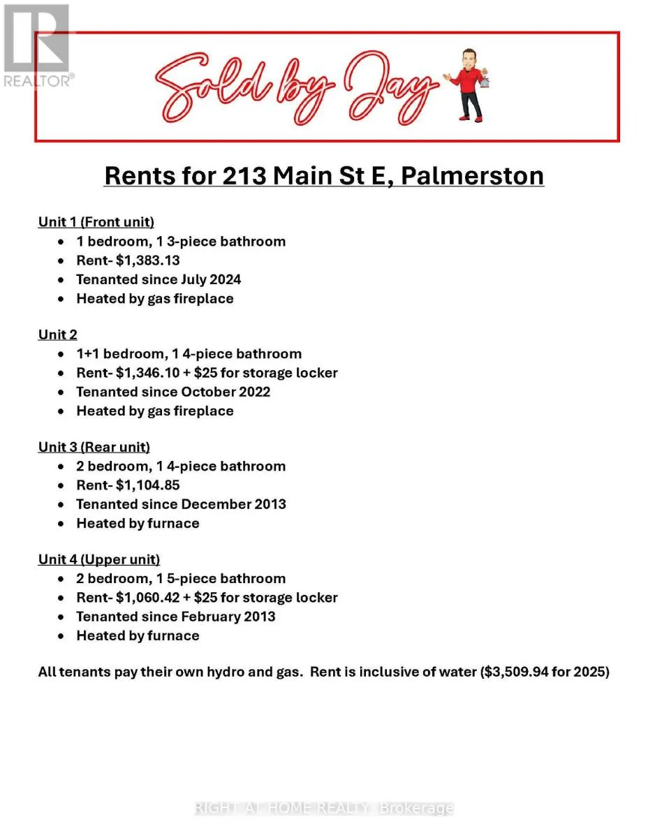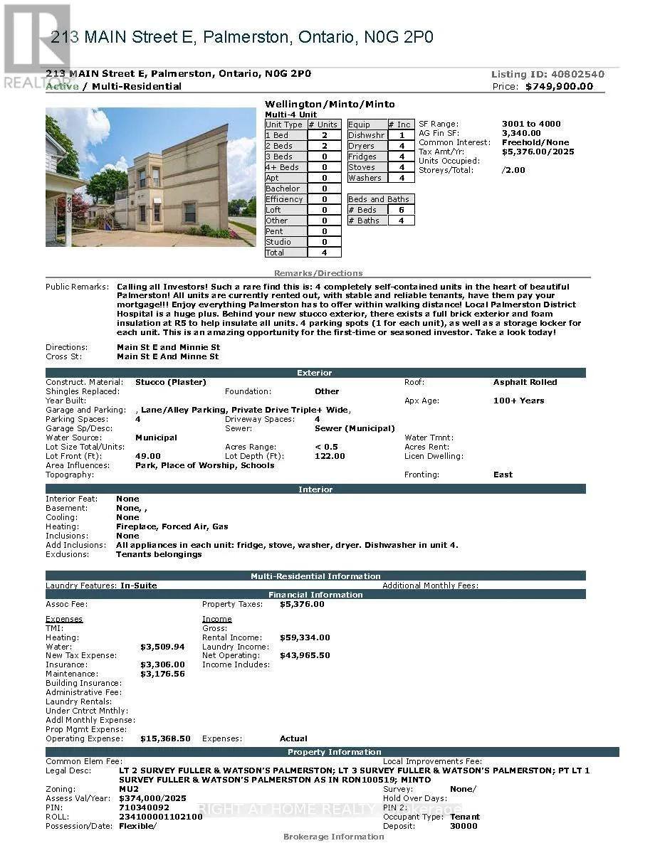 Cross Streets: Main St E And Minne St. ** Directions: Main St E and Norman St. Calling all Investors! Such a rare find this is: 4 completely self-contained units in the heart of beautiful Palmerston! All units are currently rented out, with stable and reliable tenants, have them pay your mortgage!!! Enjoy everything Palmerston has to offer within walking distance! Local Palmerston District Hospital is a huge plus. Behind your new stucco exterior, there exists a full brick exterior and foam insulation at R5 to help insulate all units. 4 parking spots (1 for each unit), as well as a storage locker for each unit. This is an amazing opportunity for the first-time or seasoned investor. Take a look today! (id:27476)