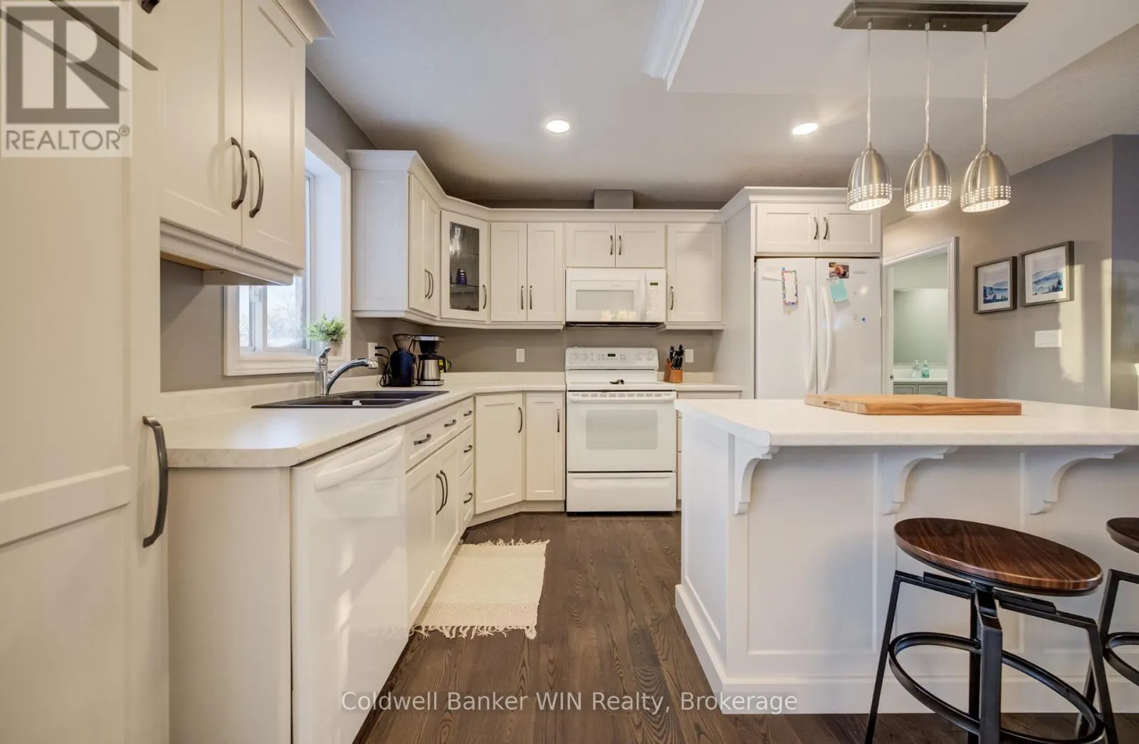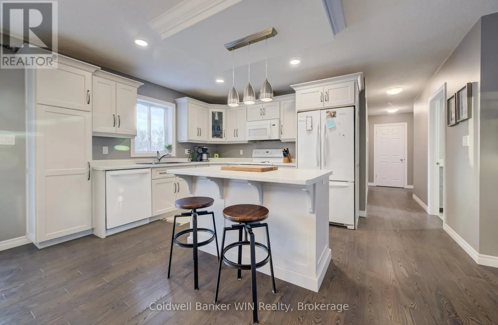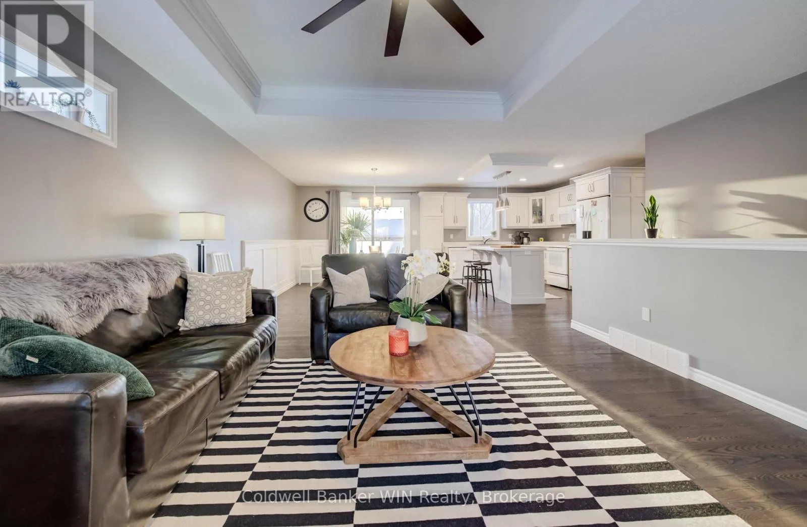 Cross Streets: William and Margaret. ** Directions: From Elora St North, turn west onto William St W. Property is the last house on the left. Built in 2021, this thoughtfully designed 1,360 sq. ft. bungalow is ideally located in the welcoming town of Harriston and offers exceptional versatility for today's modern household. The main floor showcases a bright open-concept layout, highlighted by a tray-ceiling living room and a custom-designed kitchen that blends style with functionality. The dining area features sliding glass doors leading to a rear deck complete with glass railings and a pergola, perfect for entertaining or relaxing outdoors. Convenience is key with main-floor laundry and a mudroom entry connecting directly to the attached garage. The finished basement adds even more living space with a generous recreation room and a fourth bedroom. But wait-there's more. This home also features a fully equipped in-law suite in the basement, complete with one bedroom, a family room, an eat-in kitchen, a 3-piece bath, separate laundry, and a private entrance accessed from the garage via a walk-down staircase. Ideal for multi-generational living or added flexibility, this home truly delivers space, comfort, and smart design in one impressive package. Located on a corner lot near the entrance to Harriston Greenway Trail, this lot will allow a shop to be built easily with a second driveway without compromising yard space. This complete package awaits you to call it home. (id:27476)