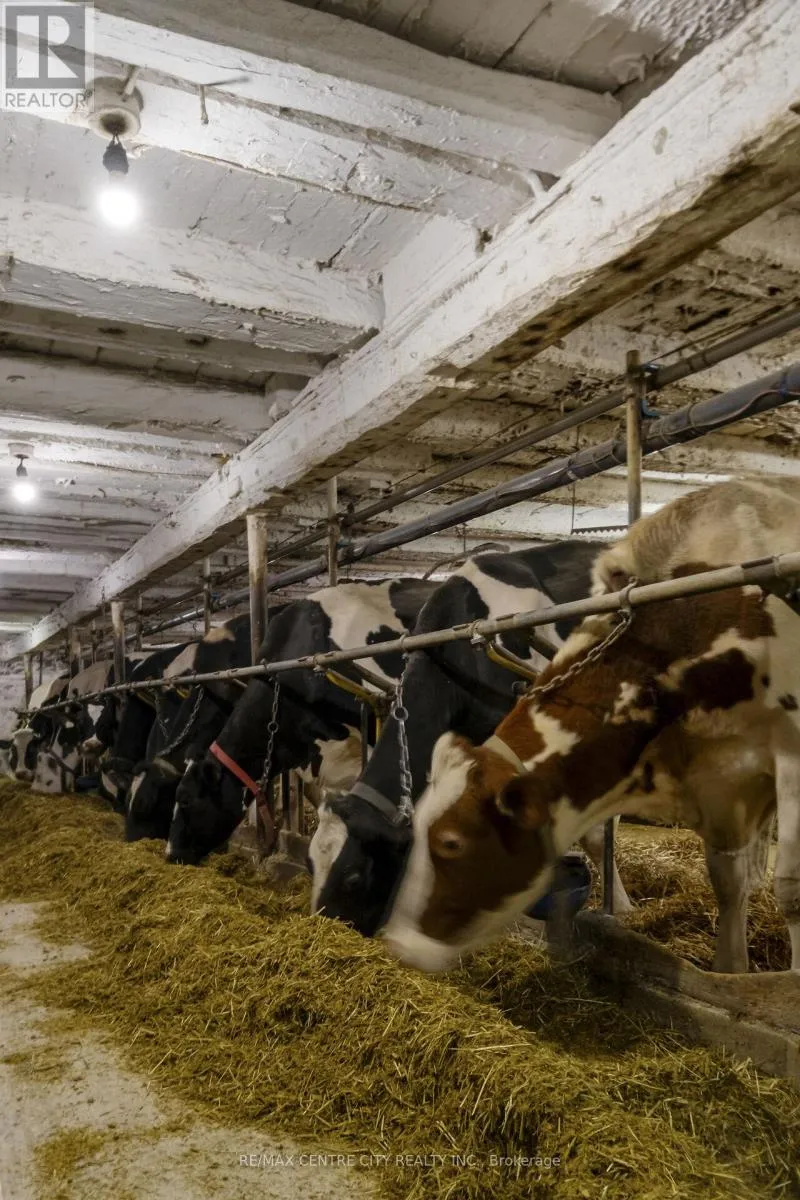 Cross Streets: 13th Line and Balsam Line. ** Directions: From Harriston on Hwy 9, head North 5KM to 13th Line. Turn Left then Right (West) and the 3rd set of buildings is on the Left side. Welcome to this turnkey ongoing dairy farm just west of Harriston with 38.18 kg saleable quota and an excellent holstein herd all set on 153 acres with 70 acre workable of Harriston Loam soil. This tie stall facility offers an abundance of feed storage in the new 24X 100 X 10 concrete pit silo, a 16 X 65 ft. tower silo, 90 tonne grain bin and feed bins, mixed in the Penta TMR mixer delivering to the VIC 45 feed cart (2023). 5 Surge milkers on a pipeline draw the milk from the 38 stall barn to the 750 gallon milk cooler. The stable cleaner is only 4 years old with a 45 X 65 covered manure storage addition. The certified cows, young stock, feed and bedding are included with the purchase. Outbuildings include a 48 X 96 X 16 drive shed with 24 X 60 lean-to and a 32 X 48 barn. The 4 bedroom, 2 bath, 2 storey red brick house with a large family room has a newer furnace and a steel roof to offer lots of space for an expanding family. Lots of opportunities are waiting here. (id:27476)