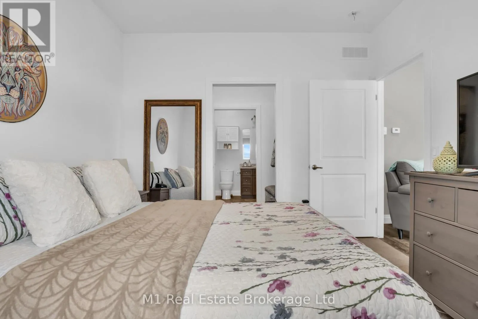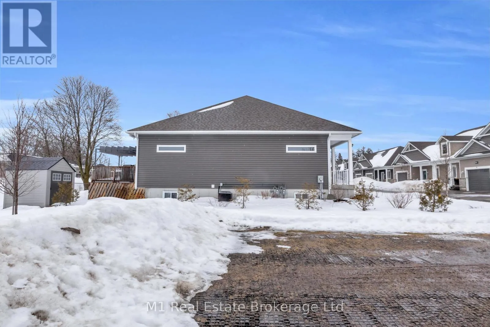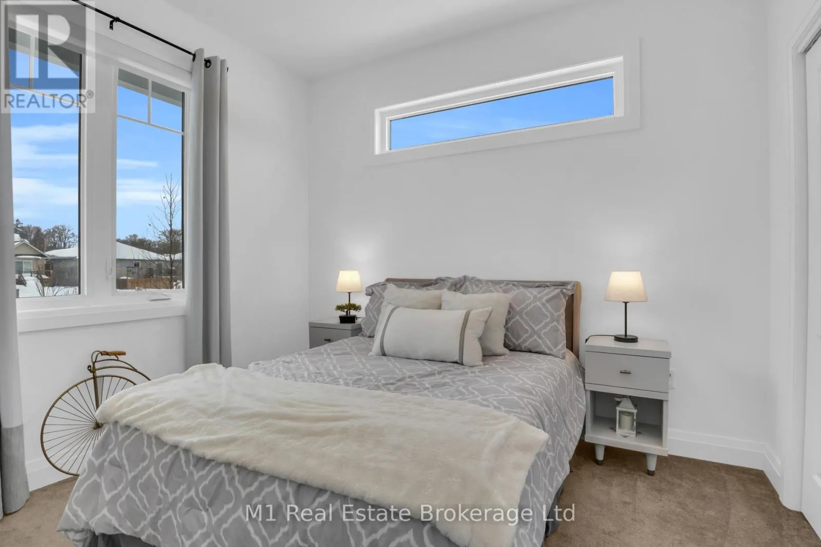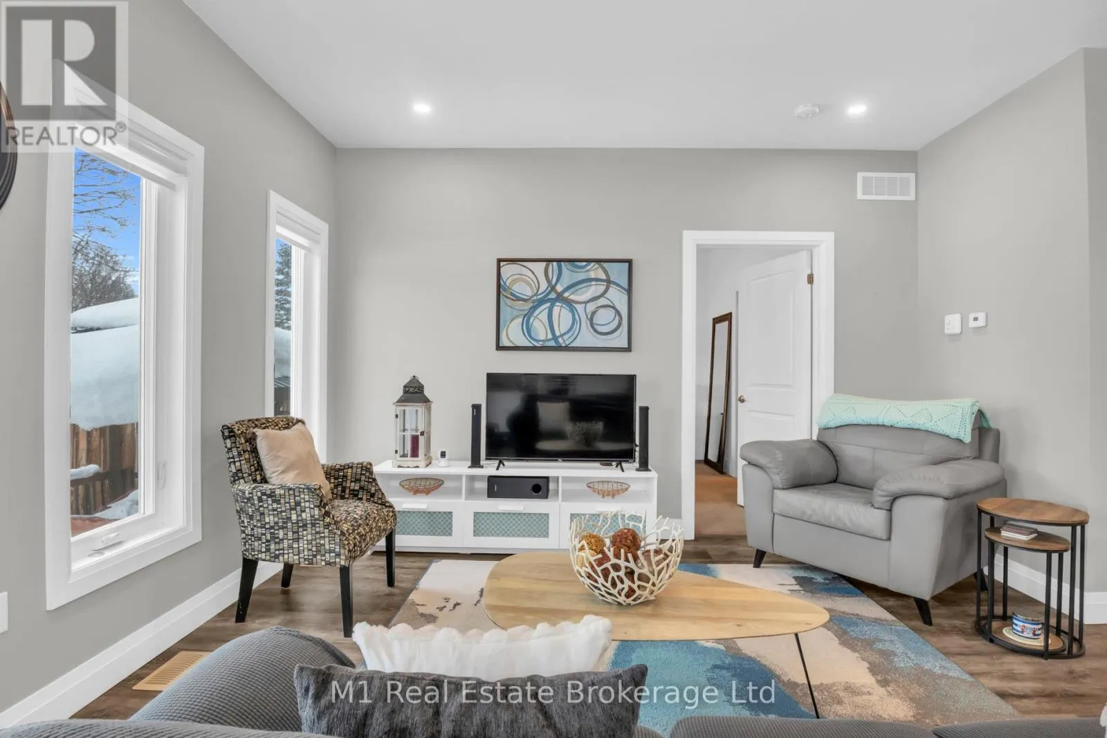 Cross Streets: Arthur St. E. ** Directions: Turn North onto George St. N. from Arthur St. E. Welcome to 24 George Street Unit 23 in Harriston, built in 2021 by Quality Homes and offering over 1,650 sq/ft of finished living space in a rare end-unit position at the very end of a quiet dead-end street with no neighbours on one side and additional yard and garden space to enjoy. This move-in-ready bungalow features quality finishes, luxury vinyl plank flooring, and upgraded lighting throughout the bright open-concept kitchen and living area. The kitchen offers a functional island with breakfast seating, stainless steel appliances, and ample storage, with convenient main floor laundry nearby. The main level includes two bedrooms and a full bathroom, while the professionally finished basement expands the home with a third bedroom, second full bathroom, spacious rec room, bonus office space, and restored vintage doors that add warmth and character to the lower level. Step outside to a large two-tier deck providing excellent outdoor living space and added privacy thanks to the end-unit setting. Located within walking distance to town, shopping, schools, and amenities, and within commuting distance to Guelph and the Tri-Cities, this home offers low-maintenance living with upgraded finishes, flexible space, and a layout that suits a variety of lifestyles. (id:27476)
