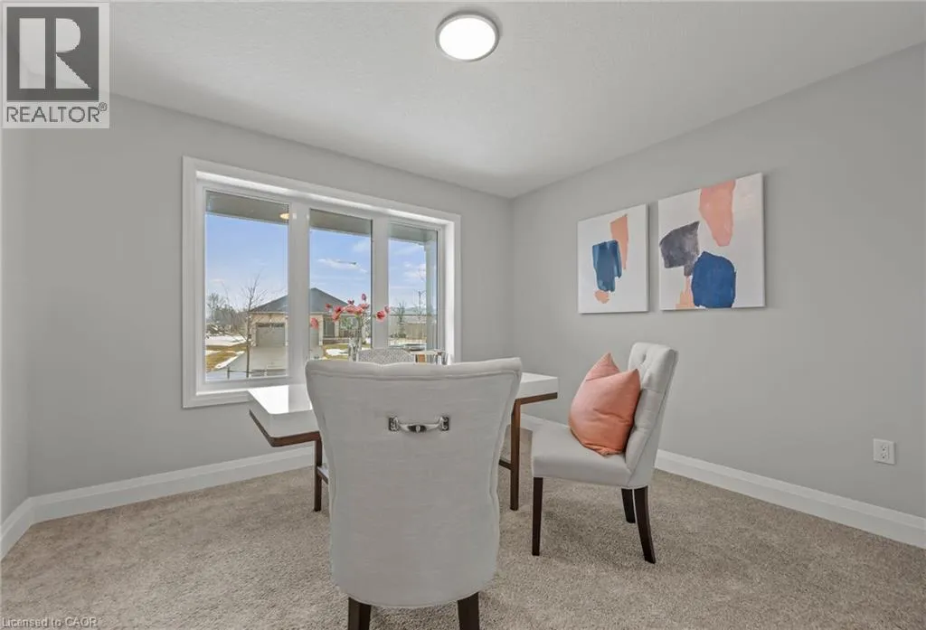Stephenson Way Tucked into Palmerston's Creek Bank Meadows, the Dunedin bungalow blends charm, comfort & thoughtful design, perfect for downsizers or empty nesters seeking an Energy Star Certified home built for modern living. Crafted by WrightHaven Homes this residence offers all the ease of main-floor living without sacrificing space or style. From the welcoming covered front porch to the attractive stone & siding exterior, the Dunedin makes a lasting first impression. Inside a well-planned layout includes 2 bedrooms, 2 bathrooms & open-concept living space filled with natural light. The kitchen features designer cabinetry, premium finishes & spacious island with seating-ideal for casual dining & entertaining and opens seamlessly to the dinette & great room with large windows & optional fireplace. A sliding door extends the living space outdoors to a covered rear patio, perfect for yr-round enjoyment. The private primary suite offers W/I closet & spa-inspired ensuite with dual sinks & tiled glass shower. A second bedroom at the front of the home adds versatility for guests, a home office or den. A second full bath, convenient mudroom with laundry & interior access to the garage complete the main level. The lower level adds flexibility with a roughed-in 3pc bath & plenty of room for future bedrooms, a rec room or hobby space-offering long-term value & adaptability as your needs evolve. Built with high efficiency mechanical systems & airtight, energy-conscious materials, the Dunedin delivers long-term savings, comfort & sustainability. Set within a quiet cul-de-sac, Creek Bank Meadows is a close-knit community with walkable streets & friendly neighbours. Enjoy quick access to Palmerston's parks, shops, splash pad, hospital & the historic Norgan Theatre-all while being just a short drive from Listowel, Fergus, Guelph & Kitchener-Waterloo. Stylish, efficient & low-maintenance, the Dunedin offers luxury living in a neighbourhood where you can truly feel at home. (id:27476)