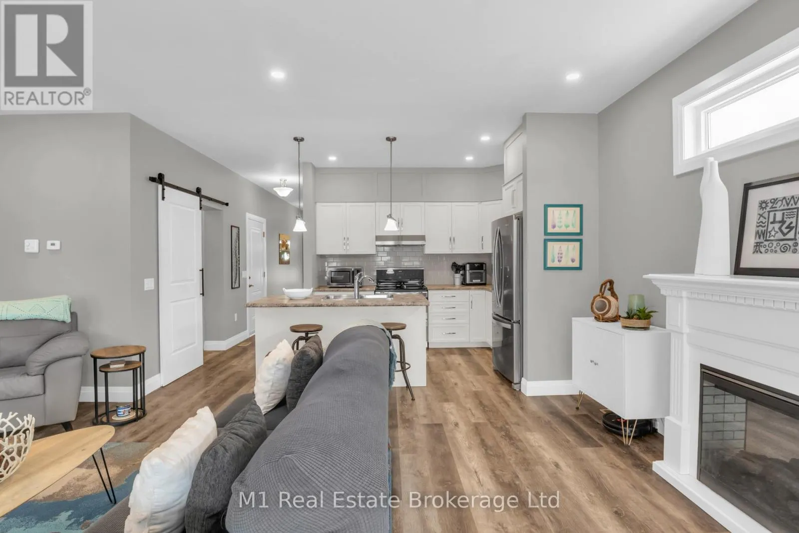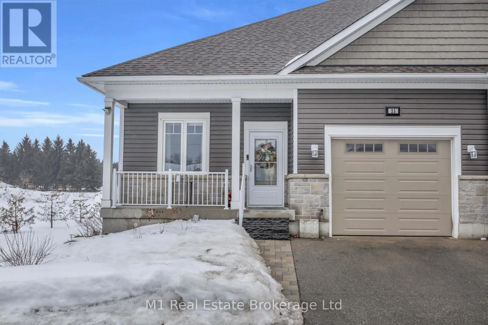 Cross Streets: Arthur St. E. ** Directions: Turn North onto George St. N. from Arthur St. E. Discover this move-in-ready 2021 Quality Homes bungalow at 24 George Street, Unit 23 in Harriston, offering 1,650+ sq/ft of finished living space in a quiet, dead-end location with no neighbours on one side. Enjoy a spacious side yard, garden, and large two-tier deck for ultimate outdoor living and privacy. Inside, the bright open-concept layout features luxury vinyl plank flooring, upgraded lighting, and a modern kitchen with island seating, stainless steel appliances, and ample storage, plus convenient main-floor laundry. The main level offers 2 bedrooms and a full bathroom, while the professionally finished basement adds a third bedroom, second full bathroom, rec room, bonus office, and charming restored vintage doors for extra character. Perfectly located within walking distance to town, schools, shopping, and amenities and just a short commute to Guelph and the Tri-Cities, this rare end-unit bungalow combines flexible living spaces, upgraded finishes, and low-maintenance comfort. Don't miss this opportunity. Schedule your showing today! (id:27476)